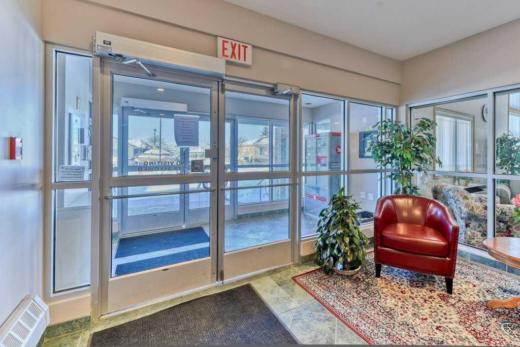 Welcome to this beautifully updated 2-bedroom plus den condo offering style, comfort, and convenience. The open floor plan is perfect for entertaining, featuring a bright living room with a cozy corner gas fireplace and access to the private balcony. The modern white kitchen boasts granite countertops and updated flooring, creating a fresh, contemporary feel throughout. The den with French doors provides the perfect space for a home office or reading nook. The spacious primary bedroom includes a walk-in closet and a 4-piece ensuite. A generous second bedroom, additional bathroom, and large laundry area add practicality and ease. This unit is immaculate and turn Key complete with A/C to add to comfort during the summer months! Enjoy the exceptional amenities this complex offers — including a library, recreation room, lounge, and gazebo — all designed to enhance your lifestyle. Large underground parking stall and a storage unit. Note-Building is 55+ a non smoking and no pet building--