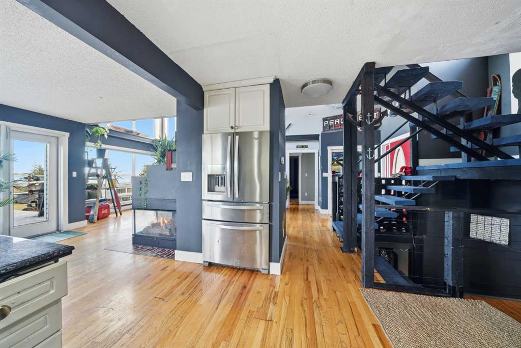 ABSOLUTELY STUNNING LAKE VIEWS!!!! This home blends comfort, elegance, and utility in an incomparable setting. Enter to discover hardwood floors, granite countertops, laundry on the main floor with convenient sink, and unique upgrades. The design is perfect for entertaining and ease of use, with a sunny open-concept living and dining area separated by a lovely three-sided gas fireplace. The kitchen features a gas cook top, granite countertops, pantry, and an entrance to a spacious lake-facing deck with a gas BBQ hook-up—ideal for sitting back or entertaining guests while watching spectacular sunsets over the lake. The main level features two large bedrooms divided by a full four-piece bathroom for family or guest privacy. The stunning master suite upstairs offers a real retreat with vaulted ceilings, skylight, walk-in closet, and lavish ensuite with Jacuzzi tub and glass-block shower. The suite's private gas fireplace and panoramic view of the lake create a cozy and warm ambiance that makes the daily commute home feel like a vacation. The basement is almost complete with a 2 pc bathroom, a 4th bedroom (could easily be 5 or 6 BEDROOMS) and a large entertaining space. Exterior, the home is completely landscaped with mature trees and flower gardens, both enhancing the beauty and privacy. Have your morning coffee on the large deck or relax near the water's edge. The additional-large yard has ample space for outdoor living, and the 22×24 heated double attached garage provides ample storage and workshop possibilities. Located only 600 meters from the marina, this home provides exceptional access to boating, fishing, sledding, and all that Gull Lake has to offer. Whether you’re seeking a year-round residence or a seasonal retreat, this property delivers the best of Alberta lakefront living—where every day comes with an incredible view and the tranquility of lakeside life.