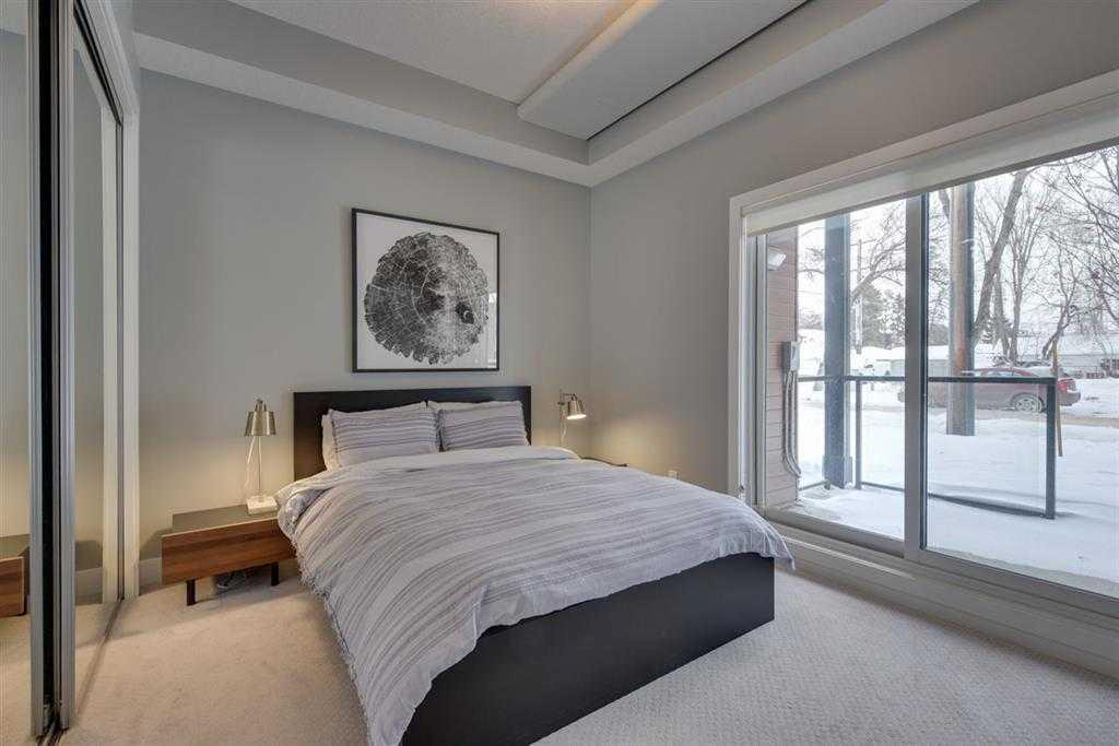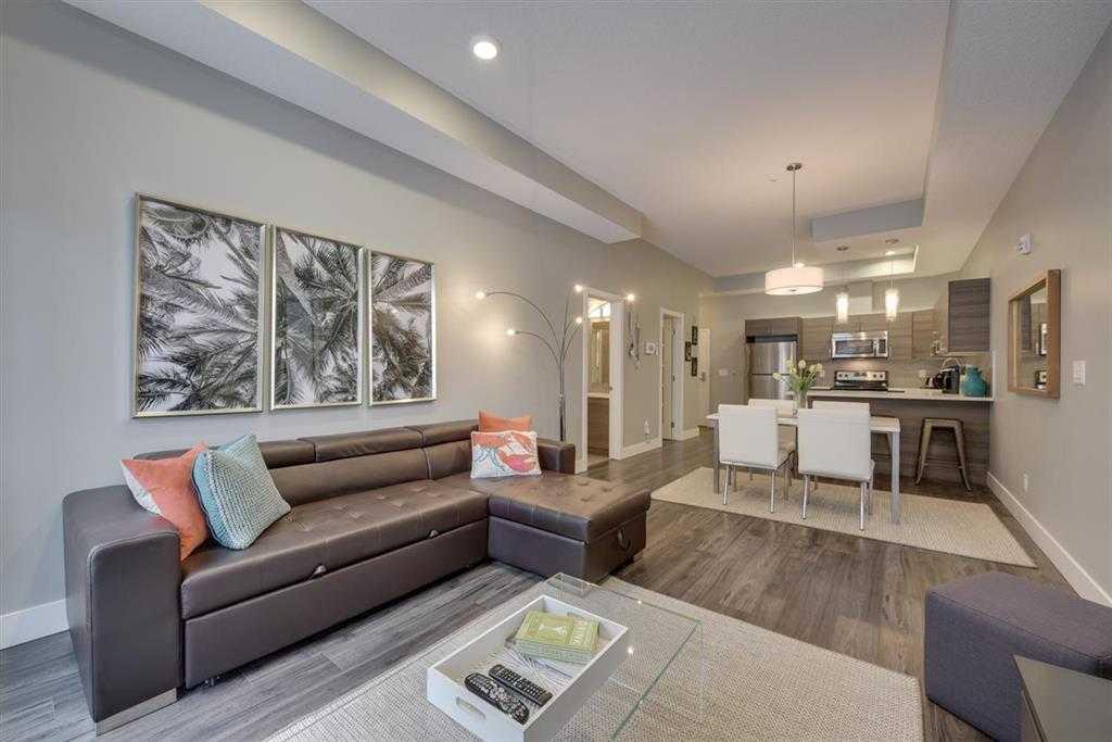 Welcome to The Arbor at 83 Avenue – a stunning, executive 1-bedroom + den condo in brand-new condition, ideally located in the heart of Strathcona, just one block off Whyte Avenue. Enjoy being surrounded by trendy restaurants, coffee shops, unique boutiques, and excellent transit options with quick access to the University of Alberta and downtown Edmonton. This bright and beautifully designed unit features: Open-concept layout with soaring 10-foot ceilings Floor-to-ceiling windows that flood the space with natural light Modern kitchen with quartz countertops, kitchen island with bar seating, and stainless steel appliances Engineered laminate flooring throughout the main living areas Spacious den – perfect for a home office or guest space In-suite laundry for your convenience Private walk-out patio with a natural gas BBQ outlet – ideal for entertaining Titled underground parking stall and titled storage unit included Building amenities include a rooftop terrace with WiFi access, a BBQ outlet, and stunning skyline views – the perfect place to unwind or host guests. This home truly stands out for its pristine condition, high-end finishes, and unbeatable location. A must-see for professionals, students, or anyone looking to enjoy vibrant city living in one of Edmonton’s most desirable neighborhoods.