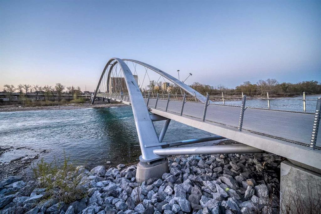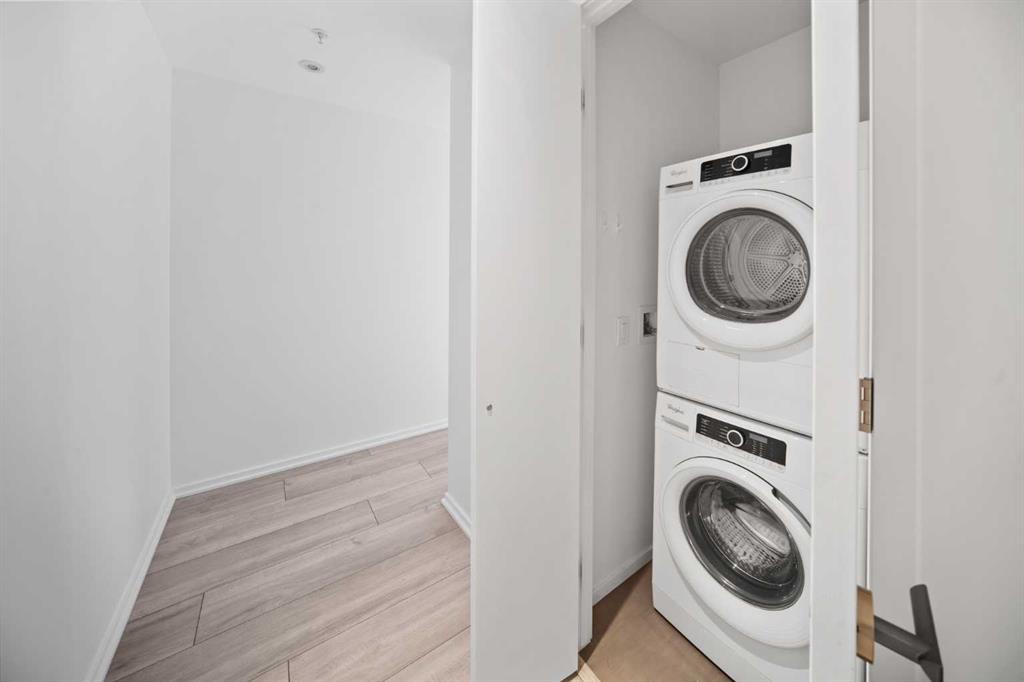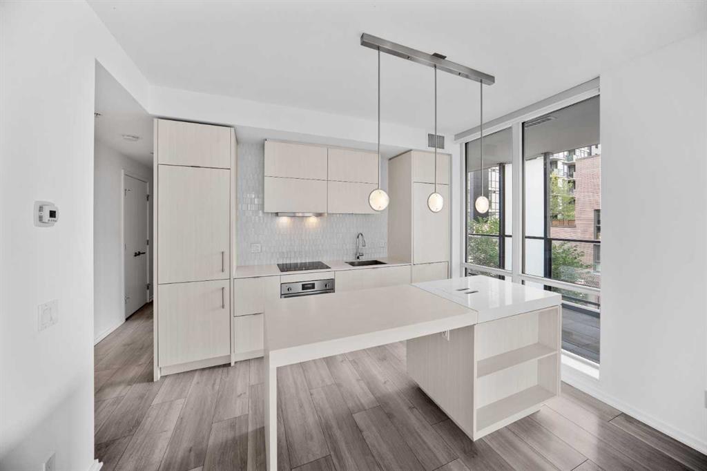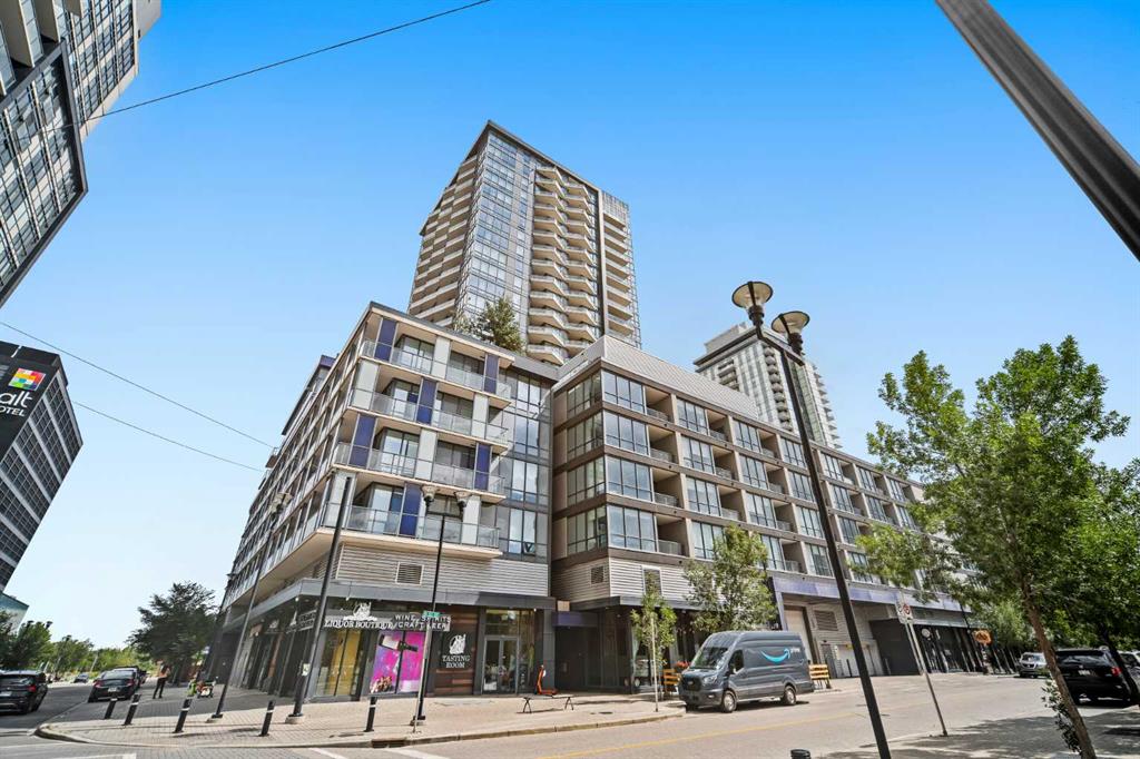 PRICE REDUCED!! STUNNING 2-BEDROOM, 2-BATHROOM LUXURY CORNER UNIT FEATURING A RARE 319 SQ. FT. WRAP-AROUND BALCONY! in Calgary’s vibrant East Village. Floor-to-ceiling windows fill this home with natural light, in this open-concept space that is one the best layouts in this modern full amenity building. Boasting quartz countertops, integrated custom-panel appliances, and in-suite laundry. The spacious living and dining area are perfect for entertaining with direct access to the one of a kind huge balcony fitted with a natural gas link...the perfect mix of indoor/outdoor living. The large windows continue into the primary suit which offers a full ensuite with a glass enclosed walk in shower. The second bedroom is also a good size that is perfect for guests or a home office allowing you to still feel part of the trendy action of the East Village. Another full bathroom, and large entryway complete this home. Enjoy premium building amenities including concierge, security, an owners’ lounge, fitness center, 360° observation decks, and an elegant entertainment room. Steps from dining, shopping, and recreation, this condo includes There is even a titled underground secured parking stall and a storage locker, plus the home has been freshly painted! The perfect blend of luxury, comfort, and convenience all in one of Calgary most desirable communities!