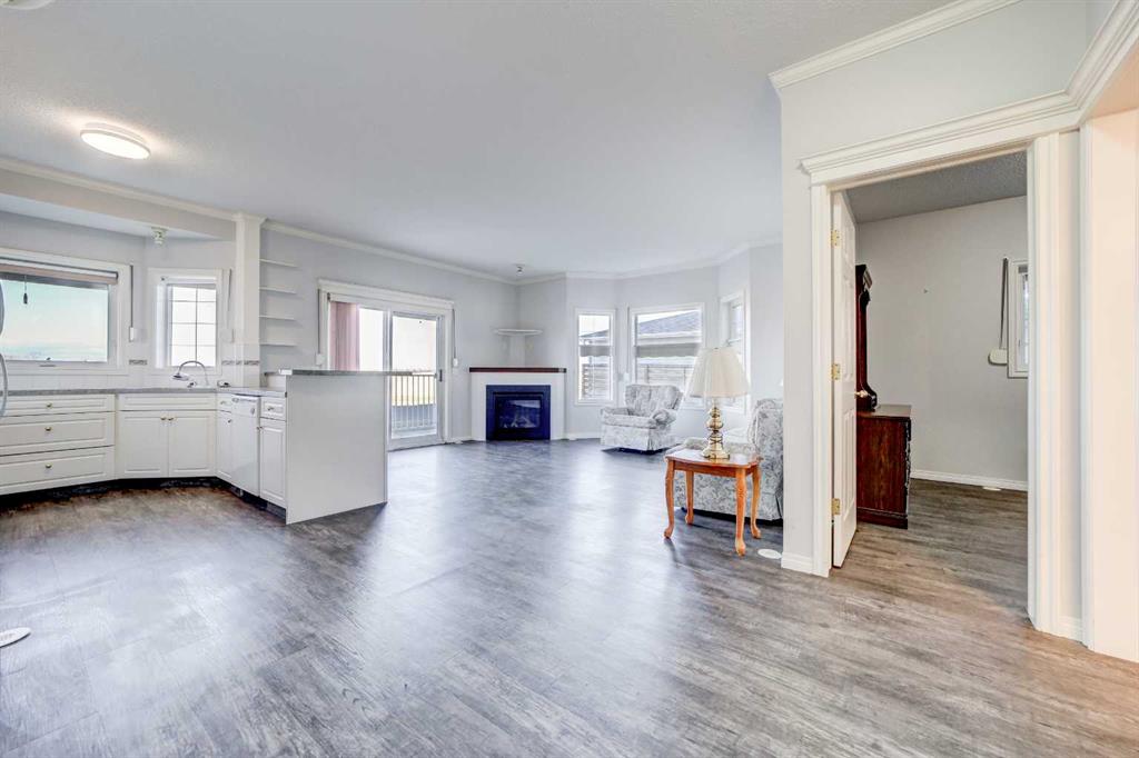 Enjoy breathtaking views of the Porcupine Hills from this well-maintained 55+ ground-floor condo. With no stairs to navigate, this 2-bedroom, 2-bathroom unit offers 970 sq.ft. of comfortable, low-maintenance living. The bright and spacious living room features a cozy gas fireplace, perfect for relaxing on cooler evenings. Step outside to your private balcony—a peaceful spot for morning coffee or watching the sunset. The primary bedroom includes a large closet and a 3-piece ensuite, while the second bedroom is ideal for guests or a home office. You'll also appreciate the in-suite laundry with a washer and dryer for added convenience.