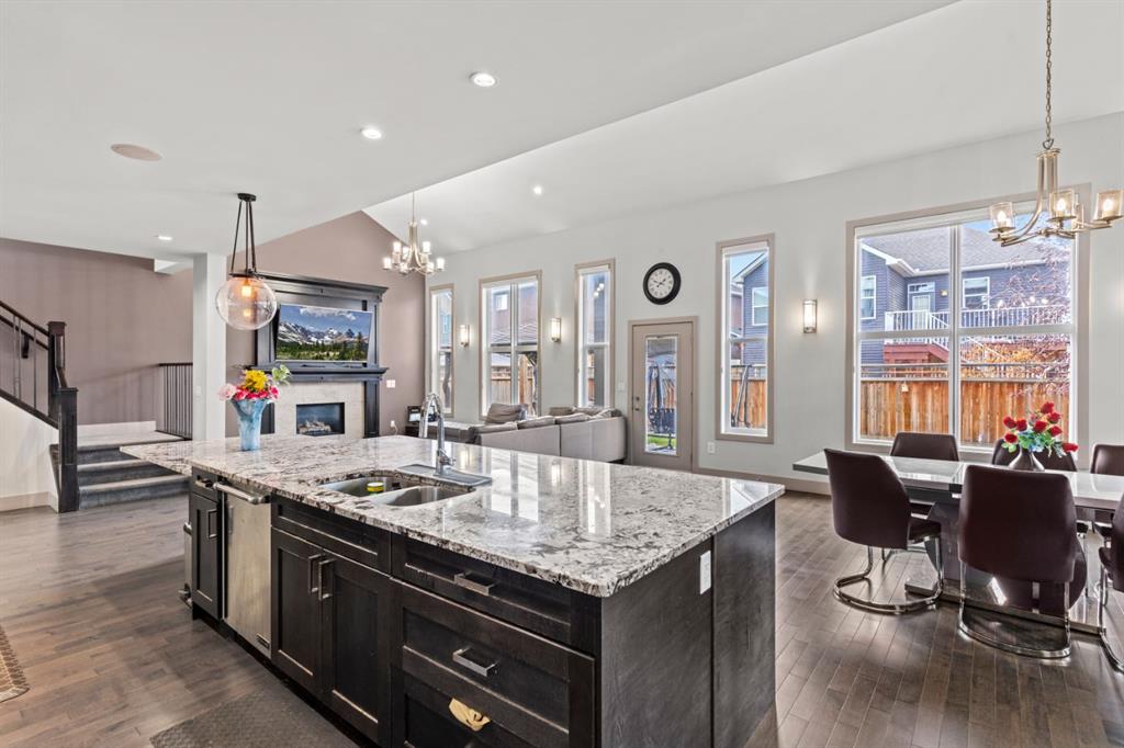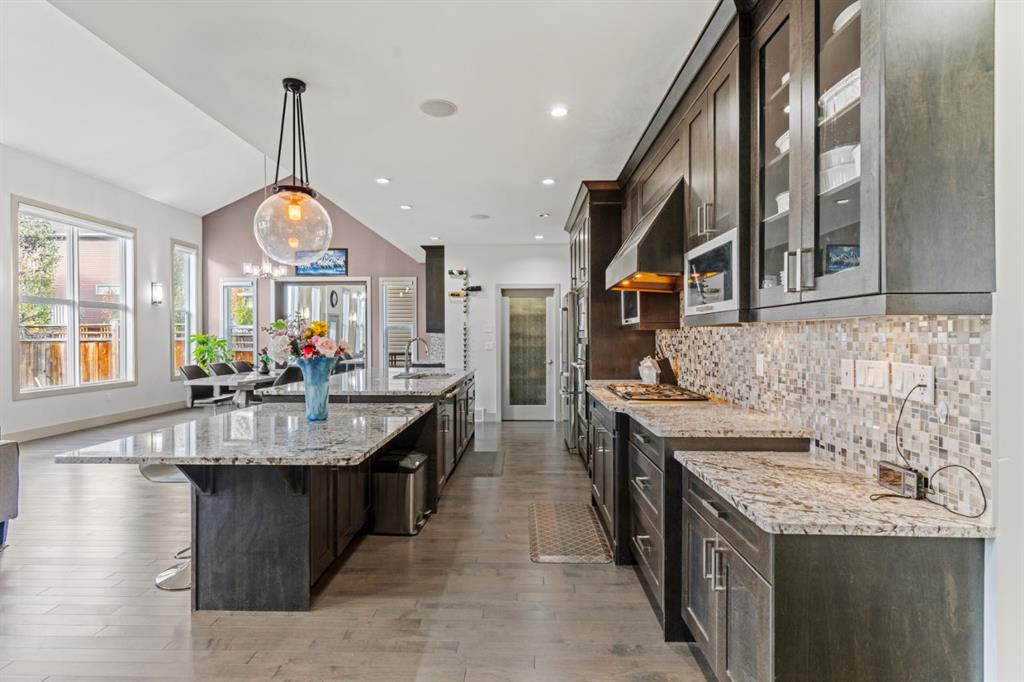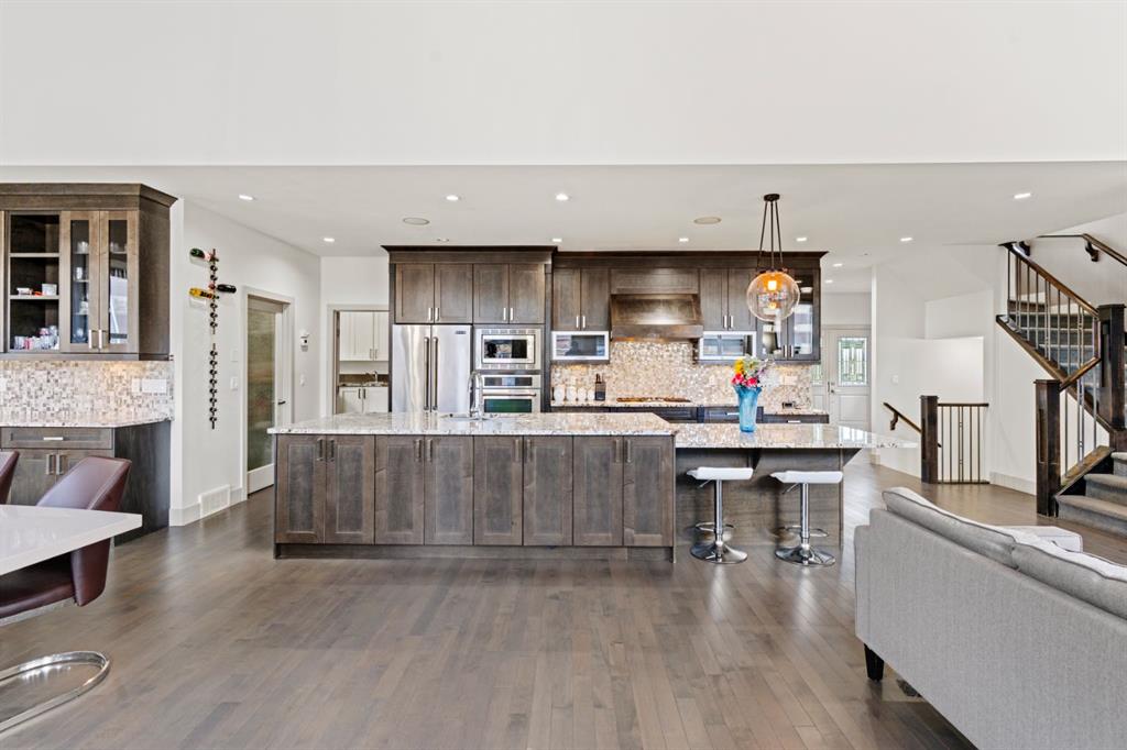 Discover this exceptional two-story residence in the highly sought-after community of Kinniburgh, Chestermere. It showcases 3,960 sq ft of beautifully finished living space designed for modern family living with a touch of sophistication. Step through the grand entrance into an inviting main level featuring vaulted ceilings, a stunning open-to-below living room, and large windows that fill the home with an abundance of natural light. The open-concept layout flows effortlessly, creating an ideal setting for both entertaining and everyday comfort. A versatile main-floor office provides a quiet space to work from home or can easily serve as a sixth bedroom for guests or multi-generational living. Upstairs, you’ll find four spacious bedrooms, including a luxurious primary suite complete with a spa-inspired ensuite, soaker tub, dual vanities, and a walk-in closet. The fully developed basement adds another layer of flexibility, offering a fifth bedroom, a full bathroom, and open space ready for your vision — whether that’s a home theatre, wet bar, gym, or entertainment lounge. Enjoy the outdoors in your large, landscaped backyard, which features a beautiful gazebo. This space is perfect for hosting or relaxing with family. Ideally located close to Chestermere Lake, top-rated schools, shopping, parks, and pathways, this home combines luxury, location, and lifestyle in one remarkable package. Experience elevated living in one of Chestermere’s premier communities. Welcome home to Kinniburgh!