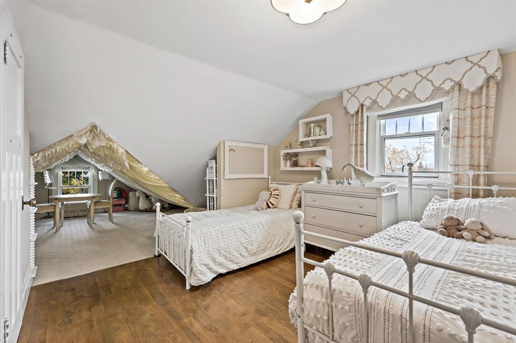 Charming Arts & Crafts–style one-and-a-half-story home perfectly situated in the desirable community of Scarboro. This delightful residence showcases a thoughtful layout filled with character and numerous updates. The central hall design leads to a spacious living room featuring built-in bookshelves, original piano windows, and a cozy wood-burning fireplace, alongside a formal dining room ideal for entertaining. The kitchen includes a butcher block island, honed granite countertops, stainless steel appliances, and a bright breakfast nook. The main floor also offers a versatile bedroom or den and a full bathroom. Upstairs, you’ll find three inviting bedrooms, including a large primary suite with a walk-in closet and a luxurious copper soaker tub that adds a touch of old-world elegance. The lower level has been recently renovated to include a spacious family and games area, a guest bedroom, and a stylish three-piece bath. Filled with natural light, this home features hardwood floors, exposed brick accents, original woodwork, and timeless charm throughout. Located close to tennis courts, 17th Avenue SW, and downtown—this is truly a special Scarboro home blending heritage character with modern comfort.