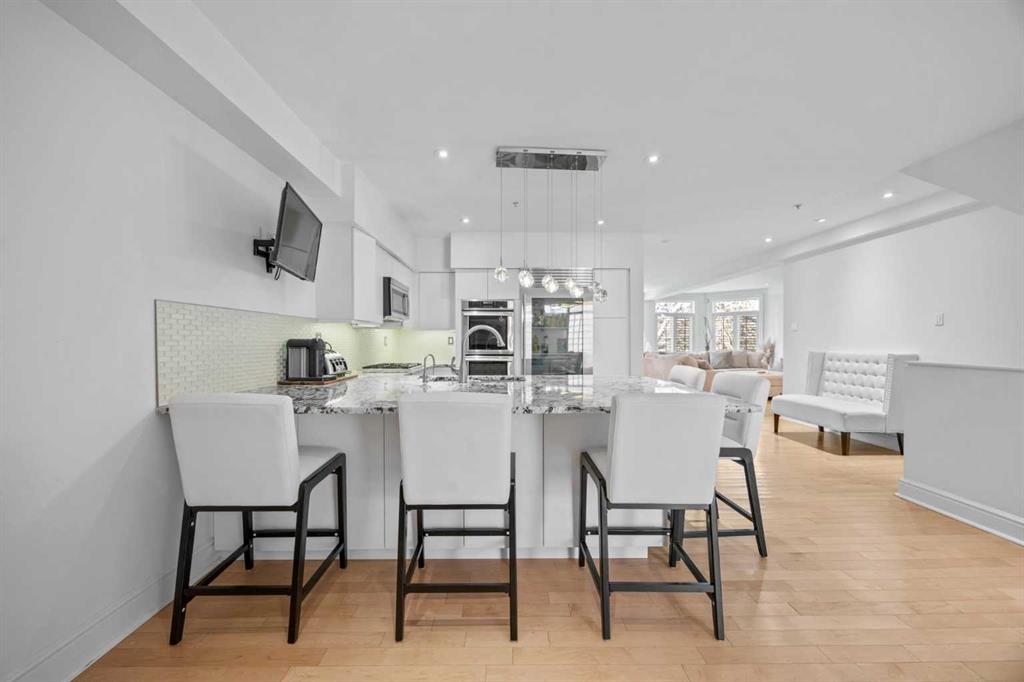 PRIVATE RIVER FRONT TOWNHOME!! LOCATION, LUXURY, LIFESTYLE — Welcome to the Crown Jewel of Prince’s Island Estates. Experience the epitome of refined urban living in this extraordinary RIVERFRONT TOWNHOME ideally situated in the heart of PRESTIGIOUS Eau Claire. This exclusive executive END UNIT is THE premier unit offering unmatched sophistication, privacy, and panoramic CITY & RIVER VIEWS from every level. Boasting over $250,000 in HIGH END renovations, this residence combines modern elegance with timeless design. You will LOVE the 4 expansive balconies that are the LARGEST in the development and the DIRECT PRIVATE access from your 2 UNDERGROUND PARKING STALLS DIRECTLY into this home. A gated front entry ensures heightened privacy and security, while the vibrant energy of downtown Calgary is mere steps away — enjoy instant access to the Bow River pathways, world-class dining, upscale boutiques, and an endless array of amenities. A private front patio welcomes you into a bright main floor where style and function blend seamlessly. The chef-inspired kitchen is a masterpiece, featuring striking GRANITE countertops, high-end stainless steel appliances including a GAS range and professional-grade refrigerator, chic pendant lighting, a bar fridge, and extensive full-height custom cabinetry. An elegant formal dining area flows into a grand living room with a feature marble accent wall, creating an ideal space for entertaining guests in style. Every inch of this home has been meticulously crafted to impress. Upstairs, the second level hosts two generously-sized bedrooms, each with ample closet space and fully renovated spa-inspired bathrooms complete with IN FLOOR heating, modern tile work, granite counters, and luxury finishes. The primary suite features its own private balcony overlooking tranquil river paths. The third level offers a versatile bonus room — perfect as a home office, media room, or 3rd bedroom — along with not one, but two spectacular balconies. One offers sweeping downtown skyline views, while the other is a sprawling private terrace backing onto Prince's Island Park + the seller has engineering approval that this deck can SUPPORT A HOT TUB!! Welcome to your own personal oasis. Homes like this do not come up often!! Don’t miss this amazing opportunity to own your DREAM HOME in one of Calgary’s most coveted communities. This unique property features a full time property manager & grounds keeper + ALL UTILITIES are included in your condo fees!!