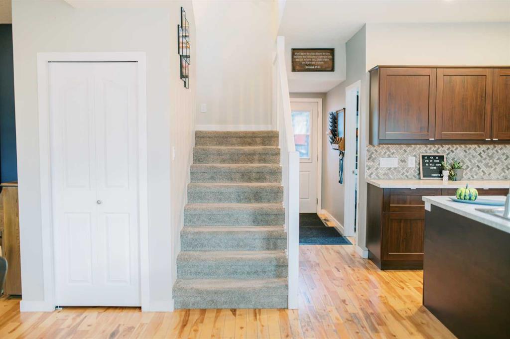 This two-story home in Stettler offers the best of both worlds: timeless character and modern construction. In 2018, the original structure was carefully removed from its foundation and a new basement was poured, creating a brand new home while preserving its story. Taken right down to the studs, this home was completely rebuilt—from the plumbing, electrical, and mechanical systems to the roof, kitchen, and every finish throughout—offering the peace of mind of new construction with the warmth of a classic design. With five bedrooms and two and a half baths, the layout is ideal for families. Upstairs are two comfortable bedrooms and a full bathroom, including a spacious primary bedroom with a walk-in closet. The main floor features a flex room that could serve as storage, a walk-in pantry, or a home office. The basement offers two good-sized bedrooms, a family recreation room, additional storage, and another full bathroom. The open-concept living and dining area feels both inviting and connected—perfect for everyday living and family gatherings. Outside, the partially fenced yard includes a dedicated dog run and a back deck, and all the homework has been done to add a garage if desired. Set just steps from the school and within easy walking distance of downtown amenities and restaurants, this is truly a one-of-a-kind Stettler home where modern comfort meets enduring charm.