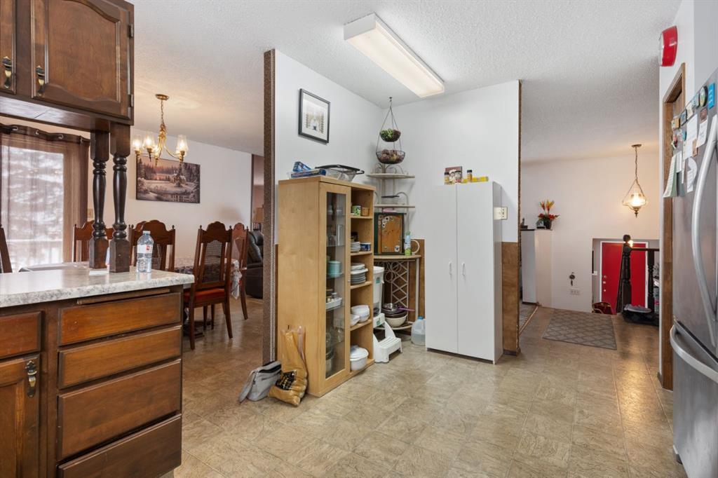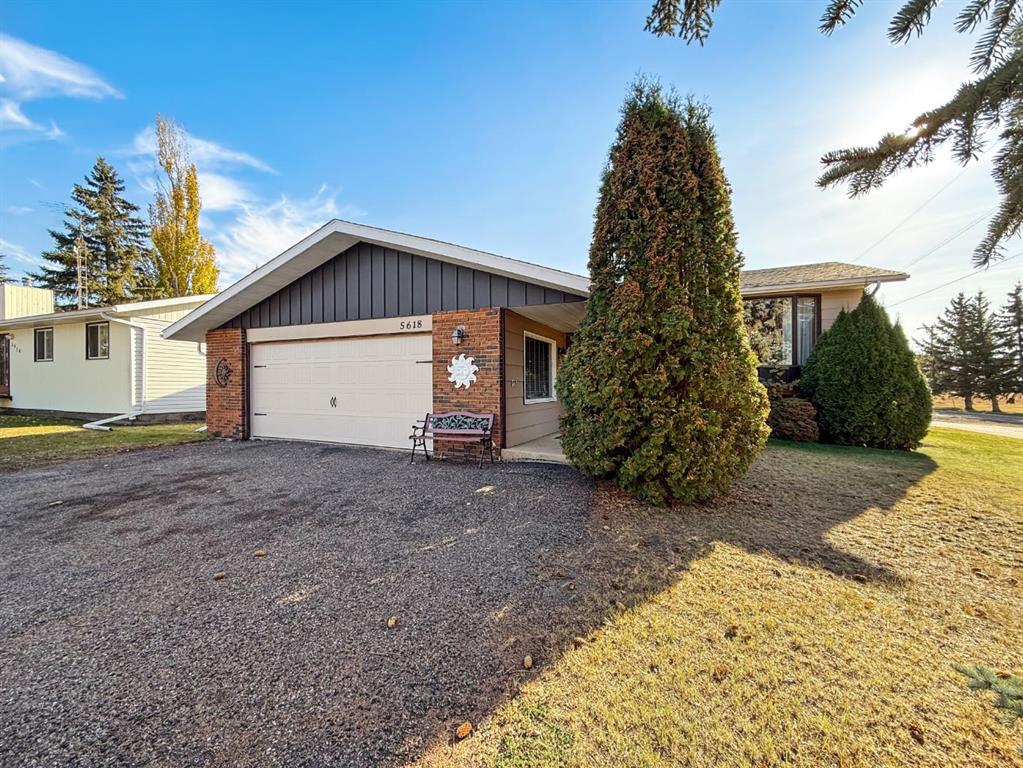 This large family home offers a spacious footprint with room for everyone to spread out and enjoy. The welcoming foyer makes a great first impression, with space for a drop table, bench, or a warm spot to greet guests. Upstairs, a family-style living room with a bay window fills the space with natural light and sits just off the dining area for easy conversation and open sightlines. The kitchen is well laid out with good counter space and storage, making it both functional and inviting for everyday use. A true standout feature of this home is the sunken second living room on the main level — a rare layout that adds character, flexibility, and extra living space for family gatherings or quiet evenings. The main floor includes two bedrooms, including the primary with its own two-piece ensuite. The classic bi-level design really shows on the lower level, where large windows brighten the space. Here you’ll find a vintage-style rec area with bar, three additional bedrooms (one without a closet, perfect for a hobby or gym), a three-piece bath, and plenty of storage and utility space. Basement access to the backyard offers flexibility for guests, roommates, or shift workers. The double attached garage provides convenience and protection from the elements, making winter mornings easier. Located on a corner lot with no neighbour to the west, you can enjoy beautiful sunset views from the upper deck. Forestburg is a friendly community known for its great Rec Centre, quality schools, and welcoming small-town atmosphere — a wonderful place to put down roots and call home.