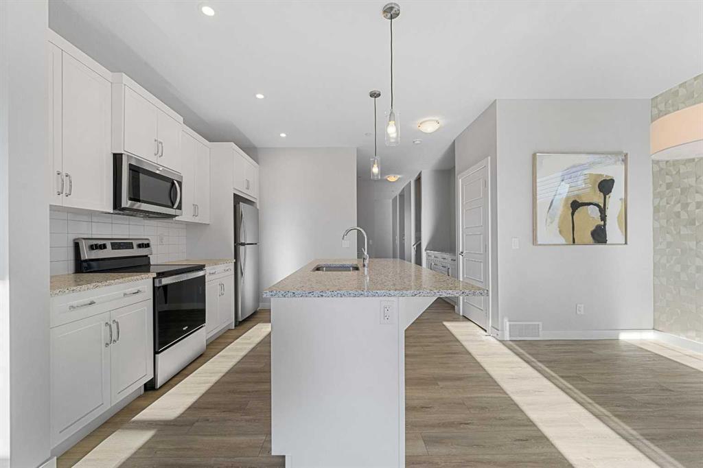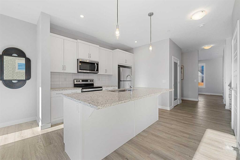 Discover this brand-new build by Broadview Homes — the Concord II, thoughtfully designed for effortless living. With 1,793 sqft, 3 bedrooms and 2.5 baths, this former show-home is show-ready and waiting for you. The open and airy floor plan provides you with ample living space. The front living room is framed with large windows, creating a comfortable and bright space to relax and unwind. The central kitchen features a generous island with bar-stool seating and flows directly into your rear dining room — the mud room and back door open seamlessly to bring indoor/outdoor living to life. A second living space on the main level opens to both the kitchen and dining areas, making it a true entertainer’s layout. Upstairs the 3 bedrooms and 2 bathrooms cater ideally to your family. The primary bedroom serves as a private oasis, complete with a walk-in closet and a luxurious 5-piece ensuite with dual-vanity sink. Bedrooms 2 & 3 share the main 4-piece bath. Upper level laundry adds ultimate convenience, positioned right near your bedrooms. Throughout the home you’ll find 9' ceilings for an open, airy environment, pot-lighting, high-quality cabinetry from Wildwood with soft-close drawers and doors, an engineered floor system with tile in all wet areas, superior carpet in the bedrooms and an array of LVP choices, and built-in speakers to elevate your lifestyle. Outside boasts a rear deck, lane access and a 2-car parking pad. Move in with confidence and immediate style.