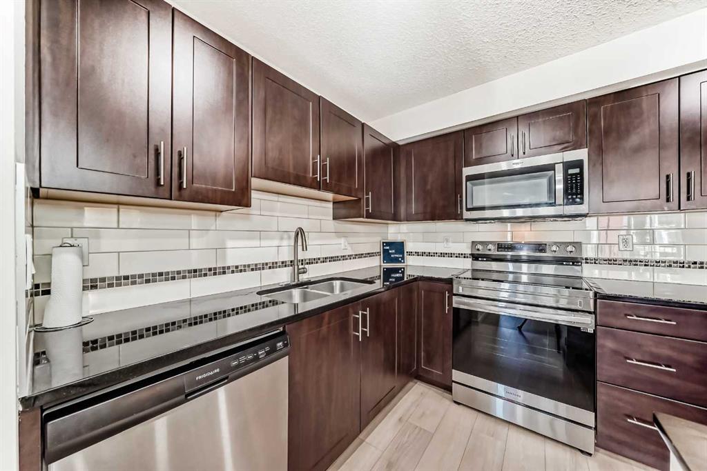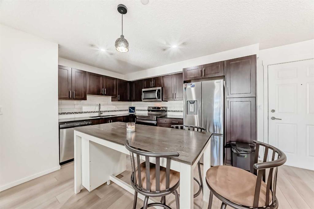 Discover this well-kept 2-bedroom, 2-bathroom condominium with titled underground parking in the highly desirable community of Copperfield. This bright and inviting unit features an open-concept floor plan that welcomes abundant natural light throughout the day. Step out onto your private patio and enjoy beautiful views—perfect for relaxing or entertaining. The modern kitchen offers plenty of cabinetry, quartz countertops, undermount sinks, and stainless-steel appliances, including a French door refrigerator with ice and water, and a new electric range. The furniture-style kitchen island adds both functionality and style. Both bedrooms feature their own Ensuite bathrooms, providing comfort and privacy. You’ll also enjoy the convenience of in-suite laundry, ample storage, and an assigned storage locker for your personal use.Recent Upgrades: French door refrigerator with ice & water dispenser.New electric range,Brand new flooring in the living area,Fresh professional paint throughout (last year)New pot lights,Motorized window coverings,Furniture-style kitchen island The open-plan living and dining area flows seamlessly to the balcony, complete with a gas line for your BBQ—perfect for outdoor gatherings. Located in a prime Copperfield location, this home is just steps from parks, playgrounds, sports courts, and Copper Pond. Enjoy quick access to shopping, schools, and major routes such as Stoney Trail and Deerfoot Trail. Don’t miss this opportunity to own a beautiful, move-in-ready unit in one of Calgary’s most sought-after communities. Book your private showing today!