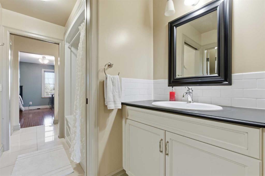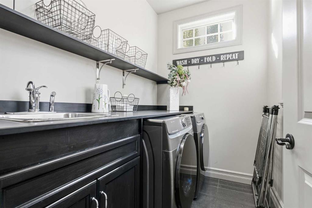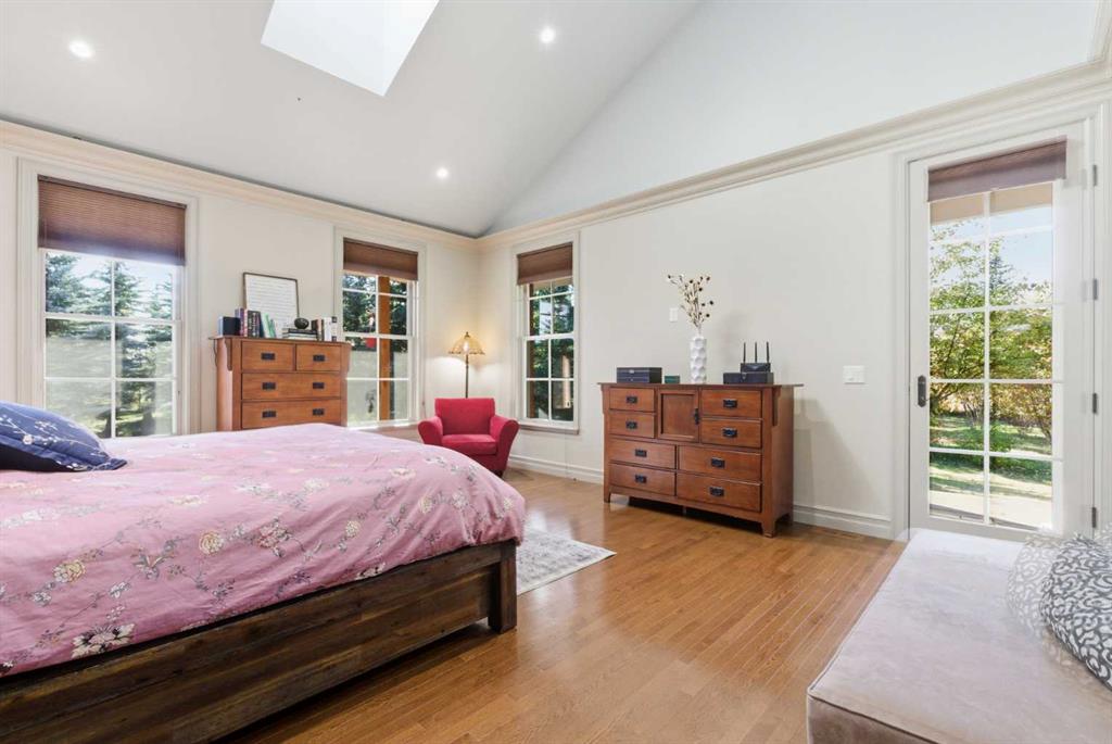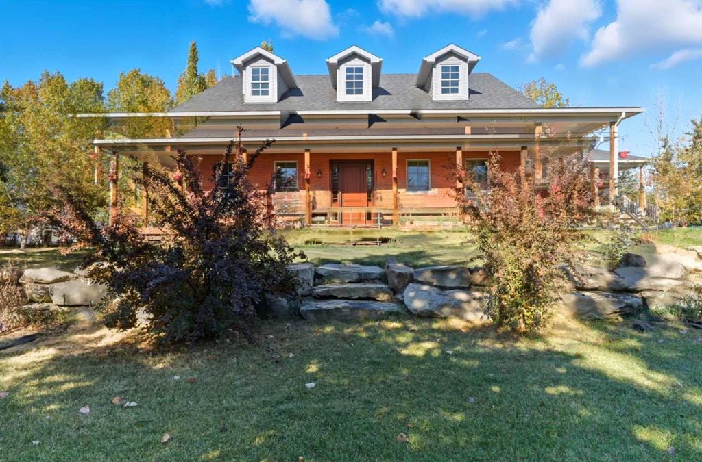 Properties of this caliber rarely come to market. Once part of Rural Rocky View County, this residence now offers the perfect blend of country tranquility and urban convenience—you can walk for coffee yet return home to your own secluded, tree-lined retreat behind an automatic gated entry. The timeless brick one-and-a-half-storey home showcases over 5,050 square feet of refined living space, complemented by a heated oversized double attached garage and an additional heated detached double garage. The main floor spans nearly 2,200 square feet with rich hardwood flooring, classic wainscoting, and an elegant hardwood staircase. The stunning two-toned chef’s kitchen features a butcher-block island, cabinet-paneled refrigerator, gas range with pot filler, and generous windows framing serene treed views. Step outside to the rear deck with a custom gazebo and windscreens—ideal for outdoor dining and relaxation. Every window opens, and each exterior door is equipped with custom Phantom screens, welcoming a natural breeze throughout. The adjacent formal dining room offers the perfect setting for entertaining, while the main-floor laundry with sink adds practicality. The main-floor primary suite is a luxurious retreat, highlighted by vaulted ceilings, direct access to the wraparound teak veranda, and a spa-inspired ensuite with dual sinks, standalone ultra-air tub, steam shower, and heated floors. A second bedroom (or flexible living space) on the main floor boasts vaulted ceilings, abundant natural light, and a cozy gas fireplace. Upstairs, two additional large bedrooms each include walk-in closets and share a charming Jack & Jill five-piece bathroom. The fully developed lower level features a custom wardrobe area, theatre room with projector, fitness space, expansive recreation room, fifth bedroom, secondary laundry, and direct stair access to the garage. The utility room is meticulously designed with hydronic heating, air conditioning, in-floor heating throughout, additional water storage, and ample steel-shelved storage. Outside, enjoy an invisible pet fence, greenhouse, raised garden boxes, and mature trees that create a sense of total seclusion. Experience rural living within minutes of city amenities—this extraordinary Chestermere acreage offers unmatched privacy, comfort, and elegance.