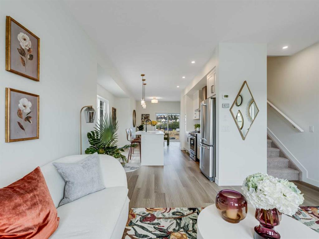 Discover a life of elegance and convenience in this stunning three-story townhome located in the heart of Westmount, Okotoks. Built by the reputable Slokker Homes, this exquisite property offers a blend of modern luxury and functional design within one of the town's most desirable, family-friendly communities. The main level welcomes you with a bright, open-concept floor plan that seamlessly connects the living and dining areas, perfect for entertaining. The gourmet kitchen is a true highlight, boasting sleek quartz countertops, a breakfast bar, and high-end stainless steel appliances. This main floor features soaring knockdown ceilings, durable vinyl plank flooring, two-tone cabinetry with soft-close drawers, SS appliances, and much more. Upstairs, you'll find the conveniently located laundry and three generous bedrooms, including the primary retreat complete with full ensuite. The home's three-story layout, featuring 2.5 baths, provides an abundance of living space and thoughtful details throughout.This property comes with an attached garage and an EXTRA TITLED parking stall. The prime Westmount location is unbeatable, offering easy access to the Westmount K-9 school and extensive community walking trails and parks. Enjoy a lifestyle of convenience with essential shopping, dining, and services just moments away at the Westmount Centre retail hub.This home is the perfect blend of style, comfort, and location, providing a great base for your life in the foothills.