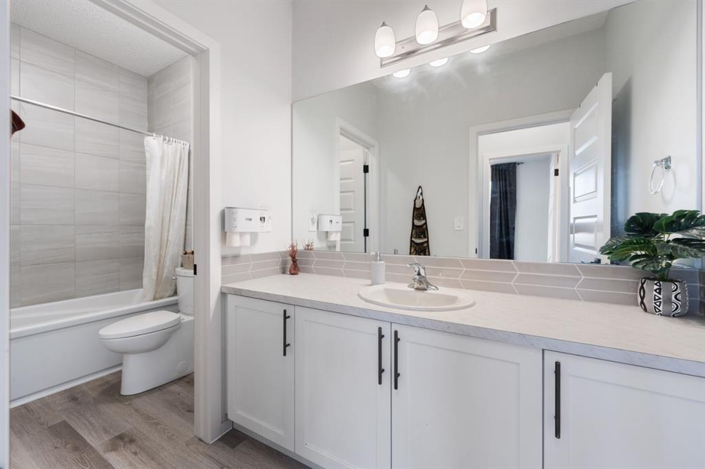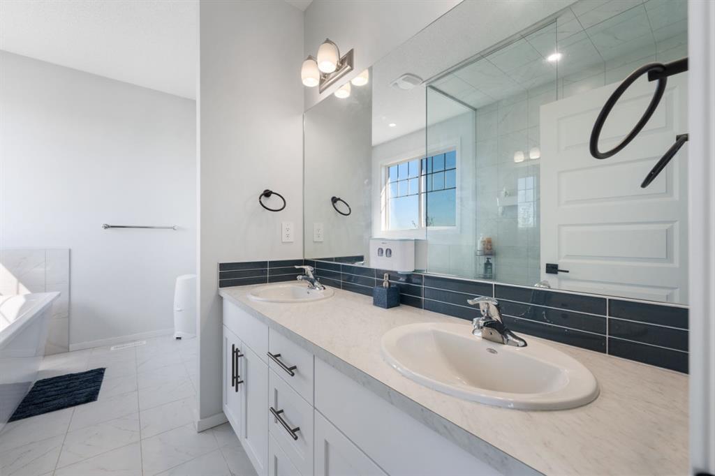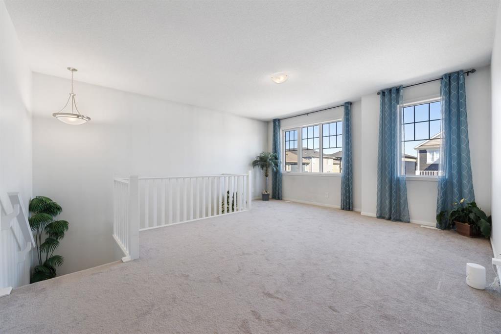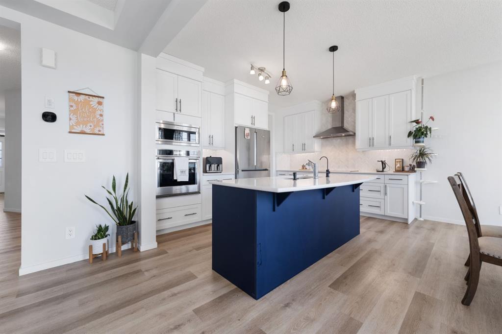 This stunning 2023 Mattamy-built residence has been meticulously maintained and loaded with custom touches. With 9-ft ceilings throughout (including the basement), the main floor feels bright and spacious, featuring 8-ft doors, upgraded hardware, and elegant railing. The chef’s kitchen boasts full-height soft-close cabinets, quartz countertops, valance lighting, a walk-in pantry, 36” cooktop and range, built-in KitchenAid & Bosch appliances, garburator, RO faucet, and an upgraded backsplash. The luxurious primary bedroom features large windows, his and her closets, and a spa-inspired 5-piece ensuite with a frameless shower, while all bathrooms include elongated soft-close toilets. Additional highlights include a 200 AMP electrical upgrade, Culligan water treatment system (softener & RO), drip humidifier, EV car charger in the garage, AC rough-in, side entry, and a basement with 9-ft ceilings plus laundry and bathroom rough-ins. Steps away from parks, convenience stores, and schools. This home also sits just a short walk from Airdrie’s newest upcoming recreation centre. This location offers the perfect blend of comfort, accessibility, and lifestyle convenience.