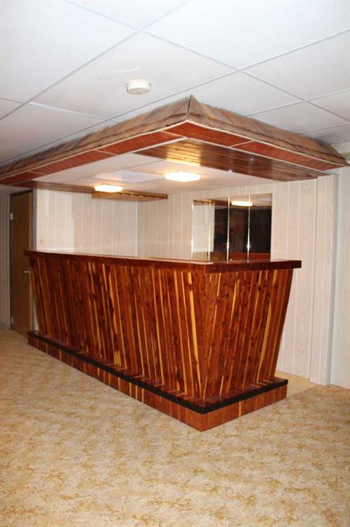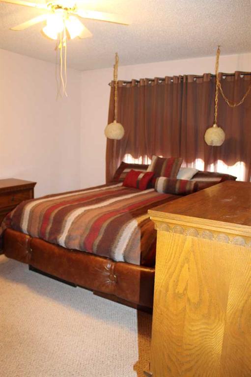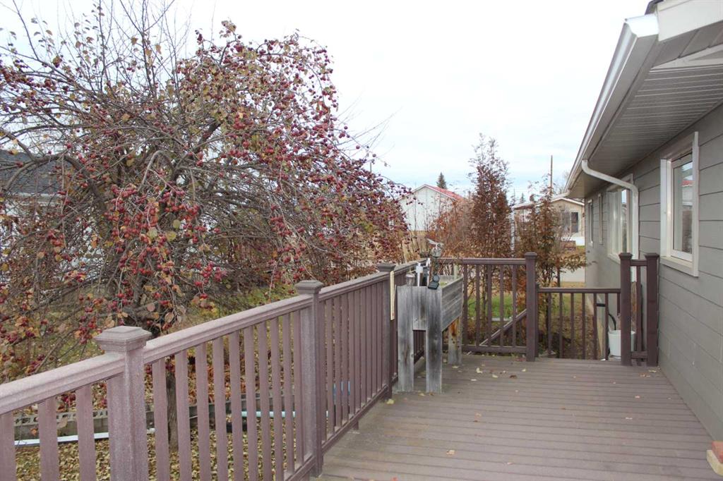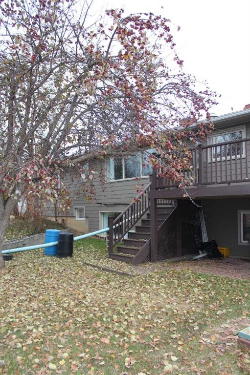 Welcome to this beautifully developed bungalow, perfectly situated on two lots close to downtown, the schools and the sports complex. With five bedrooms and two bathrooms, there is plenty of space for family and guests alike. The heart of the home is the bright living and dining area, centered around a stunning floor-to-ceiling, double-sided brick fireplace-a cozy focal point for family gatherings. The main floor is filled with natural light and features a spacious kitchen, dining and living area, along with three good-sized bedrooms, a full bathroom and central air conditioning for year-round comfort. Step out from the kitchen onto the large deck, the perfect spot to enjoy relaxing morning or evening chats. The fully finished basement adds even more living space with a pellet stove for added warmth, a large family room, bar, two additional bedrooms, a second bathroom, a laundry area, and convenient walk-out access to the yard. This well-maintained home also includes triple-pane windows, Hardie Board siding, and 30-year Cambridge shingles (installed in 2010). There are two paved driveways, one for added parking space and one that leads to the attached single-car garage. A wonderful property worth taking a look at!