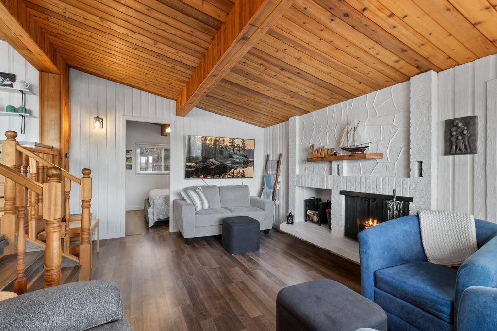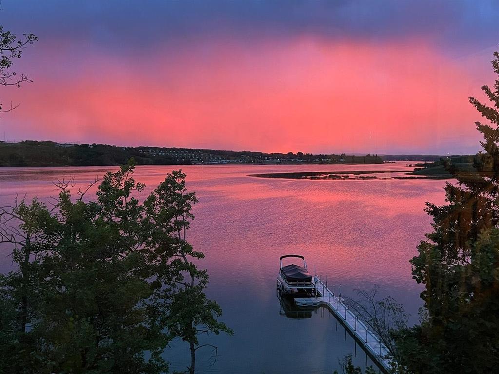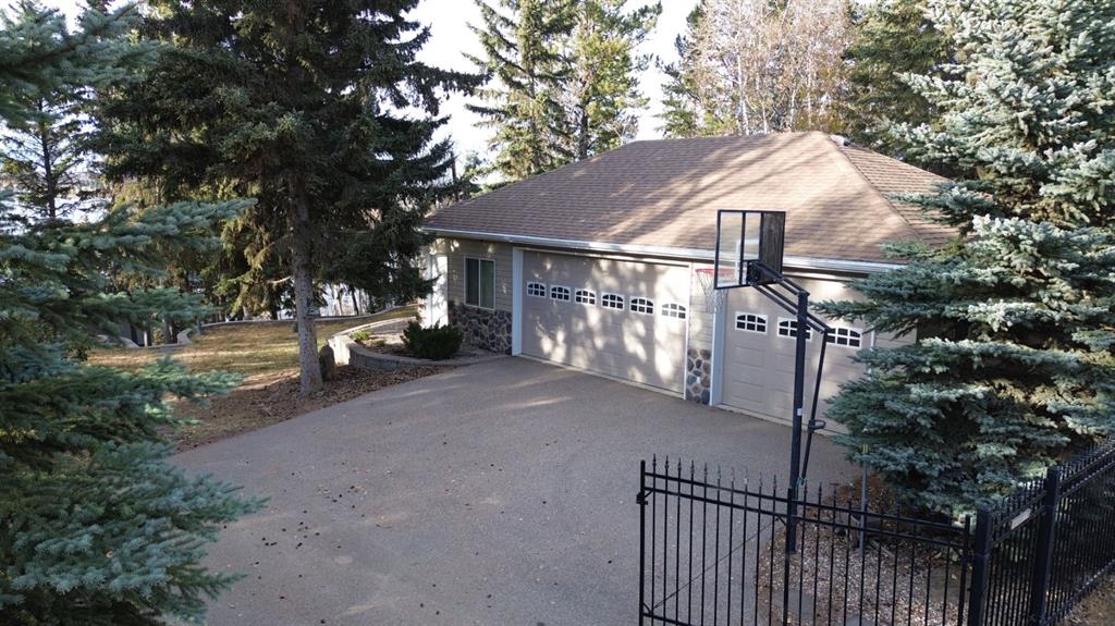 LAKEFRONT PARADISE! Beautiful mature spruce trees and extensive landscaping cover this one of a kind property. Cobblestone pathways lead to your awesome walkout Lake House. Everything finished and ready for year round fun including a low maintenance floating dock system. Easily one of the best views on the lake from your top and lower decks. Huge 26x42 detached garage to store your boat and park your vehicles. There's a separate space with 2pc bath for extra visitors off the side of garage. Private water well & underground sprinkler system. Extensive landscaping and stunning view points. Upgraded septic system with lift station and large 3100 Gal holding tank, top of the line instant hot water heat system, upgraded electrical panel and a fully serviced RV site with sani-dump. Inside your lake house, vaulted cedar ceilings, fireplace, two decks, three bedrooms, walkout, heated tiles in bathroom floor and much more. Both upper and lower decks/sunroom have been recently rebuilt. Enjoy the beautiful lakefront view from the fully enclosed Sunscapes sunroom. Boat house and level lakefront area to soak up the rays and watch the family water sports. This is your golden opportunity with an amazing 100 ft of lakefront. Sleeps up to 10 or more guests! Property sells fully furnished and turn key. Beautiful 18 hole golf course, lakefront lounge and more directly across the lake. This is a West Facing property that benefits from stunning sunsets and warm sunshine. Pine Lake is very popular for all water sports and known for its excellent fishing. This is a cottage for all seasons. Boat dock/ lift & Lawn mower included. All this only 90 minutes from Calgary, 20 minutes from Red Deer & 2hrs from Edmonton.