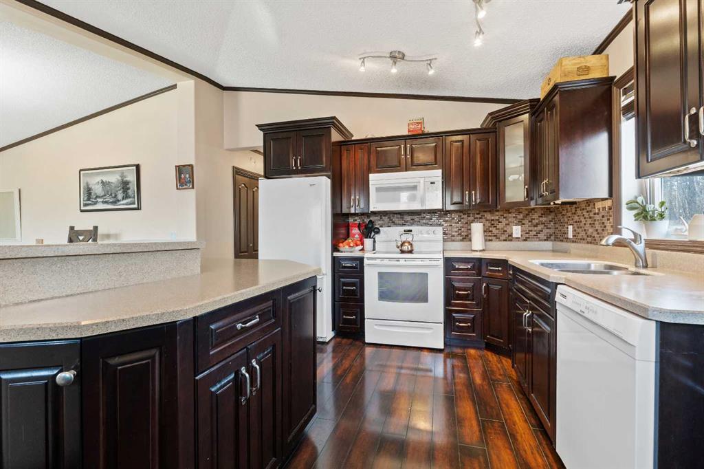 Welcome to this charming 4-bedroom home set on 5.5 private acres, offering space, comfort, and opportunity. This 1,037 sq. ft. home has a full walk-out basement, is full of character. The main floor features a bright updated front kitchen with an island and a cozy living room. Two full baths on the main floor. The primary bedroom opens to a large 28' x 14' deck to watch those sunsets and enjoy the privacy of country living. There is a main-floor laundry plus room to add a second on the lower level. Downstairs, the spacious family room provides plenty of room to relax or entertain, and with a walk-out basement and in-floor heat, there’s excellent potential to create a basement suite or handy guest space. Enjoy forced-air heating on the main level for year-round comfort. Outside, you’ll find everything you need, including an above-ground swimming pool, two sheds, a greenhouse, and a large tarp shed for storage or projects. Located east of Whitecourt, a short drive to your own acreage living.