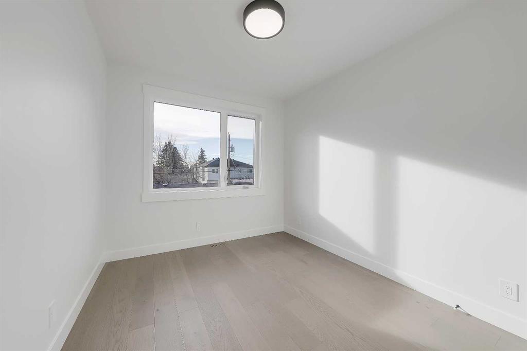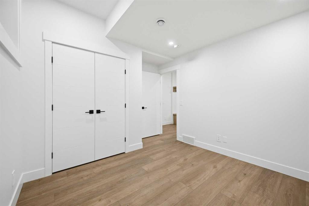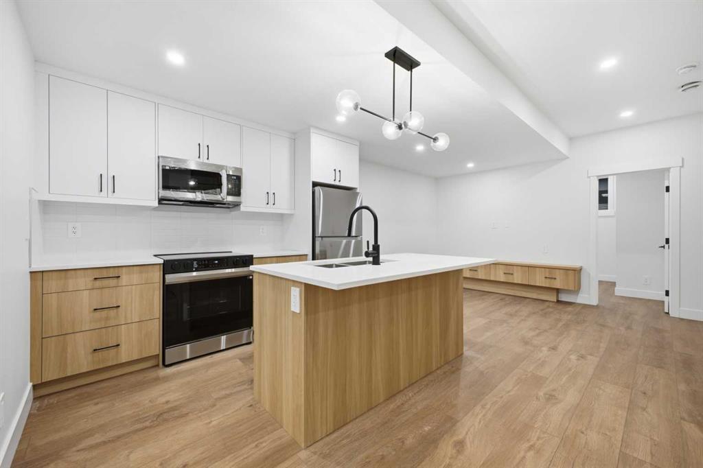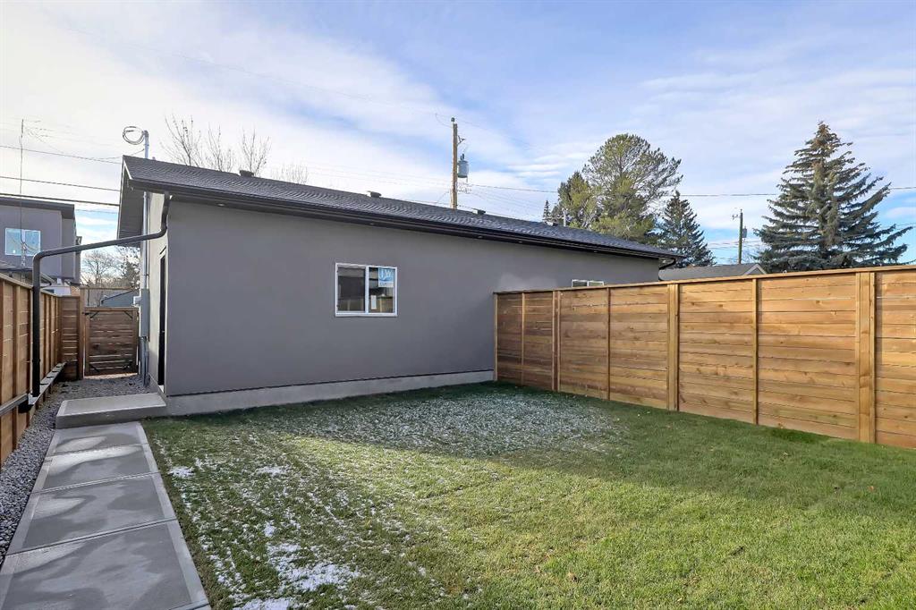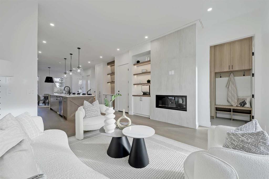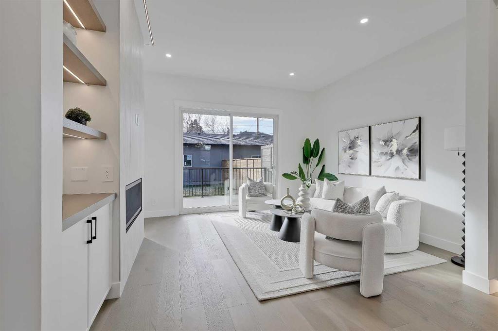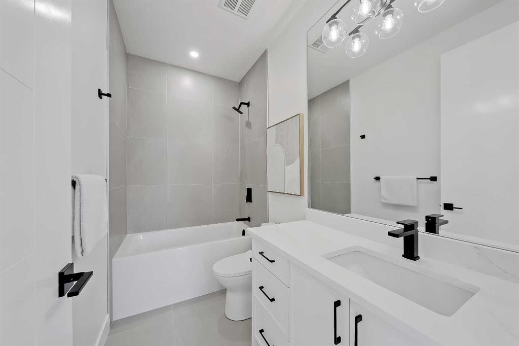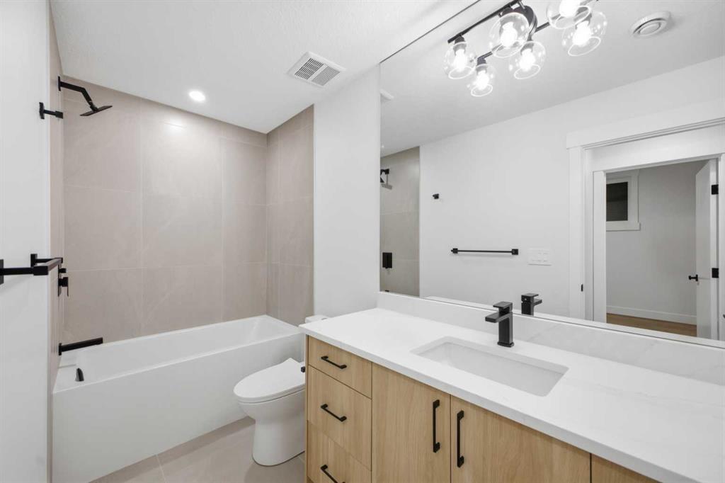 LOCATION LOCATION! Built on a quiet street only steps to West Confederation Park, this BRAND-NEW semi-detached infill in Banff Trail offers a superb floorplan with a LEGAL BASEMENT SUITE (Approved with the permit & subject to final inspection by the city). Banff Trail is well-situated in inner-city NW, with lots of outdoor recreation, schools, & shopping nearby. Confederation Park & the Charleswood Tennis Courts & Splash Park are a quick walk down the street, the City of Calgary toboggan hill is only 6-mins away, and the Confederation Park Golf Course is only 10-min down the road; a quick 9 holes after dinner can be a weeknight reality! Banff Trail School is mins away & Calgary Montessori School, Branton School, Rosemont School, and St Francis High School are all close by, with SAIT & UofC a short bike ride away. Dining options, shopping, amenities, and more are all at your fingertips, with Banff Trail, North Hill Centre, and all the businesses along Crowchild easily accessible from this inner-city location. With an amazing layout & premium finishes, you’ll discover a beautiful blend of both a stylish & functional lifestyle. This home features several upgrades, including engineered hardwood & 10-ft ceilings on the main level, soaring ceilings on the upper floor & a fully-developed basement w/ a LEGAL SUITE. The main floor boasts large primary living spaces, including a bright front dining/flex room, a large central kitchen with an oversized island w/ bar seating, ceiling-height custom cabinetry, and built-in pantry & coffee station. The large rear living room is finished w/ an inset gas fireplace w/ modern full-height surround, built-in millwork, and large windows overlooking the SOUTH back patio – perfect for family gatherings! A rear mudroom hosts a bench with hooks, with direct access to the double detached garage out back and an elegant, private powder room. Upstairs, you'll find the two secondary bedrooms w/ built-in closets, a spacious laundry room and a main 4-pc bath w/ modern vanity and a tub/shower combo w/ full-height tile surround. The primary suite features a soaring vaulted ceiling, multiple tall windows for tons of natural light, and a large walk-in closet w/ built-in storage. The 5-pc ensuite shows off with heated tile floors, glass shower w/ full-height tile, a free-standing tub, a modern vanity, dual under-mount sinks, and a separate water closet. The fully-developed LEGAL BASEMENT SUITE (approved in the development permit by the city) enjoys private access through a secure side entrance, two generous-sized bedrooms w/ built-in closets, a spacious and contemporary 4-pc bath w/ modern tile & vanity, large windows, space for a washer & dryer, plus a large living room area! The kitchen is thoughtfully arranged with quartz countertops & full-height cabinetry. Take a drive by this property and see how this house & fantastic location will suit your family perfectly! * Photos from Show Suite finishes may vary slightly*