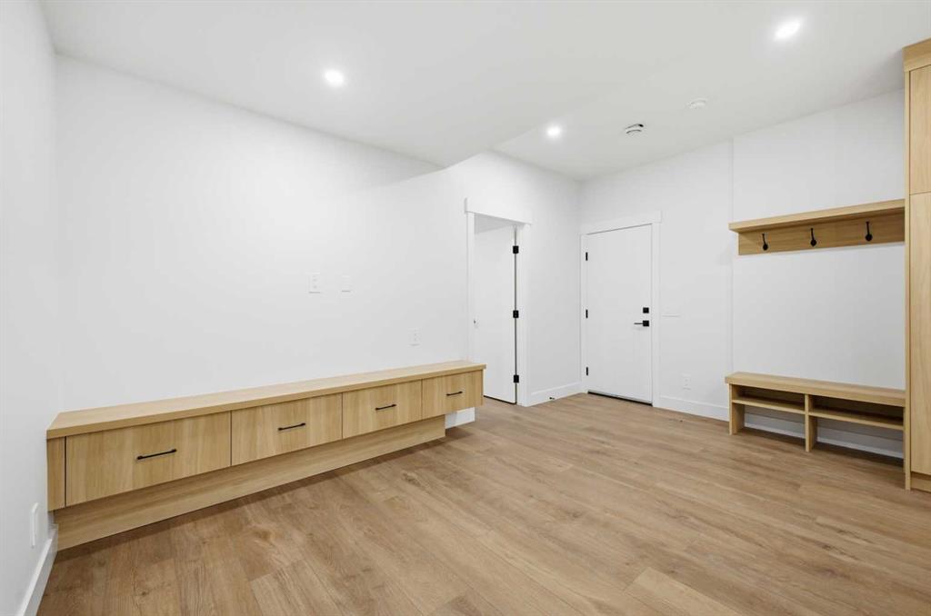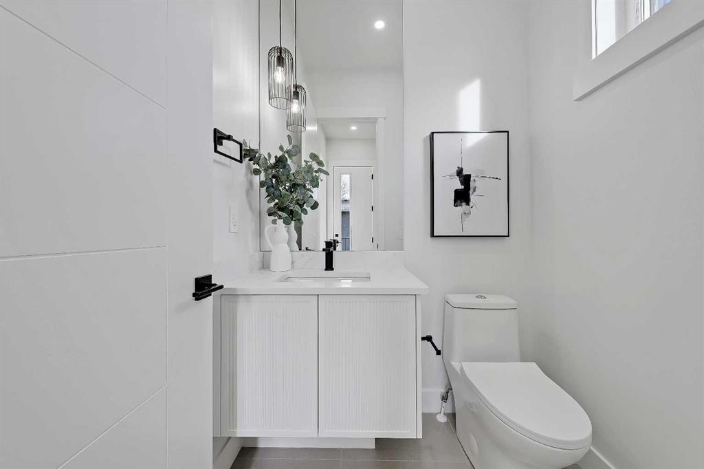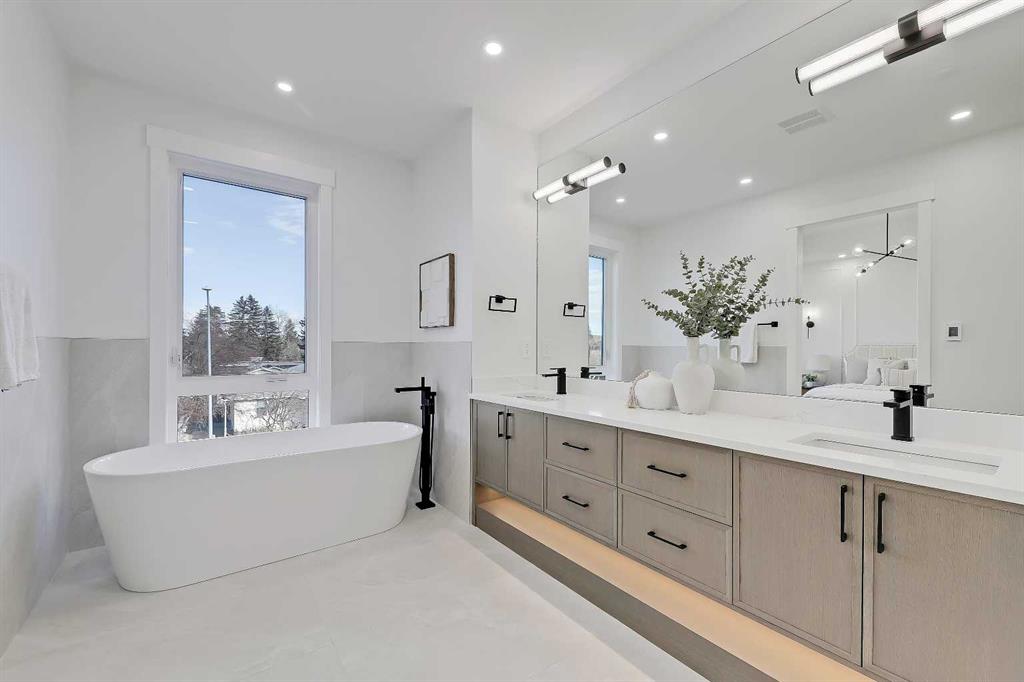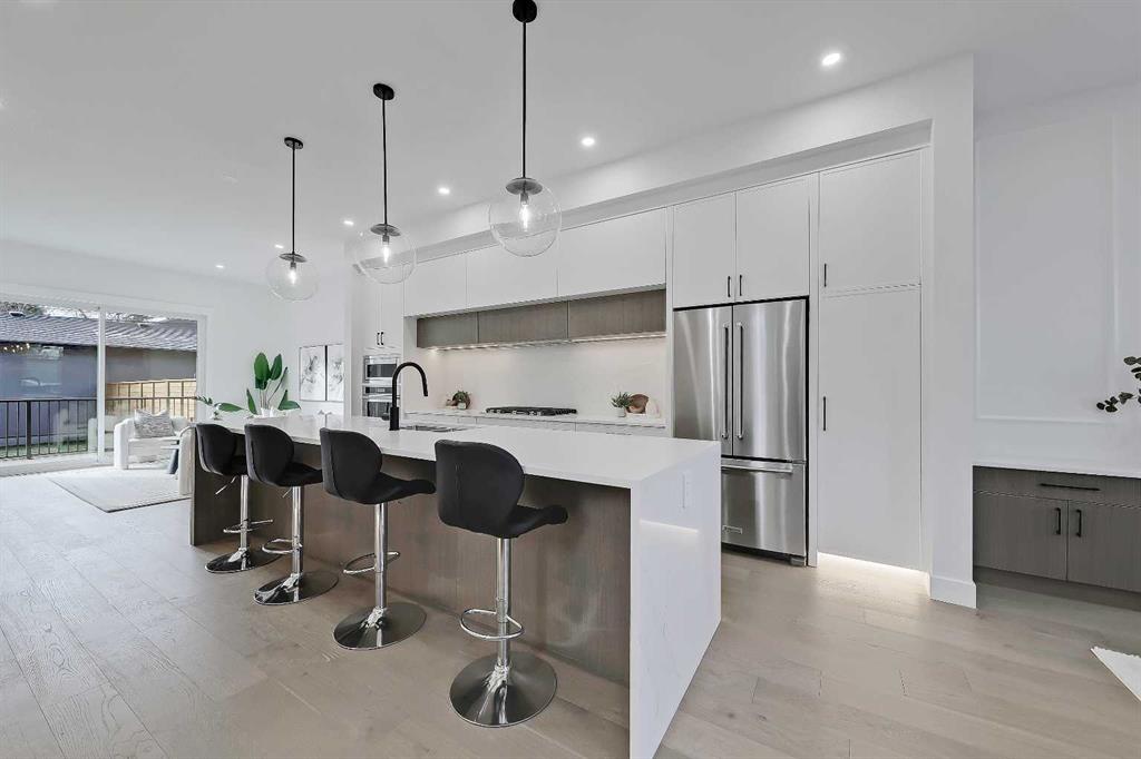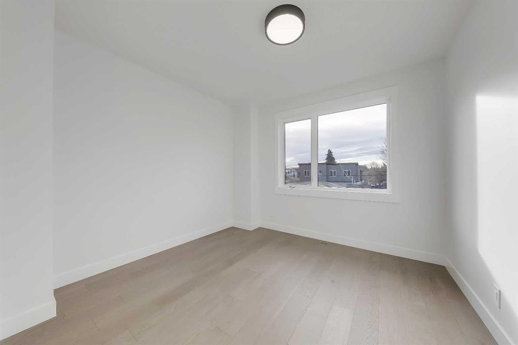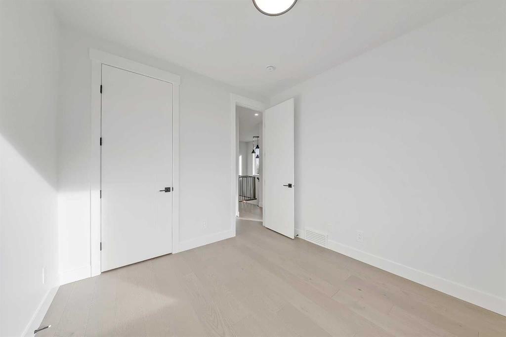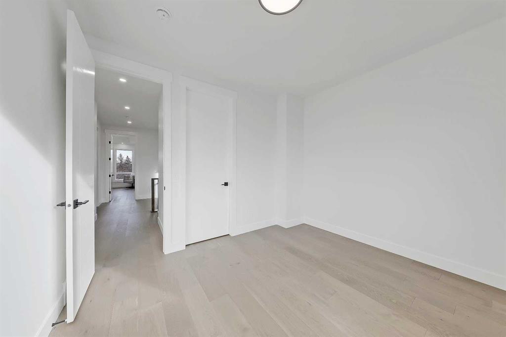 LOCATION LOCATION! Built on a quiet street only steps to West Confederation Park, this BRAND-NEW semi-detached infill in Banff Trail offers a superb floorplan with a LEGAL BASEMENT SUITE (Approved with the permit & subject to final inspection by the city). Banff Trail is well-situated in inner-city NW, with lots of outdoor recreation, schools, & shopping nearby. Confederation Park & the Charleswood Tennis Courts & Splash Park are a quick walk down the street, the City of Calgary toboggan hill is only 6-mins away, and the Confederation Park Golf Course is only 10-min down the road; a quick 9 holes after dinner can be a weeknight reality! Banff Trail School is mins away & Calgary Montessori School, Branton School, Rosemont School, and St Francis High School are all close by, with SAIT & UofC a short bike ride away. Dining options, shopping, amenities, and more are all at your fingertips, with Banff Trail, North Hill Centre, and all the businesses along Crowchild easily accessible from this inner-city location. With an amazing layout & premium finishes, you’ll discover a beautiful blend of both a stylish & functional lifestyle. This home features several upgrades, including engineered hardwood & 10-ft ceilings on the main level, soaring ceilings on the upper floor & a fully-developed basement w/ a LEGAL SUITE. The main floor boasts large primary living spaces, including a bright front dining/flex room, a large central kitchen with an oversized island w/ bar seating, ceiling-height custom cabinetry, and built-in pantry & coffee station. The large rear living room is finished w/ an inset gas fireplace w/ modern full-height surround, built-in millwork, and large windows overlooking the SOUTH back patio – perfect for family gatherings! A rear mudroom hosts a bench with hooks, with direct access to the double detached garage out back and an elegant, private powder room. Upstairs, you'll find the two secondary bedrooms w/ built-in closets, a spacious laundry room and a main 4-pc bath w/ modern vanity and a tub/shower combo w/ full-height tile surround. The primary suite features a soaring vaulted ceiling, multiple tall windows for tons of natural light, and a large walk-in closet w/ built-in storage. The 5-pc ensuite shows off with heated tile floors, glass shower w/ full-height tile, a free-standing tub, a modern vanity, dual under-mount sinks, and a separate water closet. The fully-developed LEGAL BASEMENT SUITE (approved in the development permit by the city) enjoys private access through a secure side entrance, two generous-sized bedrooms w/ built-in closets, a spacious and contemporary 4-pc bath w/ modern tile & vanity, large windows, space for a washer & dryer, plus a large living room area! The kitchen is thoughtfully arranged with quartz countertops & full-height cabinetry. Take a drive by this property and see how this house & fantastic location will suit your family perfectly! * Photos from Show Suite finishes may vary slightly*