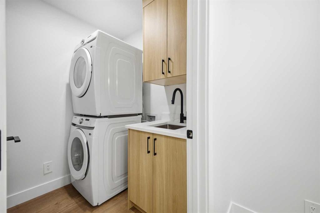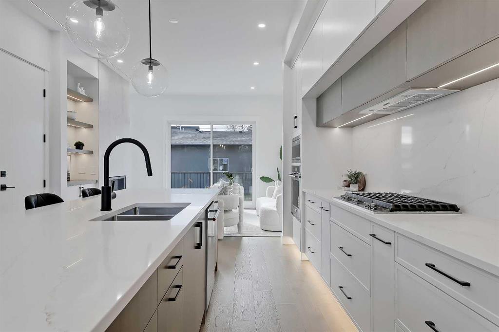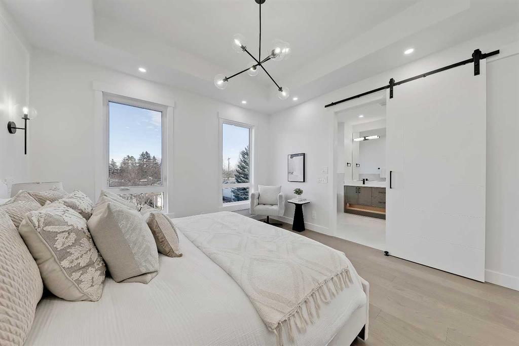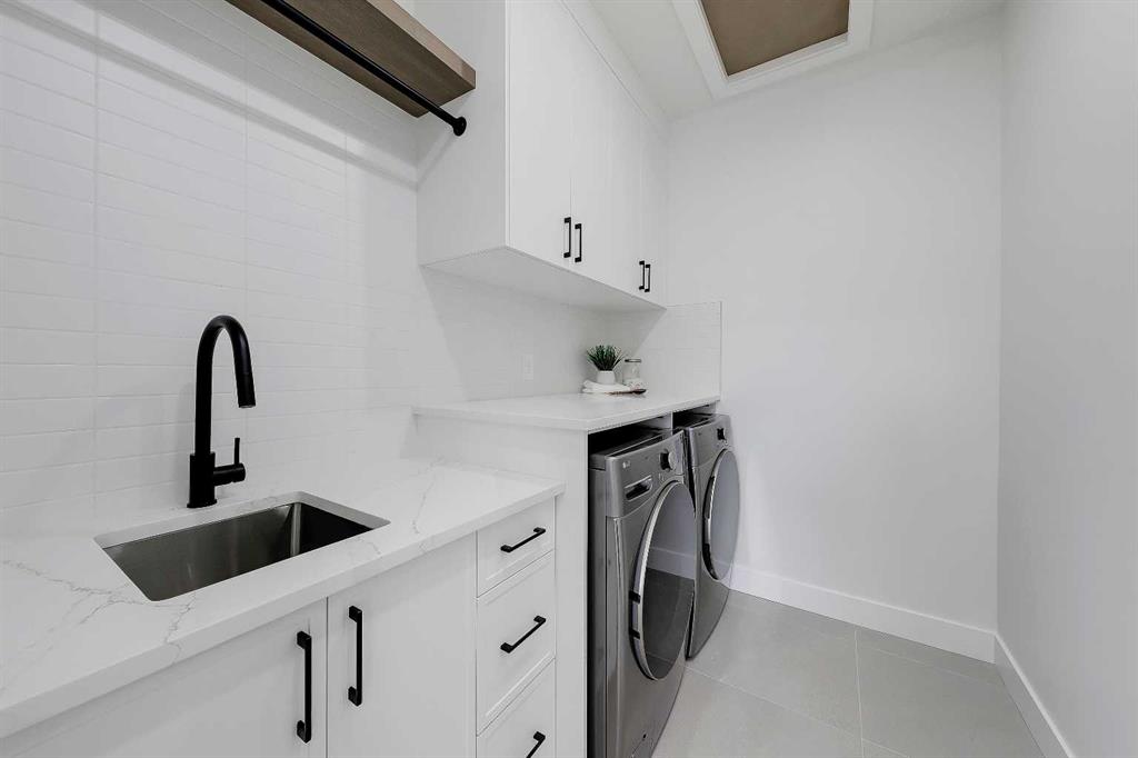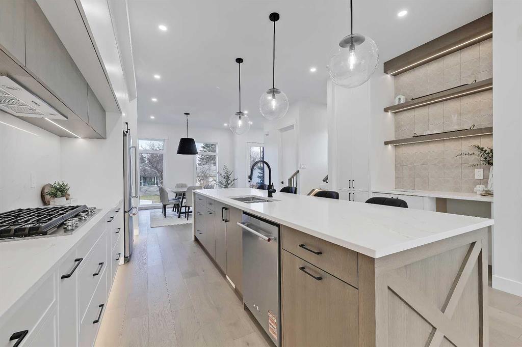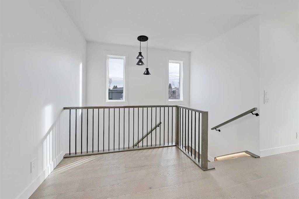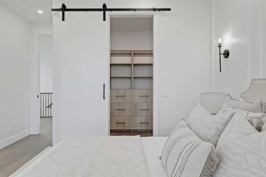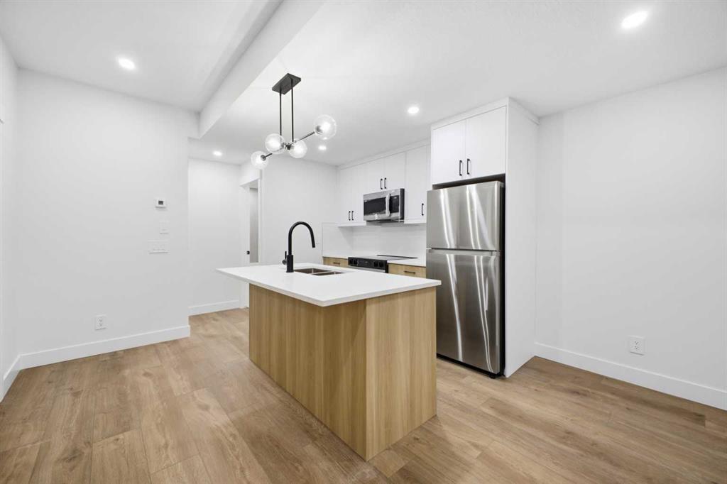 LOCATION LOCATION! Built on a quiet street only steps to West Confederation Park, this BRAND-NEW semi-detached infill in Banff Trail offers a superb floorplan with a LEGAL BASEMENT SUITE (Approved with the permit & subject to final inspection by the city). Banff Trail is well-situated in inner-city NW, with lots of outdoor recreation, schools, & shopping nearby. Confederation Park & the Charleswood Tennis Courts & Splash Park are a quick walk down the street, the City of Calgary toboggan hill is only 6-mins away, and the Confederation Park Golf Course is only 10-min down the road; a quick 9 holes after dinner can be a weeknight reality! Banff Trail School is mins away & Calgary Montessori School, Branton School, Rosemont School, and St Francis High School are all close by, with SAIT & UofC a short bike ride away. Dining options, shopping, amenities, and more are all at your fingertips, with Banff Trail, North Hill Centre, and all the businesses along Crowchild easily accessible from this inner-city location. With an amazing layout & premium finishes, you’ll discover a beautiful blend of both a stylish & functional lifestyle. This home features several upgrades, including engineered hardwood & 10-ft ceilings on the main level, soaring ceilings on the upper floor & a fully-developed basement w/ a LEGAL SUITE. The main floor boasts large primary living spaces, including a bright front dining/flex room, a large central kitchen with an oversized island w/ bar seating, ceiling-height custom cabinetry, and built-in pantry & coffee station. The large rear living room is finished w/ an inset gas fireplace w/ modern full-height surround, built-in millwork, and large windows overlooking the SOUTH back patio – perfect for family gatherings! A rear mudroom hosts a bench with hooks, with direct access to the double detached garage out back and an elegant, private powder room. Upstairs, you'll find the two secondary bedrooms w/ built-in closets, a spacious laundry room and a main 4-pc bath w/ modern vanity and a tub/shower combo w/ full-height tile surround. The primary suite features a soaring vaulted ceiling, multiple tall windows for tons of natural light, and a large walk-in closet w/ built-in storage. The 5-pc ensuite shows off with heated tile floors, glass shower w/ full-height tile, a free-standing tub, a modern vanity, dual under-mount sinks, and a separate water closet. The fully-developed LEGAL BASEMENT SUITE (approved in the development permit by the city) enjoys private access through a secure side entrance, two generous-sized bedrooms w/ built-in closets, a spacious and contemporary 4-pc bath w/ modern tile & vanity, large windows, space for a washer & dryer, plus a large living room area! The kitchen is thoughtfully arranged with quartz countertops & full-height cabinetry. Take a drive by this property and see how this house & fantastic location will suit your family perfectly! * Photos from Show Suite finishes may vary slightly*