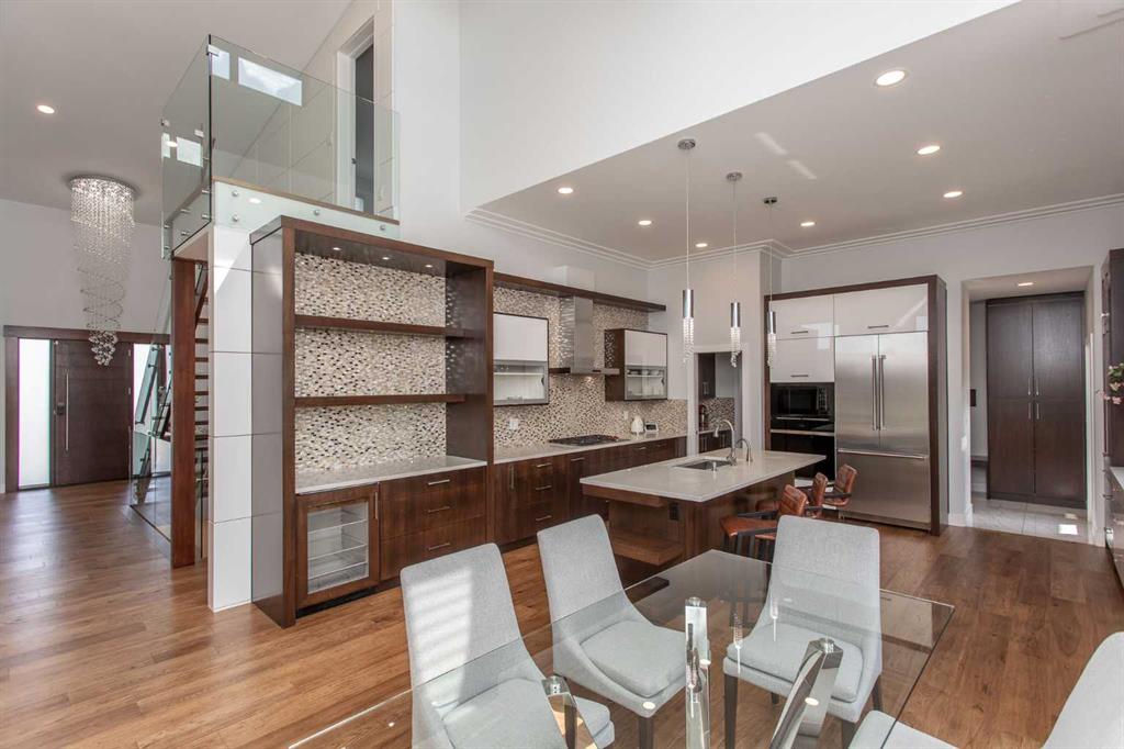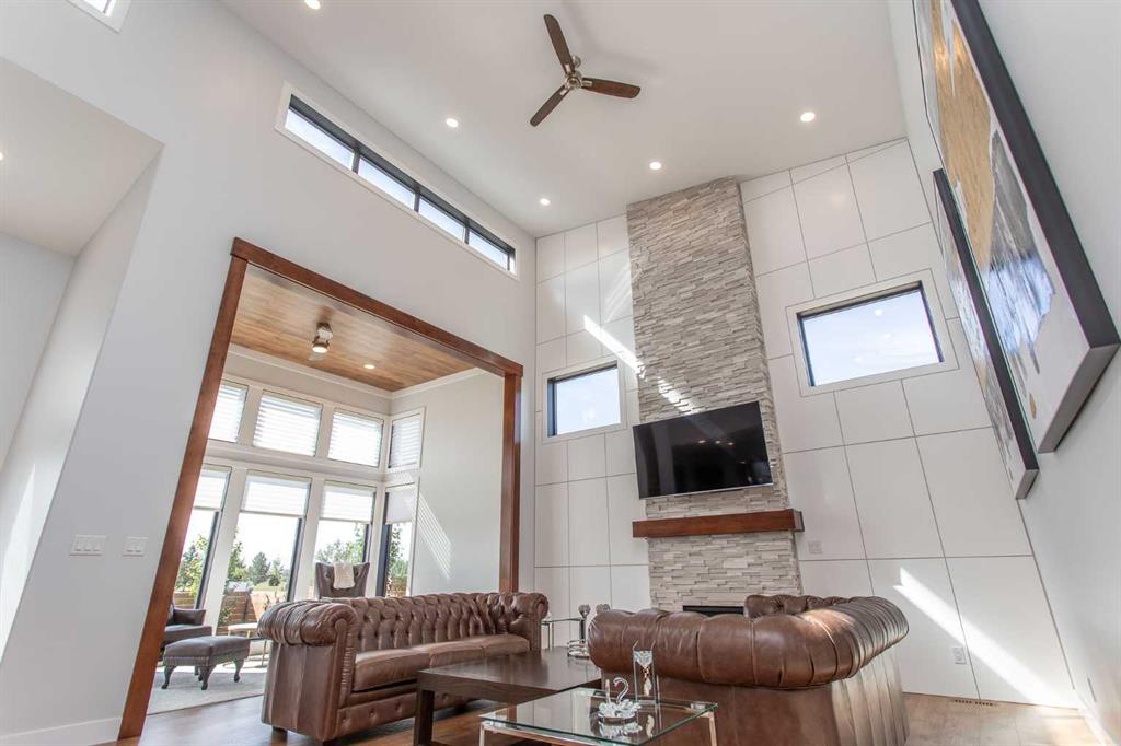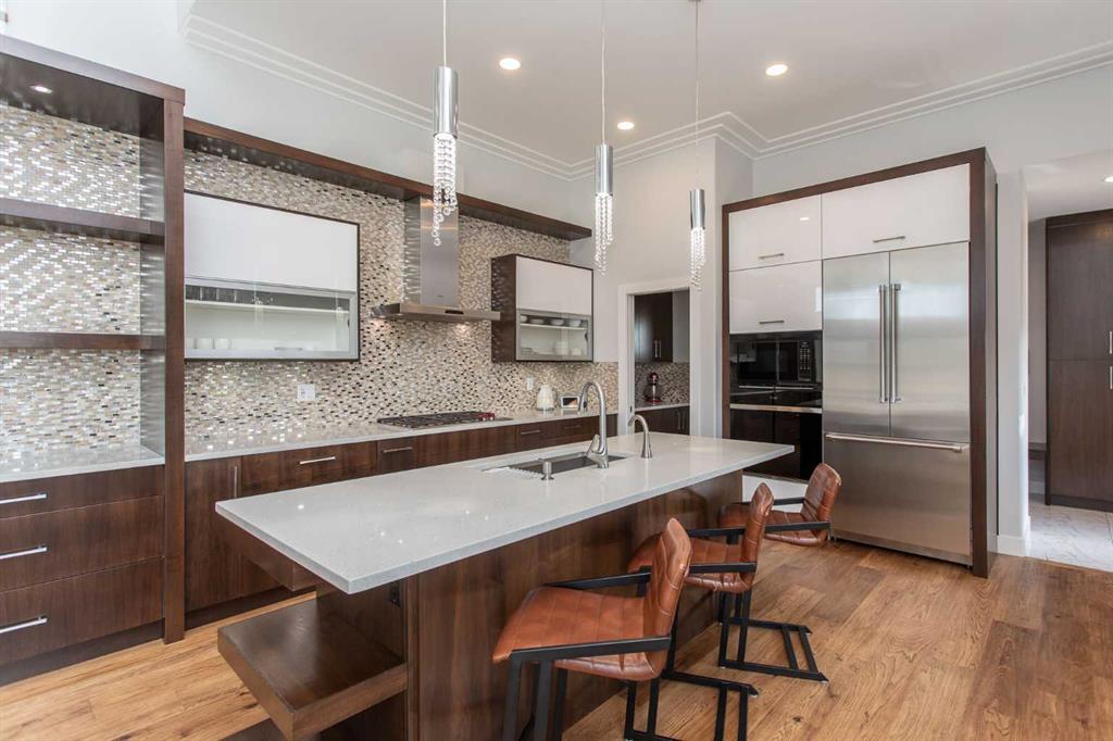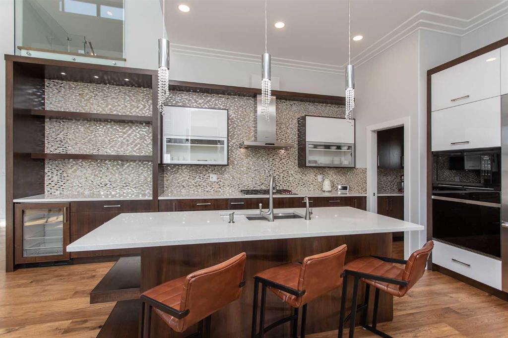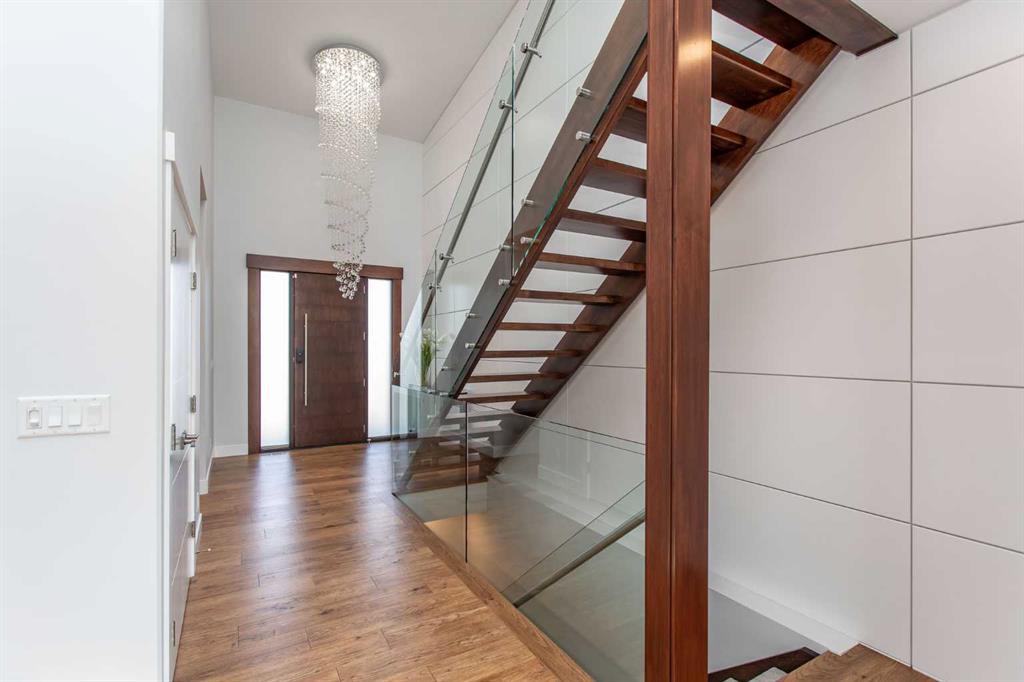 Beautiful MODERN home featuring EXTENSIVE UPGRADES AND HIGH END FINISHINGS. It boasts high ceilings and elegant tile work throughout. The sophisticated lighting design not only highlights the homes architectural beauty but also creates a warm, inviting ambiance. Each detail has been meticulously chosen to deliver the ultimate in comfort and style. Incredible curb appeal, grand entrance, stucco exterior and beautifully landscaped! Open the front door to your forever home and enjoy the modern luxury this home has to offer. An open floor plan soaring vaulted ceilings and massive triple pane (black interior) windows. Kitchen features, sub zero wine fridge, thermador dishwasher, wolf gas cook top, and oven! Expansive QUARTZ COUNTERTOPS, WALNUT CABINETRY, eat up island, reverse osmosis and soap dispenser are just a few more great features. The main floor boasts MAHAGONY HARDWOOD FLOORING, and the extended great room/sunroom features in floor heat. The living room features floor to ceiling NATURAL STONE fireplace wall with a wood mantle. There is a main floor laundry featuring a sink, cabinets and more beautiful white QUARTZ COUNTERTOPS. The main floor bedroom is currently used as an office and adjacent to the stunning 3-piece bath. The STAIRS are solid wood with OPEN RISERS and quality glass railing that lead to your PRIMARY bedroom. An oasis of its own, featuring walk-in closet with custom walnut built in cabinetry, and a 5 piece FULLY TILED ENSUITE. The ensuite has operational IN FLOOR HEAT, quartz counter tops, with dual sinks, and makeup desk, modern lighting, two shower heads, soaker tub and a water closet! The fully developed basement features OPERATIONAL IN FLOOR HEAT, 3 spacious bedrooms, one with its own walk-in closet, a large family room (34'10"x 31'3") with built in TV wall unit, and a functional wet bar with elegant herring bone back splash. There are two stunning spa like bathrooms, fully tiled with modern lighting. More great features this home offers: gas line to deck, composite front deck, glass railing, and duradeck on back deck, front FIR PILLAR, triple pane windows, mud room is tiled, walnut cabinets, wet bar/butlers pantry, custom panels, heated garage floor with floor drain, garage man door, modern overhead silent close door. Situated in the desirable and esteemed community of Timberstone, with an amazing array of shopping amenities nearby.