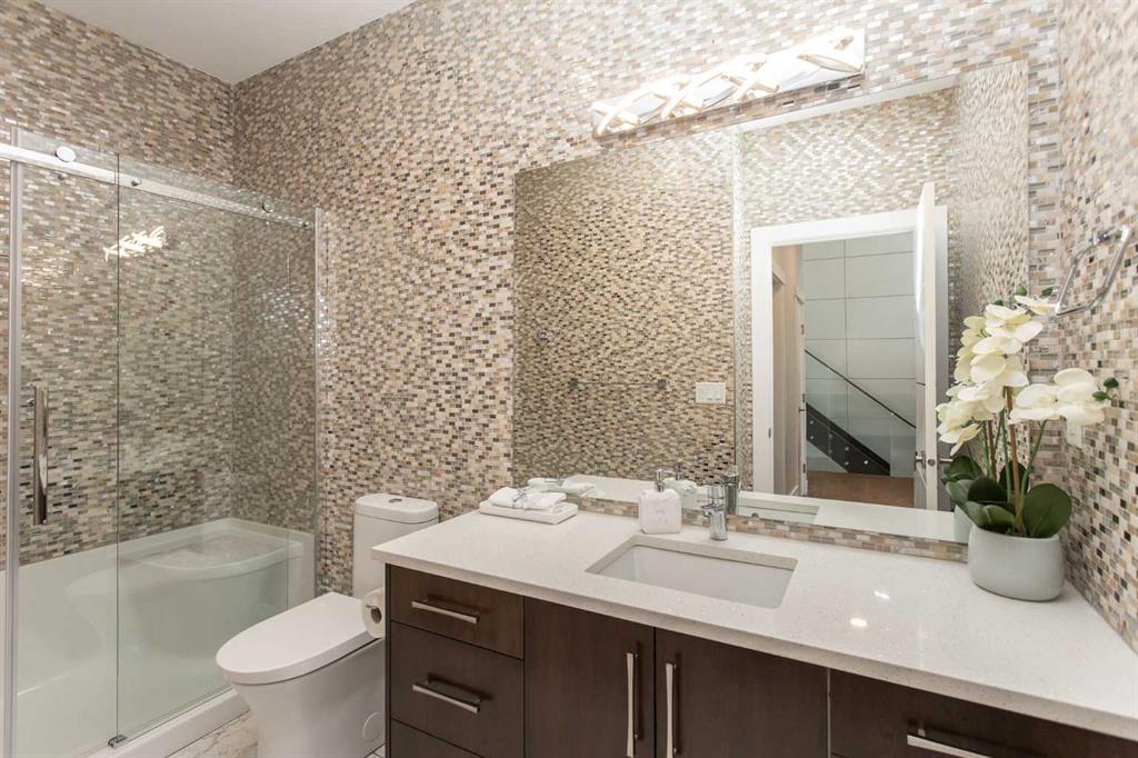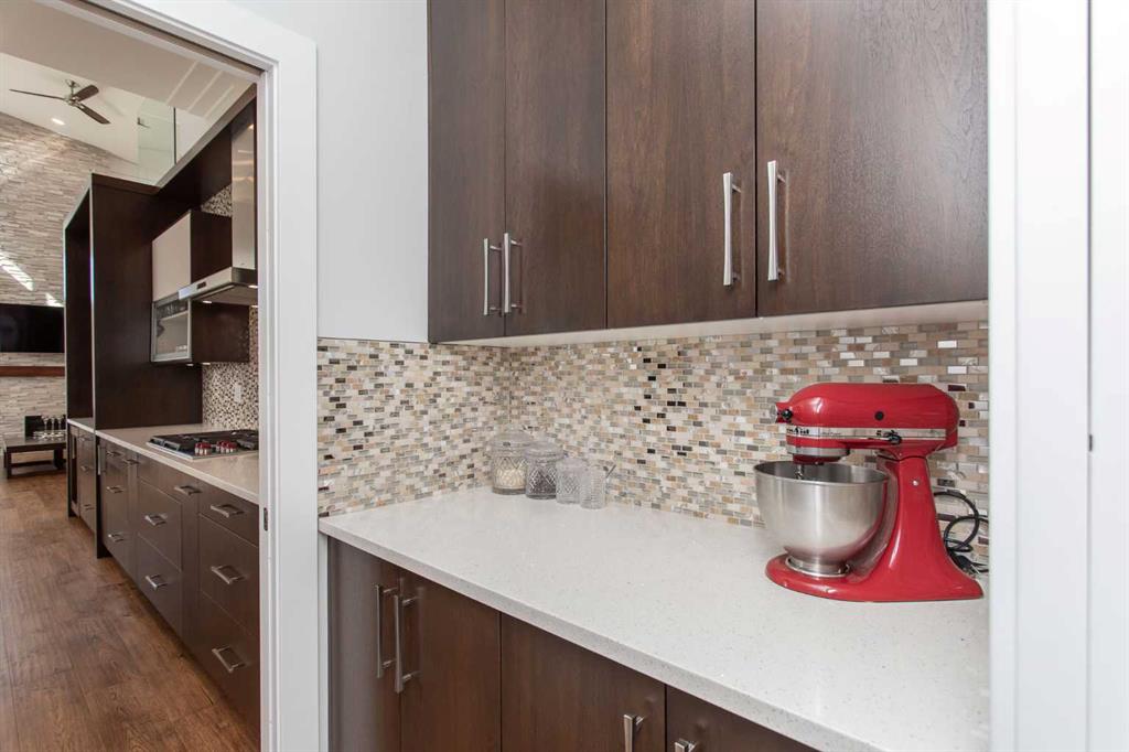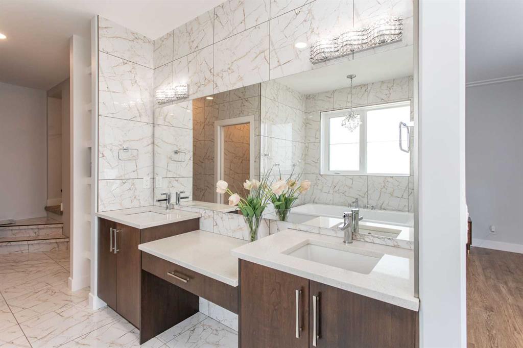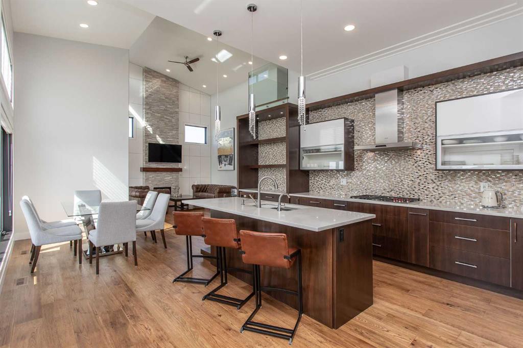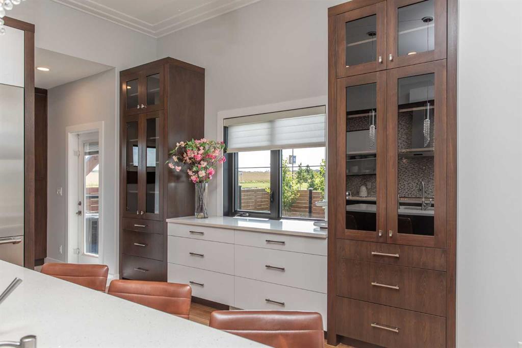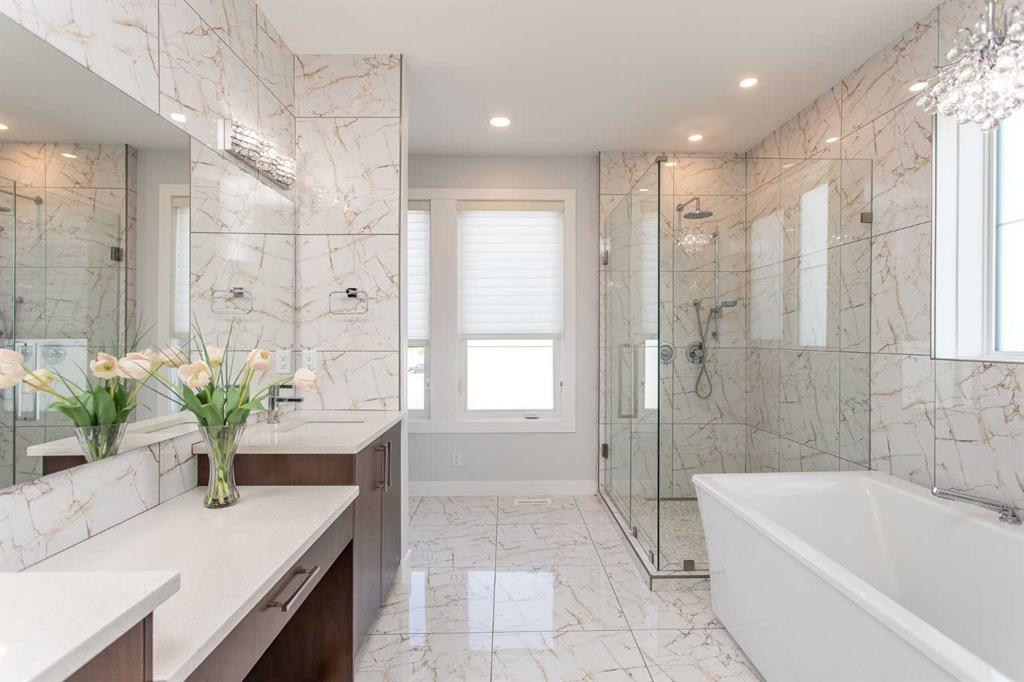 Beautiful MODERN home featuring EXTENSIVE UPGRADES AND HIGH END FINISHINGS. It boasts high ceilings and elegant tile work throughout. The sophisticated lighting design not only highlights the homes architectural beauty but also creates a warm, inviting ambiance. Each detail has been meticulously chosen to deliver the ultimate in comfort and style. Incredible curb appeal, grand entrance, stucco exterior and beautifully landscaped! Open the front door to your forever home and enjoy the modern luxury this home has to offer. An open floor plan soaring vaulted ceilings and massive triple pane (black interior) windows. Kitchen features, sub zero wine fridge, thermador dishwasher, wolf gas cook top, and oven! Expansive QUARTZ COUNTERTOPS, WALNUT CABINETRY, eat up island, reverse osmosis and soap dispenser are just a few more great features. The main floor boasts MAHAGONY HARDWOOD FLOORING, and the extended great room/sunroom features in floor heat. The living room features floor to ceiling NATURAL STONE fireplace wall with a wood mantle. There is a main floor laundry featuring a sink, cabinets and more beautiful white QUARTZ COUNTERTOPS. The main floor bedroom is currently used as an office and adjacent to the stunning 3-piece bath. The STAIRS are solid wood with OPEN RISERS and quality glass railing that lead to your PRIMARY bedroom. An oasis of its own, featuring walk-in closet with custom walnut built in cabinetry, and a 5 piece FULLY TILED ENSUITE. The ensuite has operational IN FLOOR HEAT, quartz counter tops, with dual sinks, and makeup desk, modern lighting, two shower heads, soaker tub and a water closet! The fully developed basement features OPERATIONAL IN FLOOR HEAT, 3 spacious bedrooms, one with its own walk-in closet, a large family room (34'10"x 31'3") with built in TV wall unit, and a functional wet bar with elegant herring bone back splash. There are two stunning spa like bathrooms, fully tiled with modern lighting. More great features this home offers: gas line to deck, composite front deck, glass railing, and duradeck on back deck, front FIR PILLAR, triple pane windows, mud room is tiled, walnut cabinets, wet bar/butlers pantry, custom panels, heated garage floor with floor drain, garage man door, modern overhead silent close door. Situated in the desirable and esteemed community of Timberstone, with an amazing array of shopping amenities nearby.