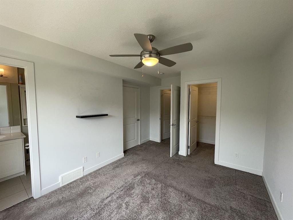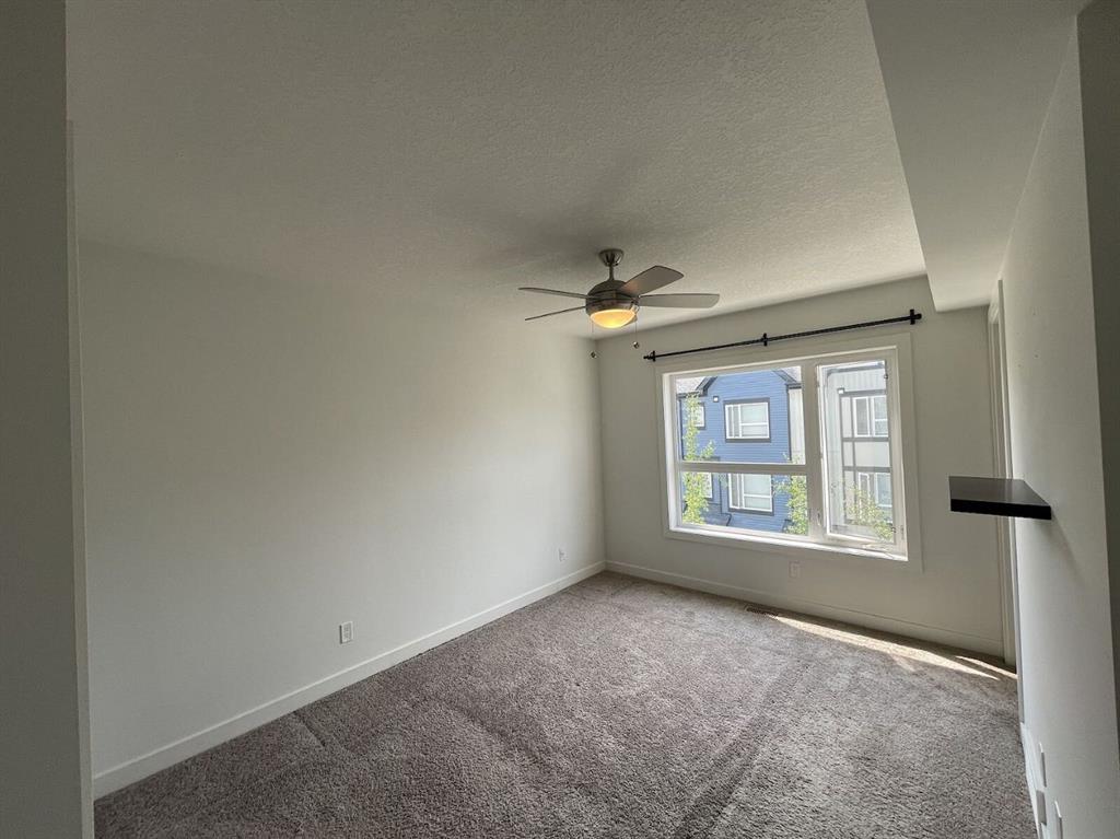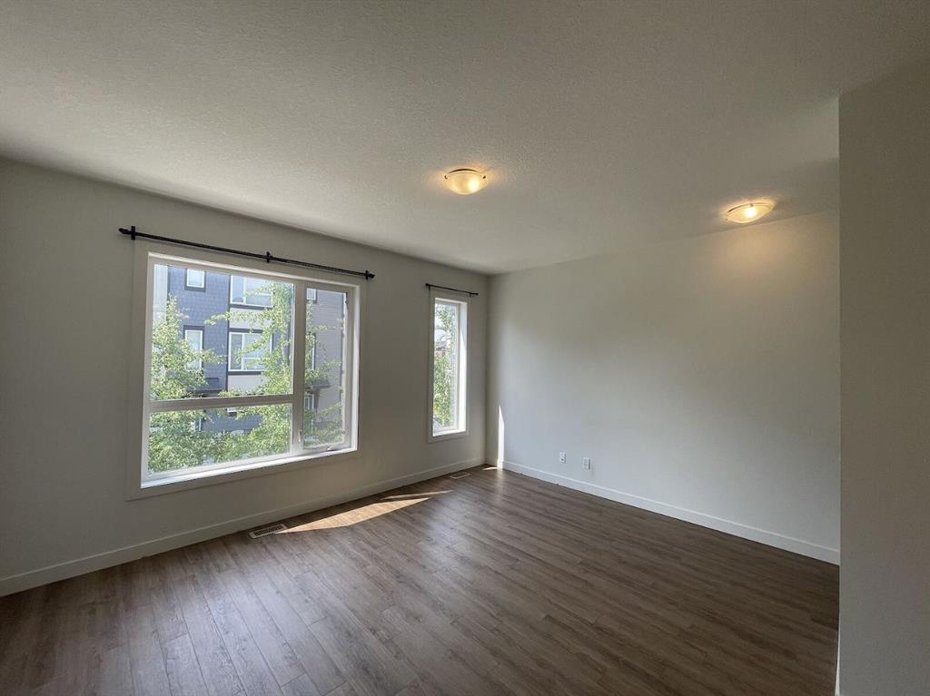 Enjoy the serene environment of your home facing a small green space. This unit has two huge master bedrooms, both with walk-in closets. There's also a bonus room on the upper level for your kids or your work. Perfect for first-time home buyers, downsizers, or investors—great rental potential! This well-maintained three-storey townhouse in the family-friendly community of Evanston offers 1,441 sq ft of developed living space. Enjoy the convenience of a large tandem double garage (38' x 10'4") and a 5’10” x 4’10” balcony. The entry level features a spacious foyer with direct access to the garage and a utility/storage area. On the main living area (2nd level), you'll love the contemporary open concept floor plan with luxury vinyl plank flooring, a neutral color scheme, and 9’ ceilings. The living room, with large windows, is perfect for relaxing with plenty of natural light. The dining area comfortably seats six, ideal for family and friends. The bright, modern kitchen boasts stainless steel appliances, tiled backsplash, quartz countertops, pantry closet, pendant lighting, and a breakfast bar. A door from the kitchen leads to a balcony with a gas line for BBQs. This level also includes a 2-piece powder room and a good-sized closet. The top level (3rd) features carpet throughout and an ideal dual primary layout with two bedrooms, two bathrooms, one ensuite and a bonus/flex room in between. The laundry closet is conveniently located in the Primary bedroom. This townhouse offers low condo fees, providing fantastic value. Evanston is a friendly community with many schools and programs, including sports, activities, an outdoor rink in winter, cleanup days, food trucks, and more. Located just off Symons Valley Parkway & Road and Beddington Blvd, with easy access to Deerfoot Trail and Stoney Trail. A quick 5-minute drive to Highway 2 leads to the majestic Rocky Mountains one-hour drive and just 10 minutes to the airport. You'll also be close to a wide range of amenities. You will love this gem of a home! This townhouse offers lots of natural light, extra storage, air conditioning, and low condo fees, providing fantastic value. Evanston is a friendly community with many schools and programs, including sports, activities, an outdoor rink in winter, cleanup days, food trucks, and more. Located just off Symons Valley Parkway & Road and Beddington Blvd, with easy access to Deerfoot Trail and Stoney Trail. A quick 5-minute drive to Highway 2 leads to the majestic Rocky Mountains (one-hour drive) and just 10 minutes to the airport. You'll also be close to a wide range of amenities. You will love this gem of a home!