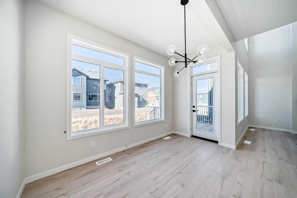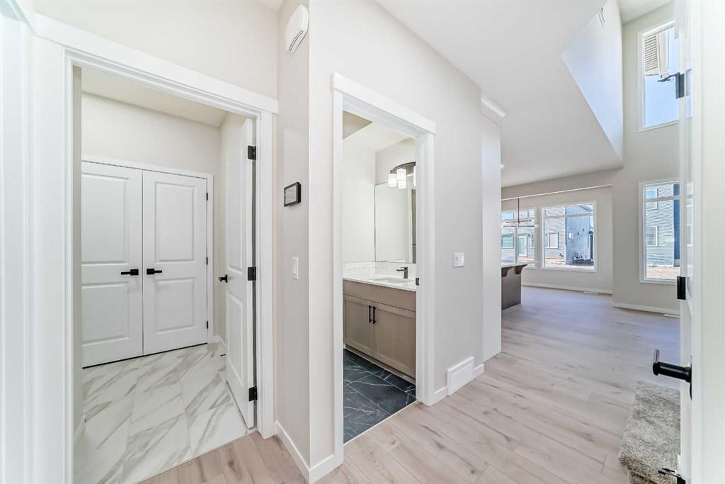 Welcome to the Webster I by Morrison Homes – a stunning 4-bedroom, 3-bath detached home offering 1,901 sq. ft. of beautifully upgraded living space in the vibrant community of Cornerstone NE. Designed for growing families, this brand-new home features vaulted ceilings, a main-floor bedroom and full bath, and a bright, open-concept layout that blends comfort and style. The chef-inspired kitchen includes quartz countertops, Kingswood cabinetry, a Blanco Precis sink, tiled backsplash, and Whirlpool stainless steel appliances (to be provided by the builder upon possession). Upstairs, enjoy a spacious primary suite with a walk-in closet and private 4-piece ensuite, along with two additional bedrooms, another full bath, and convenient upper-floor laundry. Finished with premium dark vinyl siding, side entry, gas line on the deck, and a double-attached garage, this home offers both quality and flexibility for family living. Cornerstone is known for its excellent schools, parks, playgrounds, and shopping, plus quick access to Stoney Trail and Airport Trail. Experience modern design and everyday convenience—your family’s next chapter starts here at 105 Corner Glen Green NE.