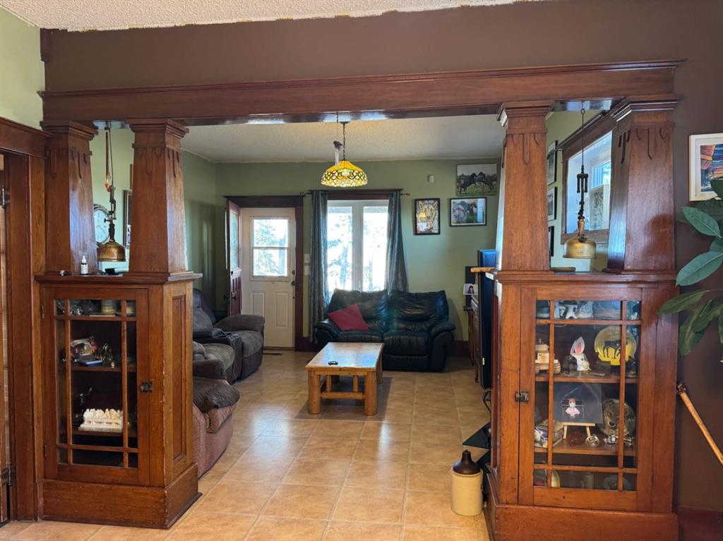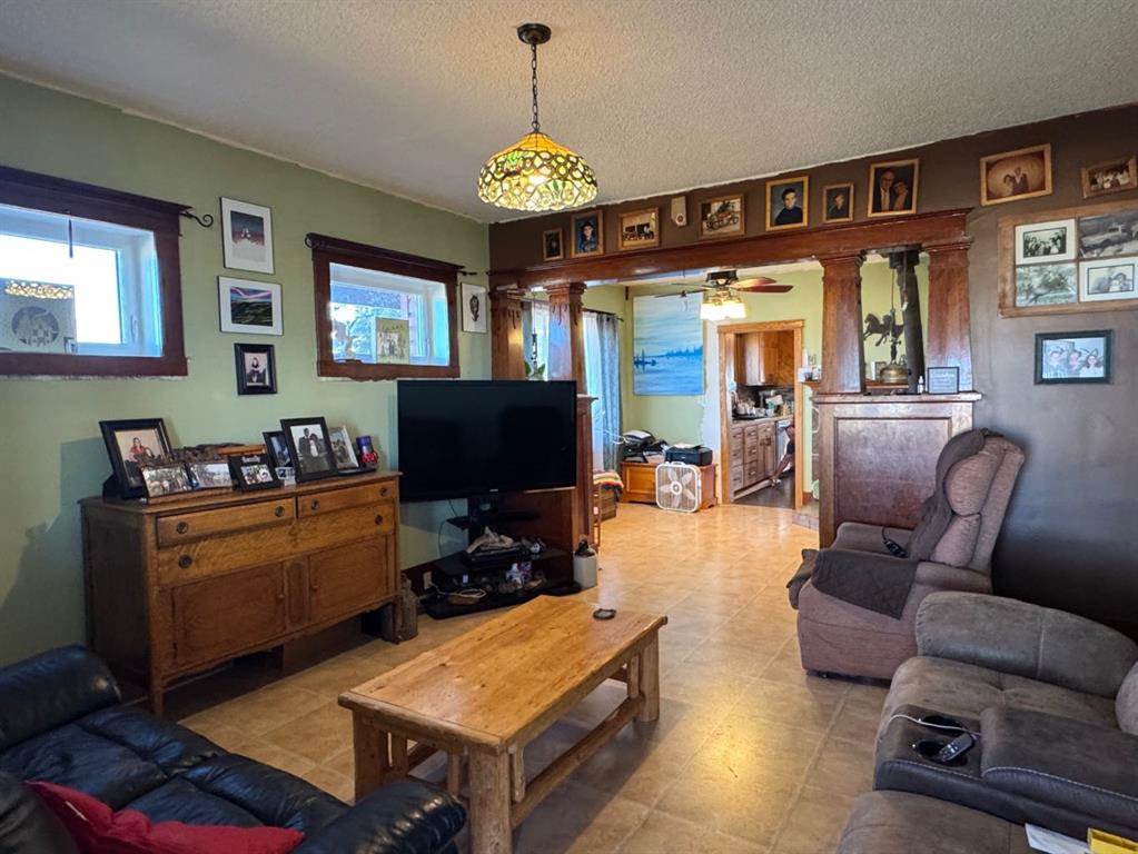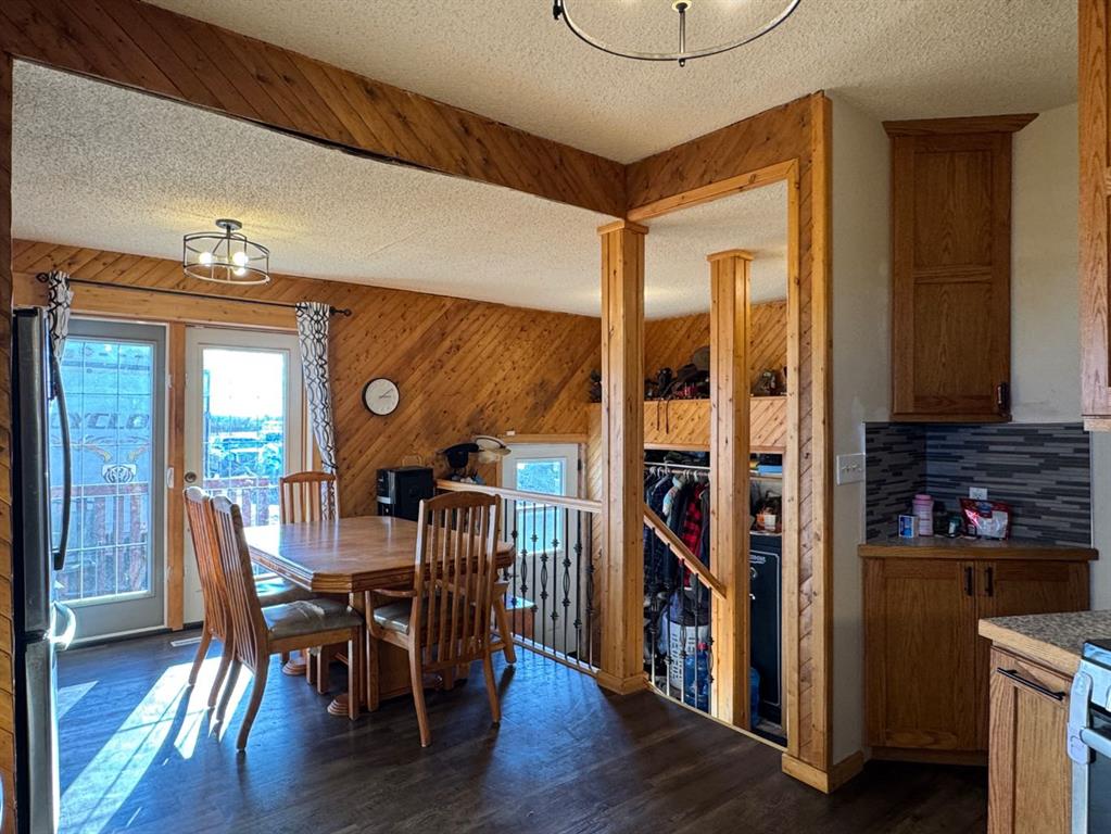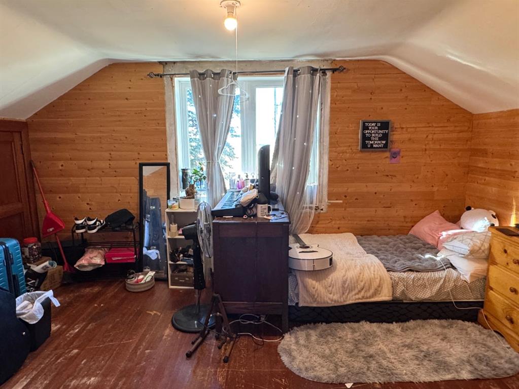 Welcome to this fully developed, character-filled home nestled on 46.48 beautiful acres with private trails leading down to the banks of the Peace River. Step inside through the back deck into a welcoming mudroom, complete with ample space for coats, boots, and outdoor gear, conveniently located next to a 3-piece bathroom. From here, make your way into the spacious renovated kitchen, showcasing newer appliances, a gas stove, and plenty of counter space for cooking and gathering. The kitchen flows seamlessly into the bright dining area and cozy living room, warmed by a charming wood stove that adds to the inviting country atmosphere. Downstairs, you’ll find a large second living area featuring a pellet stove, perfect for family movie nights or quiet evenings. The basement also offers dry storage, cold storage, a utility/furnace room, and a large laundry area—all thoughtfully laid out for functionality. The main level hosts two comfortable bedrooms and another 3-piece bathroom, while the upper level provides two additional bedrooms, each with plenty of storage and a generous closet. This home has been extensively updated for comfort and peace of mind, including new siding, plumbing, wiring, insulation, windows, doors, tin roof, and septic pump, along with a high-efficiency furnace (2024) and hot water tank (2022). The solid 14-inch poured concrete foundation ensures lasting stability. The property is connected to a shared water co-op providing 2,200 gallons of water per day, owned by you and 19 other homeowners through White Law Aqua. Outside, enjoy a 26’ x 30.5’ insulated garage with radiant heat and concrete flooring, plus an attached lean-to for additional storage. The land is already set up for horses, featuring a large barn, dugout for water, and a seasonal creek running through the property. This is more than just a home—it’s a peaceful retreat surrounded by nature, offering the best of country living with modern comfort and timeless charm.