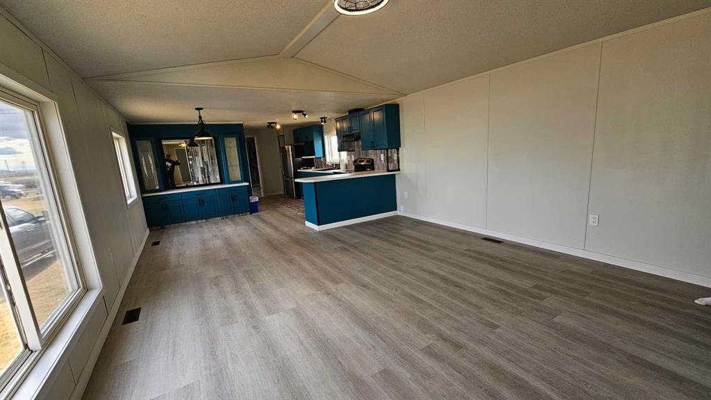Totally renovated 1994, 16x74 mobile, with three bedrooms and two bathrooms, sitting on its own(no fees) lot in Coronation has the following- new vinyl plank glue down flooring, new asphalt singled roof, new siding, some new windows, new hot water tank, new water lines, insulated and painted skirting, new eaves troughs, leveling of the home, and heat trace on the water lines below. The furnace has been fixed and is operating as normal. This home comes fully painted, with some new fixtures in the bathrooms, new gorgeous glass shower doors in the main bathroom, the 4 piece en suite all done up, painted cupboards, new range hood, , new sink and near new fridge and stove. The walls are accented with wood style paneling, giving it a very stylish look. The light fixtures throughout the home have also been upgraded to modern style ones. There is outside parking off the street with empty lots beside you. With a ton of work put into this one, there is only the thought of how long it will take you to pack you bags and enjoy the renovated home. Early possession for the approved buyer is available.