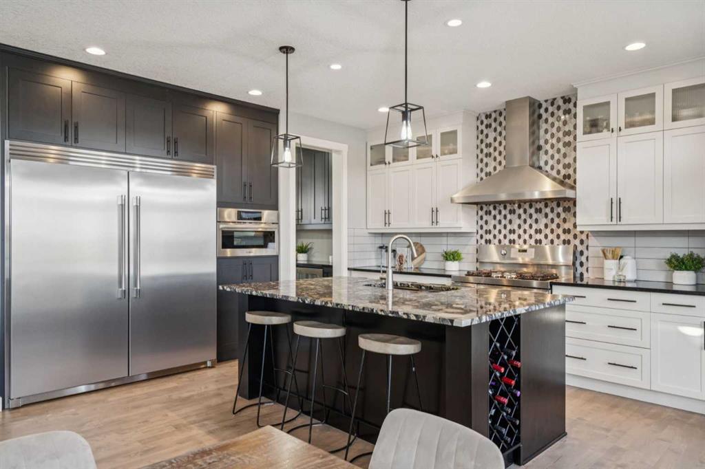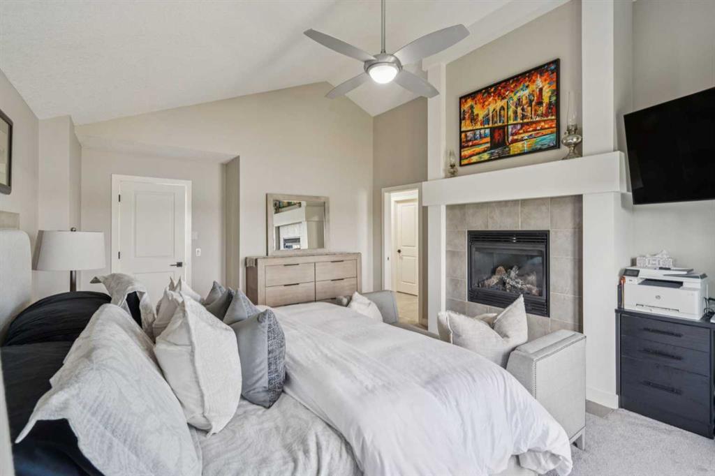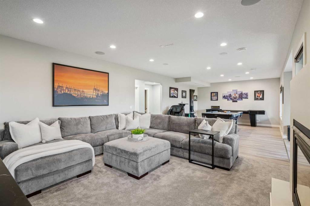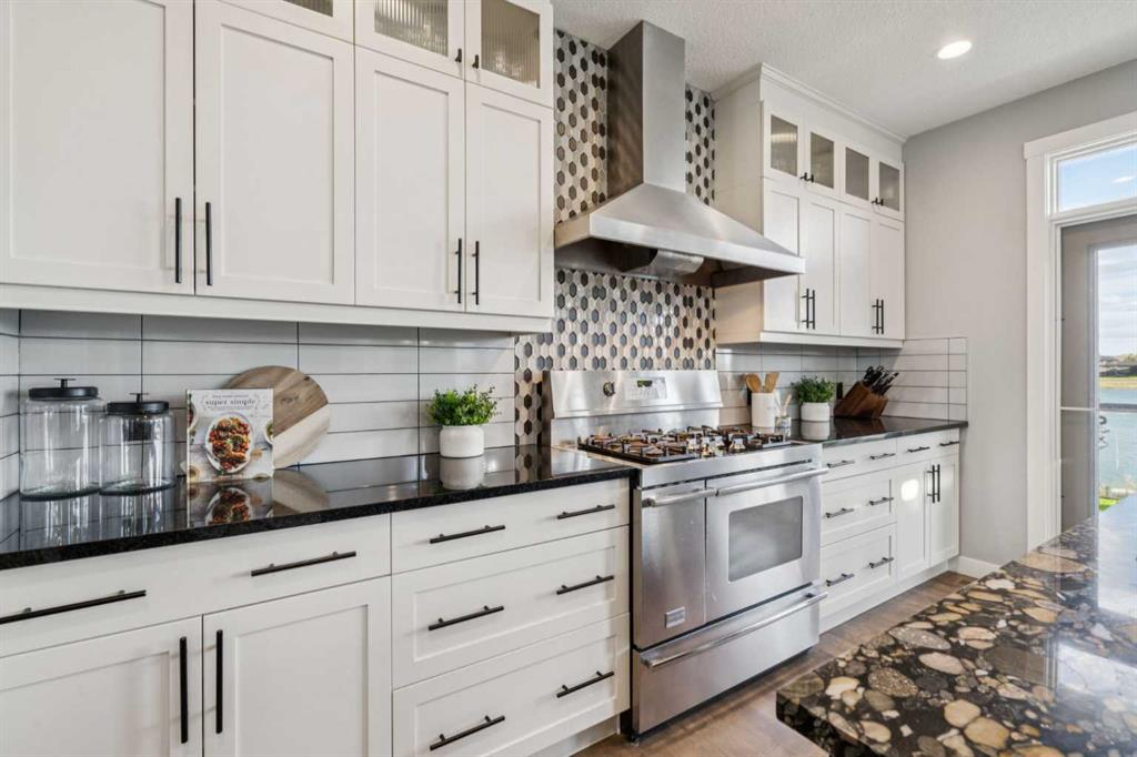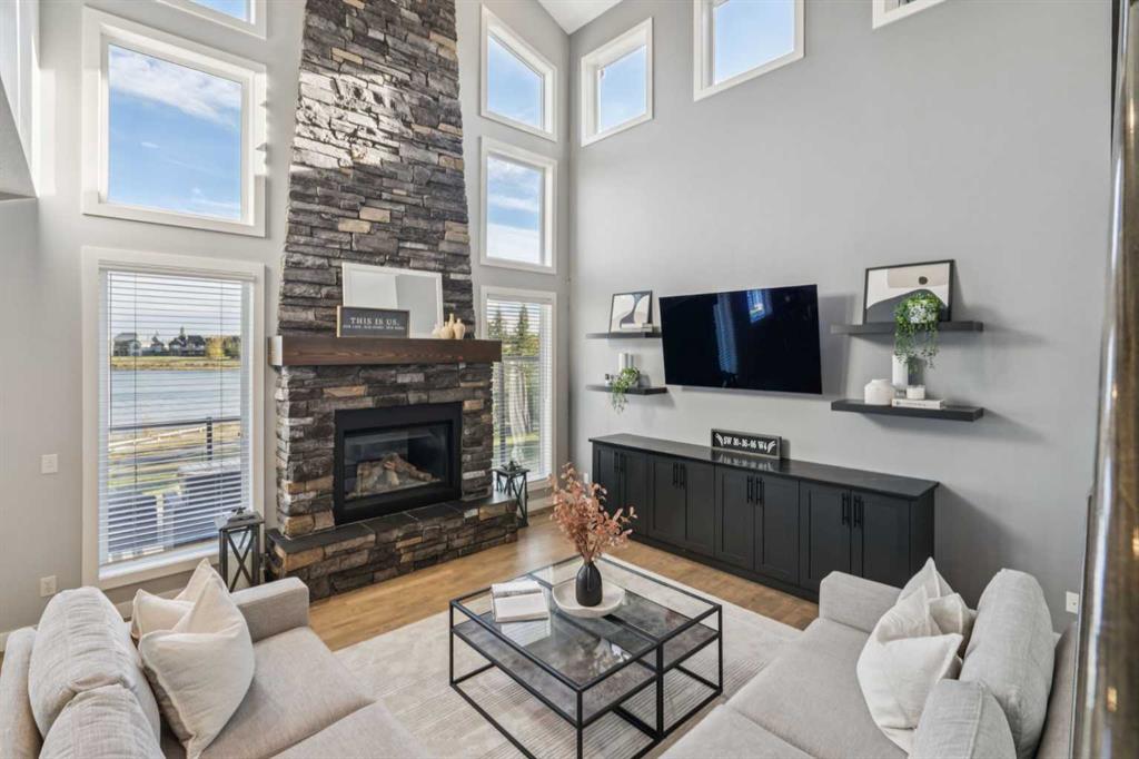 Welcome to this fully renovated LAKEFRONT GEM in the prestigious community of Monterra! Perfectly situated on a spacious PIE LOT, this property offers luxurious upgrades, stunning craftsmanship, and serene waterfront living at its finest. The exterior has been meticulously updated from top to bottom — featuring RE-LANDSCAPED FRONT and BACK YARDS with an OPEN IRRIGATION SYSTEM, PROFESSIONALLY REPAINTED COMPOSITE SIDING, refreshed trims and cedar accents, and a NEW RUBBER SLATE SHINGLE ROOF complete with UPDATED FLASHING and EAVESTROUGHS. The BACKYARD SHED has been refinished to match, while LED LIGHTING now highlights the home’s impressive curb appeal day and night. Step inside to a grand foyer with OPEN-TO-BELOW CEILINGS and elegant GREGIO NATURAL TILE FLOORS that set the tone for the rest of the home. The dining room features beautiful WAINSCOTING and NEW LIGHTING, while the gourmet kitchen shines with QUARTZ COUNTERTOPS, CUSTOM CABINETRY, new shelving, a BUTLER’S PANTRY with COFFEE BAR, and PREMIUM APPLIANCES — including a Frigidaire PROFESSIONAL SERIES FRIDGE, Bosch MICROWAVE SPEED OVEN, Frigidaire GAS STOVE, and HIGH-END WINE/BEER FRIDGE. The inviting living room centres around a FLOOR-TO-CEILING STONE GAS FIREPLACE and opens to an expansive EAST-FACING DECK with GLASS RAILING and BREATHTAKING LAKE VIEWS. Upstairs, NEW CARPETS (2023) with 10 lb UNDERLAY lead to four spacious bedrooms, each enhanced with CUSTOM CALIFORNIA CLOSETS. The primary bedroom impresses with VAULTED CEILINGS, a BUILT-IN DESK, FIREPLACE, and a spa-inspired ENSUITE showcasing QUARTZ COUNTERS, DOUBLE SINKS, a JETTED TUB, and a TILED SHOWER. The RENOVATED GUEST BATH offers QUARTZ COUNTERS, DOUBLE SINKS, and a BUILT-IN LINEN CLOSET, while the laundry room adds extra cabinetry and counters for everyday convenience. The FULLY FINISHED WALKOUT BASEMENT provides even more space to enjoy — featuring a 5th bedroom with CALIFORNIA CLOSET, UPDATED BATHROOM, GAS FIREPLACE, and NEW FLOORING throughout. The REC ROOM comes complete with a POOL TABLE and RACK (new 2024) and a CUSTOM SHUFFLEBOARD, making it the perfect spot for entertaining family and friends. Additional highlights include DUAL FURNACES, DUAL HUMIDIFIERS, BUILT-IN SPEAKERS, and a HEATED TRIPLE GARAGE with EPOXY FLOORS, NEW windows, doors, rails, and hardware. This move-in-ready lakefront retreat is a rare find that perfectly blends luxury, comfort, and style — a true Monterra masterpiece!
