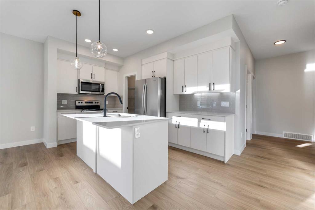 Welcome to the brand new community of Waterford! This amazing Semi-Detached Front-Drive Garage Duplex is great at a fantastic price point. This 4 Bedroom, 3 Bathroom is 2000 square feet and has a Main Floor Bedroom and Full Bathroom with a walk-in-Shower! The main level also features a chic kitchen with a large island, a Walk-through pantry, a family room with an Open to Above feature and cozy nook. The Upper floor features a nice size primary bedroom with a walk-in closet and 4 piece ensuite, laundry room plus a Large Bonus Room. The basement is ready for your development and has a Separate entrance! Possession will be December 2025. Call to book your private showing today!