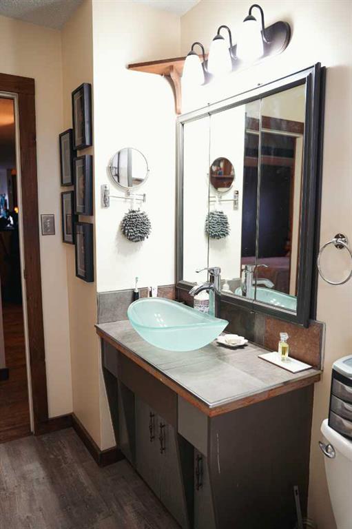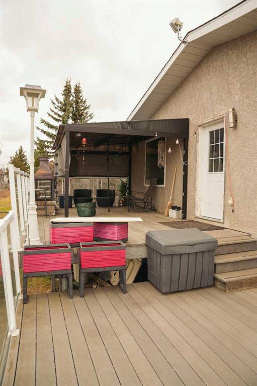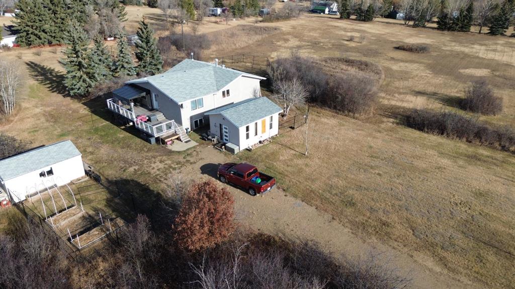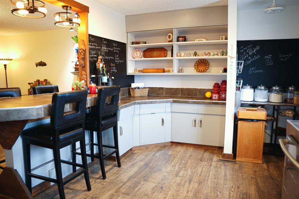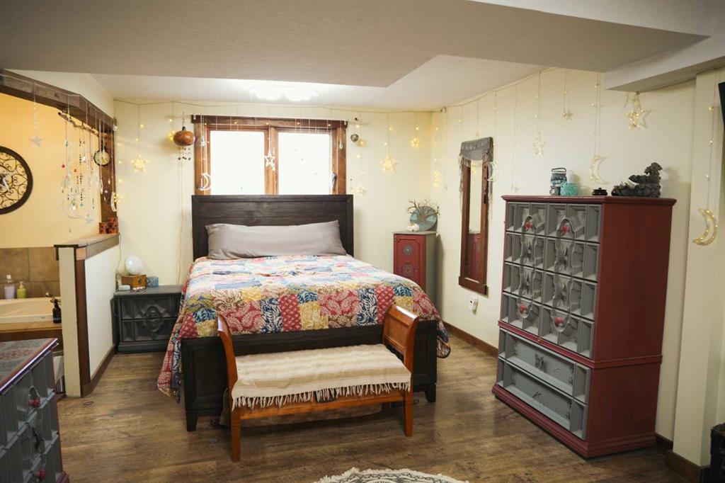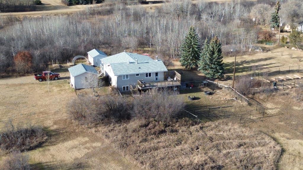 Discover the perfect blend of country tranquility and in-town convenience with this beautiful 2+3 bedroom, 3-bath home situated on over 5 acres within the Town of Hardisty limits. Enjoy stunning views of the river valley right from your own backyard. The main living area features a gorgeous wood-burning fireplace, ideal for cozy evenings, the main level also opens onto two large decks — perfect for entertaining or relaxing outdoors. The main level offers both a walk-in appliance pantry and a regular pantry, providing exceptional storage space. The basement features the primary bedroom which includes a luxurious jacuzzi tub and a large walk-in closet.Other features of the basement are a beautifully tiled walk-in shower, a spacious family room, and a cold room for storage or preserves. Outdoors, the property is a gardener’s dream, filled with fruit trees — including saskatoons, chokecherries, raspberries (wild and domestic), apples, plums, and cherries. There are numerous raised garden boxes and ample space to build a large greenhouse or shop. A beautiful detached studio offers endless potential — whether as a creative space, guest suite, or home business. This unique property combines the privacy of acreage living with the convenience of being right in town.