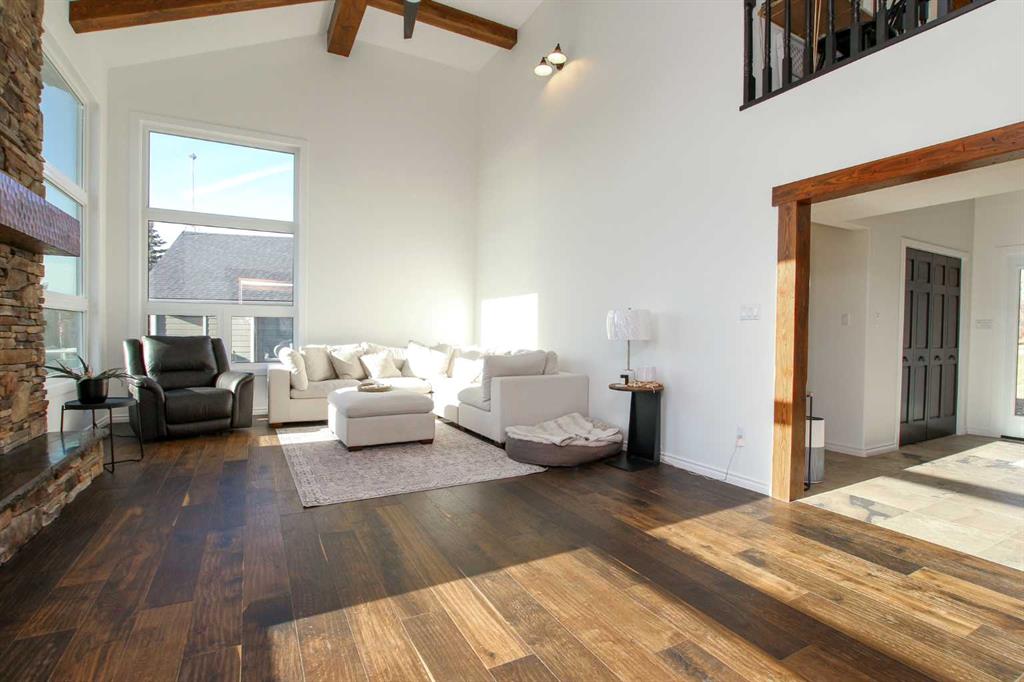FULLY DEVELOPED & RENOVATED ~ 4 BEDROOM, 4 BATHROOM TWO STOREY IN SUNBREAKER COVE ~ SOUTH WEST FACING BACKYARD WITH LAKE VIEWS FROM ALL LEVELS ~ HEATED TRIPLE GARAGE ~ STEPS TO YOUR PRIVATE DOCK ~ Just completed renovations include; All new windows and doors, LP Smartside Siding, eavestroughs, insulation, plumbing lines, pump for well, water softener, iron filtration, reverse osmosis, refinished decking, poured concrete driveway and walkway ~ Covered front entry welcomes you and leads to a welcoming foyer with vaulted ceilings, tile flooring and lake views ~ The two storey great room features a stone faced fireplace with floor to ceiling stone, and large windows that fill the space with natural light and offering amazing lake views ~ Host large gatherings with ease in the formal dining room with garden doors leading to a covered, wrap around deck ~ The breakfast room has built in seating and another set of patio doors leading to the deck ~ The stunning kitchen offers an abundance of cabinetry, stone counter tops, full tile backsplash, bay window above the sink, upgraded black stainless steel appliances, and a spacious walk in pantry ~ 2 piece bathroom located next to the mud room with access to the garage ~ Generous size main floor bedroom can easily accommodate a king size bed, and is located next to a 3 piece bathroom with a walk in shower and linen closet ~ Open staircase overlooks the foyer and leads to the upper level with an office nook that overlooks the great room ~ The bonus room features a cozy fireplace with a brick surround and raised hearth, plus garden doors leading to a south west facing balcony overlooking the backyard and lake ~ French doors lead to the private primary bedroom with plenty of space for a king size bed plus multiple pieces of furniture ~ 5 piece spa like ensuite has dual sinks with stone counter tops, a walk in shower, jetted soaker tubs and skylights ~ The huge walk in closet has custom built in organizers, a skylight and convenient stackable laundry ~ The fully finished walkout basement offers high ceilings, large above grade windows, a separate entrance and more amazing lake views ~ The family room is set up for entertaining with a large games area, media space with lighted built-in shelving and space for your TV, and a wet bar with built in cabinets, two seating areas, and garden door access to the lower patio and backyard ~ 2 bedrooms are both a generous size ~ Oversized 3 piece bathroom with a walk in shower ~ Second laundry room opens to a large storage space with a window and potential for future development ~ Massive unfinished storage space below the garage has an overhead door to the backyard and offers endless storage space ~ Triple attached garage is heated, insulated, finished with painted drywall, has a man door to the deck and backyard, and two overhead doors ~ The sunny south west facing backyard is fully fenced, sides on to a walking trail and backs onto a green space leading to the lake and private dock.