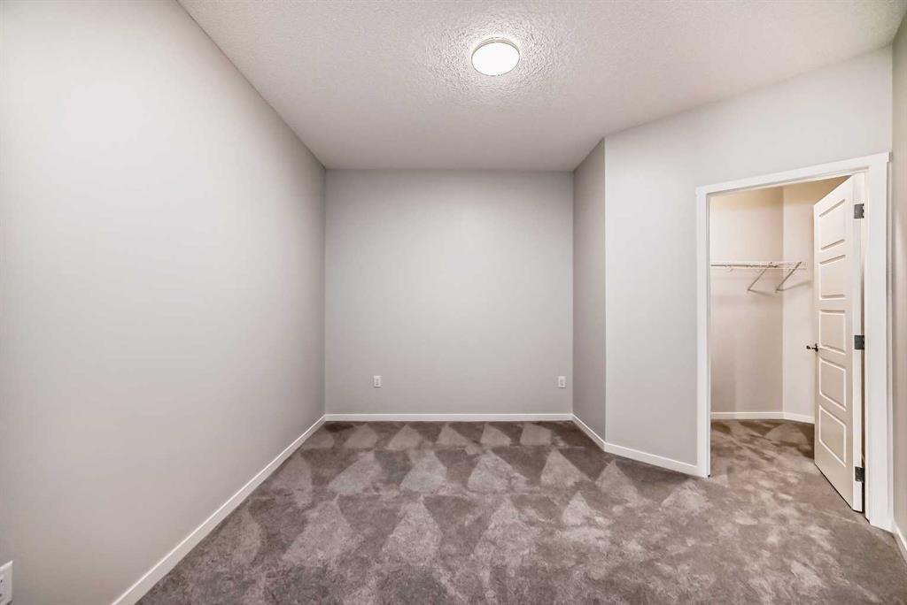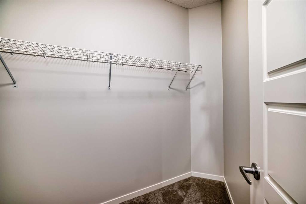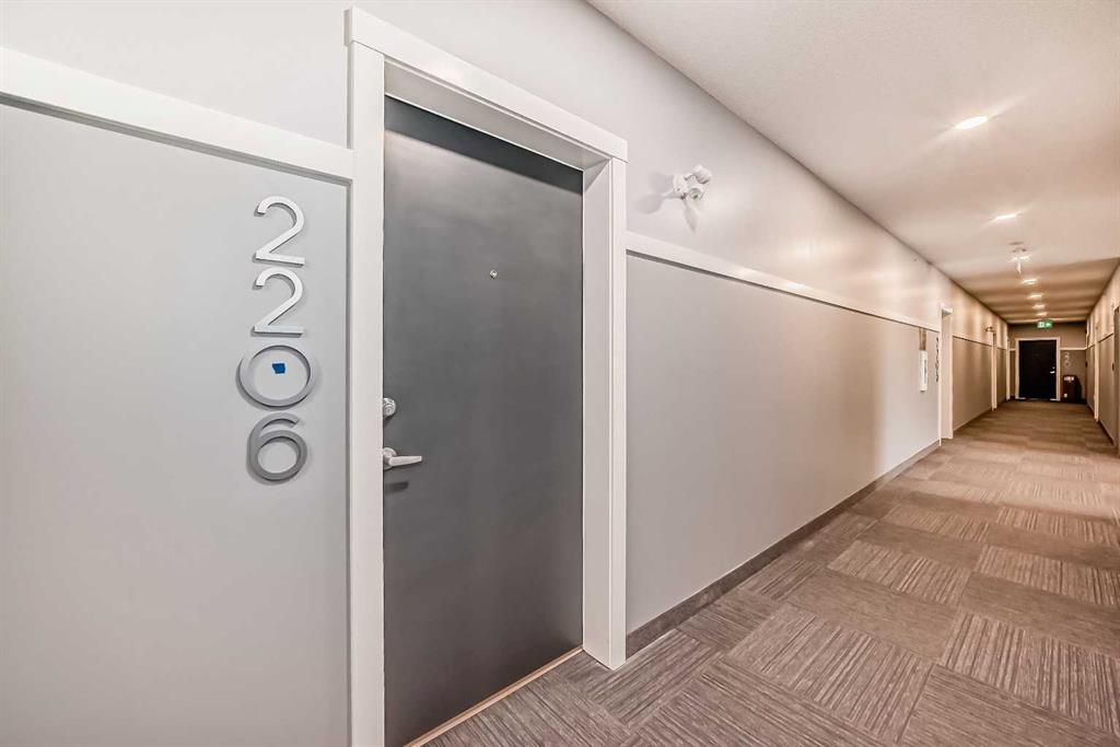 Experience modern comfort in this meticulously designed 2-bedroom, 2-bathroom condo offering 807 RMS sq.ft. (873 sq.ft. builder size) of functional living space. Located on the second floor with a south-facing balcony, this unit combines style, comfort, and convenience. The open-concept layout features 9’ ceilings and LVP flooring throughout the kitchen, living, and dining areas. The modern kitchen is equipped with quartz countertops, full-height cabinetry, a stainless steel appliance package, and a large island overlooking the living and dining space - perfect for entertaining. Enjoy energy-efficient living with Low E triple-glazed windows, electric baseboard heating, and a Fresh Air System (ERV) for enhanced indoor air quality. The private balcony includes a BBQ gas line, ideal for outdoor dining or relaxation. The spacious primary bedroom offers a 3-piece ensuite and a custom wire-shelved closet. The second bedroom, located on the opposite side of the unit for privacy, features a walk-in closet and easy access to another 4-piece bathroom. A convenient in-suite laundry and storage area completes the layout. Additional features include a titled underground parking stall, a storage locker, pet and rental-friendly policies. Situated in the NW community of Carrington, this home is directly across from NO FRILLS, McDonald’s, a daycare, medical and dental clinics, pharmacy, restaurants, fitness centre, and more. The Carrington kids/skate park, basketball court, and pathways are just one block away, with easy access to 14th Street NW and Stoney Trail for effortless commuting. This is the perfect opportunity for first-time buyers, investors, or anyone seeking a stylish, move-in-ready condo in a thriving community.