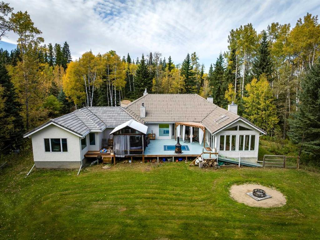 This reimagined Elk Valley home is modern mountain living done right. Set on 2 private acres in the Elk Valley of Bragg Creek, this 7-bedroom home offers approximately 6,000 square feet of total developed living space—delivering the scale, flexibility, and durability today’s buyers are actively seeking, and rarely finding. Well suited for expanding families, multi-generational living, or those requiring substantial work-from-home space, the layout is designed to allow people to live together without living on top of one another. Generous room sizes, thoughtful separation of spaces, and multiple gathering areas make this a home that adapts easily as needs evolve. An incredible home that with your own personal colour choices can easily and immediately be transformed into your own personal masterpiece. The home is built with real materials chosen for longevity, not trends. A concrete tile roof provides exceptional durability and long-term peace of mind. Solid oak flooring adds warmth and substance throughout, while the quality solid oak kitchen offers both craftsmanship and everyday practicality. The stucco exterior contributes to a quiet, energy-efficient home with minimal maintenance demands. The sunken living room is anchored by a wood stove, creating a warm and inviting space for daily living or quiet evenings. Off the dining area, a wood-burning fireplace adds atmosphere and connection, reinforcing the home’s natural materials and sense of place. A standout feature is the sunken indoor hot tub room, complete with a shower, direct deck access, and floor-to-ceiling windows that bring the outdoors in, an ideal space for year-round relaxation and recovery. Recent upgrades include new furnaces and new hot water systems, improving efficiency, reliability, and peace of mind for future owners. A brand-new ensuite adds modern comfort, while a new addition with triple-pane windows enhances energy efficiency, natural light, and year-round livability. Multiple decks extend the living space outdoors, offering room for entertaining, quiet mornings, or taking in the surrounding landscape. The quad attached garage provides ample room for vehicles, storage, or a workshop, making it well suited for those with hobbies, equipment, or project space requirements. The property is located on a quiet street, contributing to the overall sense of privacy and calm. Backing directly onto trail systems leading into Kananaskis, the home offers immediate access to outdoor recreation while maintaining everyday convenience. This is a location that supports an active lifestyle without compromising privacy. Offered well below replacement cost, this property represents a compelling opportunity for buyers who understand the rising cost of land, materials, and quality construction. 4o mins to downtown Calgary and an hour to the international airport. A rare combination of size, substance, setting, and long-term value in Bragg Creek. Move in ready!