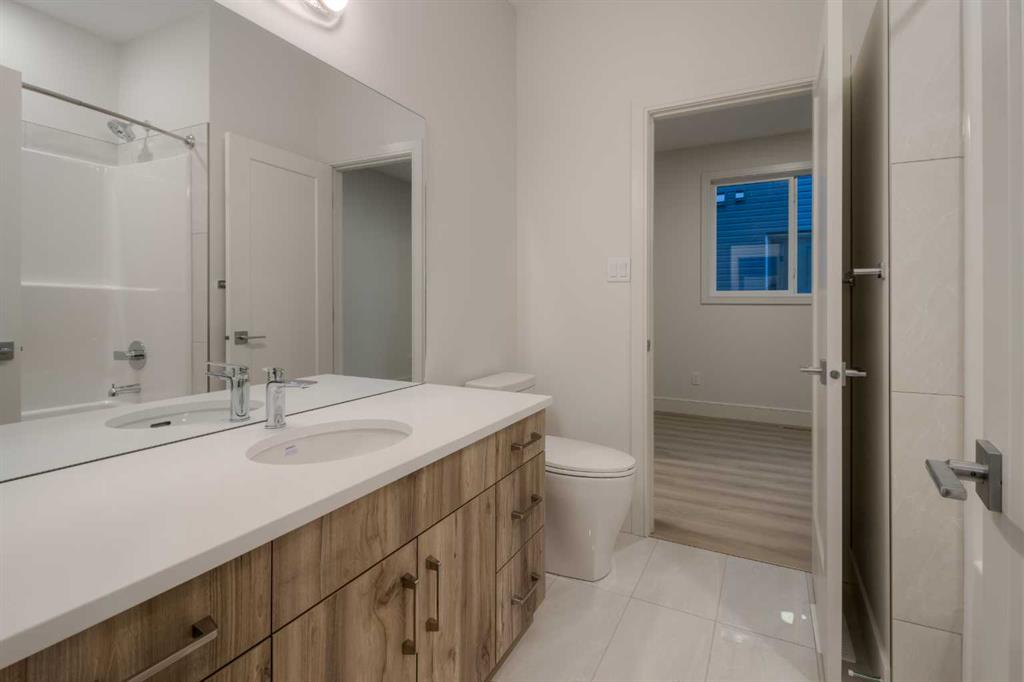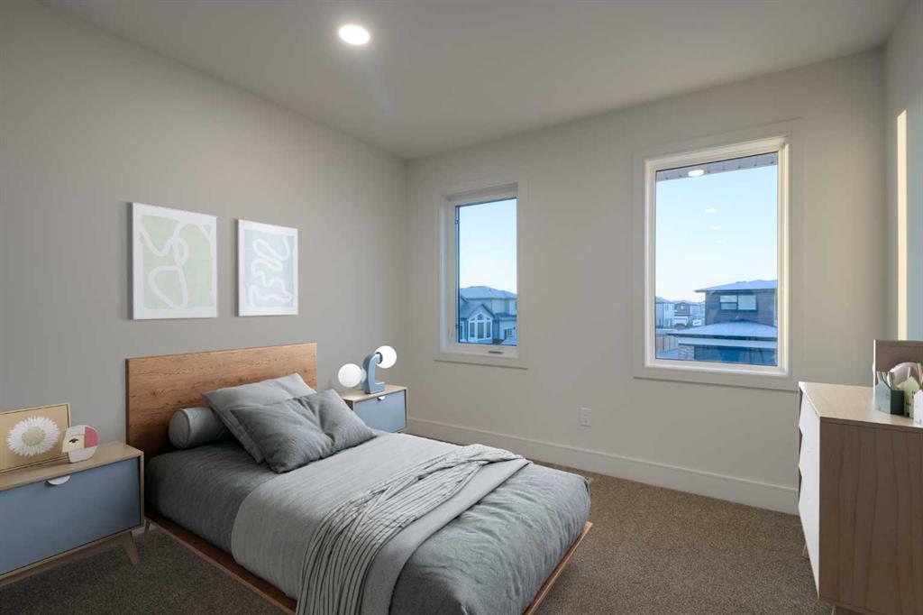 Welcome to the Juniper by Stranville Living Master Builder, a unique two-storey model located in the vibrant West Lethbridge community of Copperwood. IYKYK - this community has been the hub of the westside since 2006 and it's multiple parks, walking paths, and ponds provide the scenery and recreational opportunities not found in every neighborhood. Access to the Cavendish Farms Centre and the many restaurants and shopping is a quick trip across Whoop Up Drive, not to mention the Lethbridge LDS Temple, which is currently under construction in the same area. At just over 1,800 square feet of developed area, this 4-bedroom home is as versatile as it is beautiful, both inside and out. The main floor includes a beautifully appointed kitchen by Adora Cabinets, fully tiled backsplash, and quartz countertops for both the base cabinets and island with extended bar. Stranville Living's top tier appliance package includes a seamlessly integrated paneled Fisher & Paykel fridge, paneled dishwasher, induction cooktop, built-in hood fan, and a stainless steel wall oven and microwave combo unit. A sleek electric fireplace accents the main floor living room with a wall mounted mantle that is crisp and clean. A large sliding glass door exits onto the future deck and sits adjacent to a massive rear rake style window with park views for days. The unique element of this main floor is a flex room that can be either an office for those needing to work at home or an auxiliary bedroom with direct access to a full 4-piece bathroom, which sets up perfectly for someone with mobility issues, like an aging close relative. Upstairs, you'll find the large primary bedroom and ensuite with double vanity sinks and a lovely tiled shower. Two more bedrooms, another 4-piece bathroom, a bonus room, and laundry room complete this upper level. The oversized garage is 25' wide, sitting on a lot that is 42' wide, making this one of the largest parcels on the block. Don't forget about the high efficient mechanical equipment, Low E windows, and spray foam in the rim joists that help keep your heating and cooling costs in check. Photos may contain virtual staging.