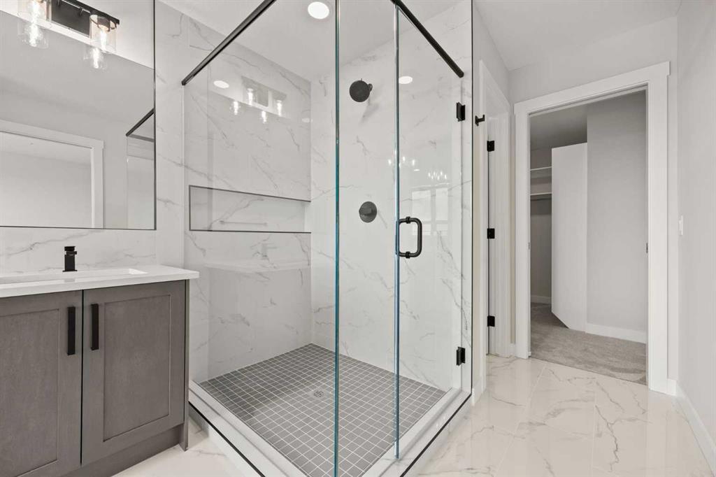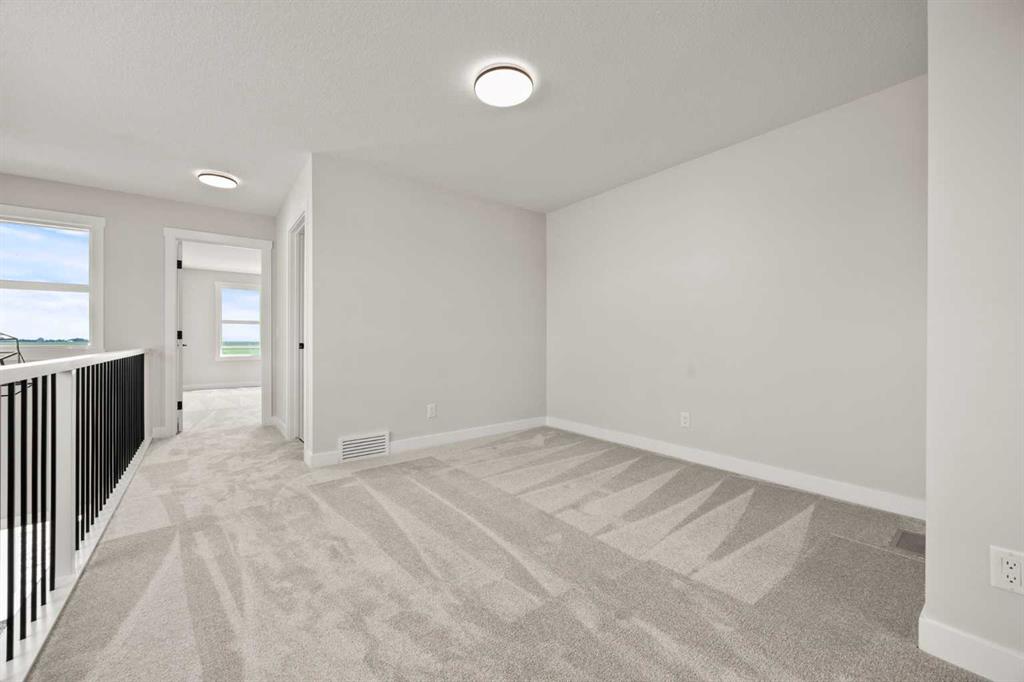 Welcome to 494 Kinniburgh Loop – A 4-Bedroom, 3-Bathroom Home by Golden Homes in Kinniburgh South! Built by 5-star builder Golden Homes, this brand new 2085 SQFT home offers the perfect combination of thoughtful design, functional layout, and premium upgrades, all in one of Chestermere’s most desirable communities. From the moment you step inside, you’re greeted by a luxury open-to-below entrance featuring a custom shiplap coat hook and built-in bench, making a stylish and practical first impression. The main floor features 9' ceilings with 8' doors throughout, a full bedroom with an adjoining full bathroom, and a walkthrough mudroom and pantry that connects seamlessly to the open living space. The heart of the home is the kitchen, with painted cabinets to the ceiling, quartz countertops, a large island with breakfast bar seating, and stainless steel appliances. Oversized triple-pane windows fill the dining and living rooms with natural light, while the open layout makes this the perfect home for family gatherings or entertaining. Upstairs, the primary bedroom is a true retreat, complete with a 5-piece ensuite featuring a freestanding tub, double vanity, a large fully tiled shower with glass doors, and a private enclosed toilet. The ensuite connects to a spacious walk-in closet with built-in shelving and organizers, which further connects directly to the laundry room for everyday convenience. Two additional bedrooms upstairs share a well-designed Jack & Jill bathroom with dual sinks, while a large bonus room provides extra living space for a home office, media area, or playroom. As with every Golden Homes build, this property includes the signature Golden Standard features, such as true 9’ ceilings on the main floor and basement, 8’ doors on the main, triple-pane oversized windows, upgraded MDF shelving, quartz counters throughout, full-height kitchen cabinets, tankless hot water heater, HRV system, gas line to the deck, solar panel rough-in, enclosed mechanical room, upgraded carpet underlay, smart home features, and premium landscaping with sod and tree in the front yard. With its modern finishes, functional layout, and unbeatable Golden Homes quality, 494 Kinniburgh Loop is a move-in ready home designed for today’s family lifestyle.