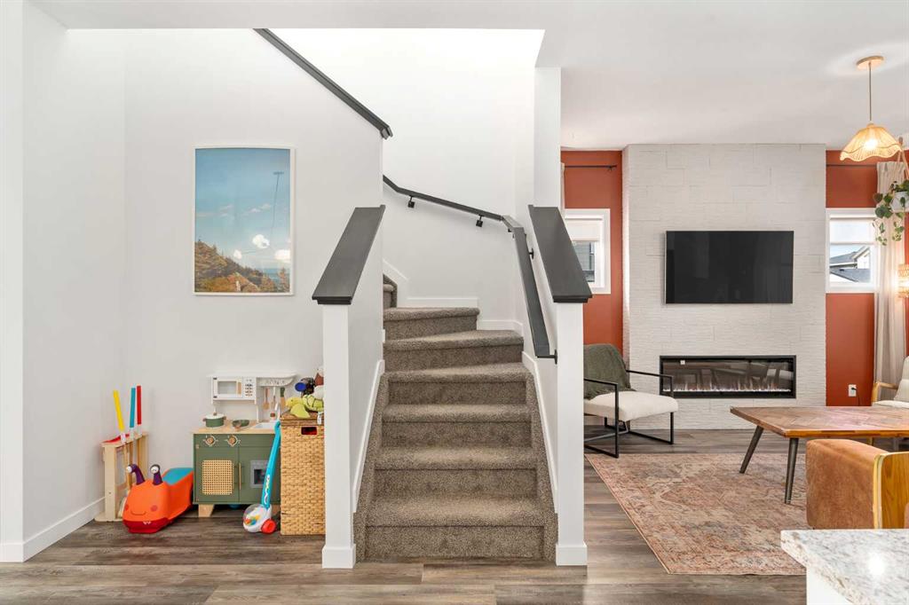 You'll be impressed by this beautifully designed two-story home, which features a REAR - ATTACHED GARAGE and welcoming Front porch, perfect for relaxing while watching the kids at play in the PARK Right Across the Street!!! The craftmanship is evident and speaks to the QUALITY of a MCKEE Built HOME. This HOME is ideal for those running a Home-Based Business, as it includes a dedicated office space just off the Foyer. The Kitchen is a CHEFS dream, equipped with high quality stainless steel appliances, GAS STOVE, Elegant Quartz countertops, and ample space to gather with friends and Family. This main floor boasts several impressive features, including a laundry room, and a spacious great room that is highlighted by an electric FIREPLACE and an eye catching FULL BRICK WALL. These elements combine to create a warm and INVITING atmosphere, perfect for both relaxation and entertainment. Additionally, there is a thoughtfully planned SEPARATE ENTRANCE on the Side of the home , allowing for the easy development of the Basement!! Upstairs, you will find a Luxurious Primary Suite featuring a spacious ensuite bathroom with dual sinks, a separate shower, and a relaxing soaker tub. This home includes 2 additional bedrooms along with a Bonus Room making it perfect for families. The yard is FULLY FENCED, providing a safe and secure environment for children and pets to play. Deck is spacious enough for your BBQ and outdoor furniture, landscaping has been completed for you as well as a NEWLY installed Air Conditioning System for your comfort. Make this stunning residence in "Coopers Crossing" your next home! P.S. Brand New UPDATED RPR!