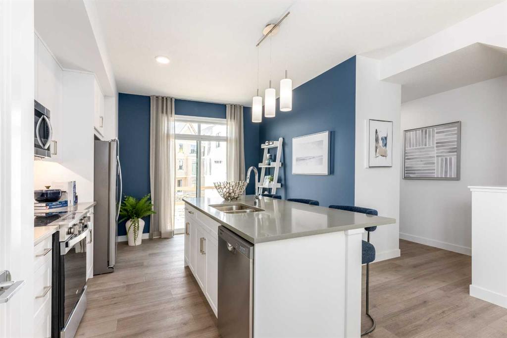 THIS IS WHAT HAPPENS WHEN SOMEONE WITH TASTE BUILDS A TOWNHOME. 309, 437 Alpine Avenue SW is proof that design can feel intentional without feeling forced. Every choice—from the MATTE BLACK HARDWARE to the calm flooring tones—lands exactly where it should. The result is a home that feels composed, confident, and quietly refined. The PRIVATE WEST-FACING ENTRY feels residential in the best way—no shared corridors or echoing stairwells—just your own address and an intentional sense of arrival. Inside, the palette stays grounded: warm Toasted-Almond LVP floors, QUARTZ COUNTERS that actually reflect daylight instead of glare, and BLACK FIXTURES that give definition without shouting. The main floor flows the way life actually happens—work and breakfast colliding on one KITCHEN ISLAND, coffee drifting onto the EAST-FACING BALCONY, dinner stretching past sunset because the space simply works. Upstairs, THREE BEDROOMS pull off that elusive balance of practical and personal. The master keeps its composure with a clean ensuite and a closet that doesn’t need to apologize. The other two are flexible—guest-ready, office-worthy, or both—and the laundry is mercifully where you live, not where you forget. Downstairs, the TANDEM DOUBLE GARAGE doesn’t just park cars; it swallows gear, bikes, and the freezer full of “backup meals.” It’s the kind of everyday functionality that rarely gets design credit—but deserves it here. And beyond the front door: Alpine Park. A southwest community built around connection, walkability, and a sense of design that actually matters. Sidewalks lead to cafés instead of cul-de-sacs, and parks show up right where your day needs a reset. Possession is set for November 2025. Bring your sense of taste—everything else already fits. • PLEASE NOTE: Photos are of a finished Showhome of the same model – fit and finish may differ on finished spec home. Interior selections and floorplans shown in photos.