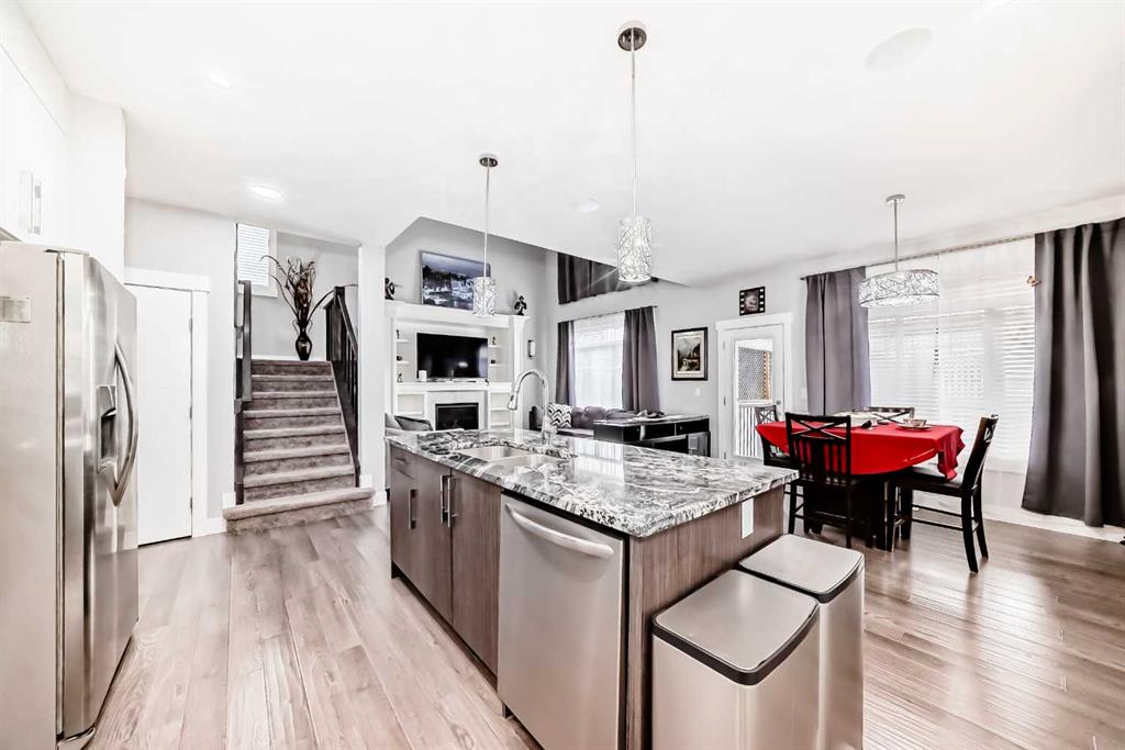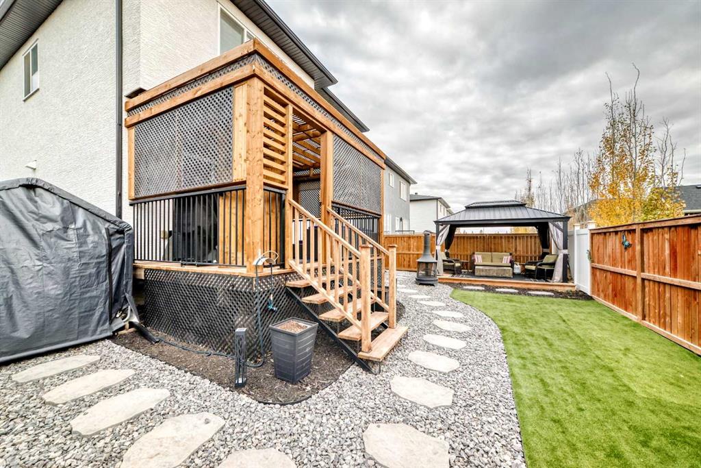 WELCOME TO YOUR DREAM HOME IN THE HEART OF CARSTAIRS! This home is Tucked away in a quiet cul-de-sac. An exquisite 2-storey residence offering the perfect blend of luxury, comfort, and convenience. Just minutes from the golf course and downtown shopping. This beautifully designed home is ideal for families and professionals alike. Step inside to discover 9' KNOCK DOWN CEILINGS and rich laminate flooring throughout the main level. The 18' HIGH CATHEDRAL CEILING and expansive Low-E vinyl windows flood the space with natural light, creating an airy and inviting atmosphere. This home includes CENTRAL AIR CONDITIONING to keep you cool on all those hot summer nights The kitchen is a showstopper, featuring 42" HIGH GLOSS CABINETS, GRANITE COUNTERTOPS, STAINLESS APPLIANCES and a MASSIVE ISLAND with BUILT IN GARBURATOR, perfect for casual meals or entertaining. Enjoy cozy winter evenings by the GAS FIREPLACE in the spacious living room, complete with a STUNNING TV SURROUND with tile and contemporary shelving. It comes with with built-in kitchen and primary bedroom CEILING SPEAKERS roughed in for your future hidden sound system. FRENCH DOORS lead to a versatile main floor office/extra bedroom, offering flexibility for your lifestyle. Upstairs, the OVERSIZED PRIMARY SUITE boasts a SPA LIKE 5-piece ensuite, also with GRANITE COUNTERS, a JETTED TUB, and a TILED SHOWER. Two additional bedrooms, a full bathroom, and a wonderful BONUS ROOM for your extra large screen tv to provide a special space for family living. Step outside into your MAINTAINENCE FREE back yard retreat, featuring a STUCCO EXTERIOR, PERGOLA COVERED DECK, a separate METAL GAZEBO and a cozy CORNER SWING, for those summer parties. All this, surrounded by ARTIFICIAL GRASS and decorative paving stones for easy upkeep. There's ample storage space including a DOG RUN along the extra large side yard, with a SEPERATE BASEMENT ENTRANCE, offering the possible development of a secondary suite (upon town of Carstairs approval and permitting) for future income. Car enthusiasts will be thrilled with the TRIPLE CAR, HEATED GARAGE, a true stunner with room for vehicles, tools, and or exercise equipment. A five minute walk to schools, parks, medical offices and the library, included in Carstairs' many amenities. THIS HOME HAS IT ALL, with Calgary just 30 minutes away, you'll enjoy the perfect balance of small-town charm and city convenience. Remainder of builder warranty included. SCHEDULE YOUR SHOWING TODAY.
