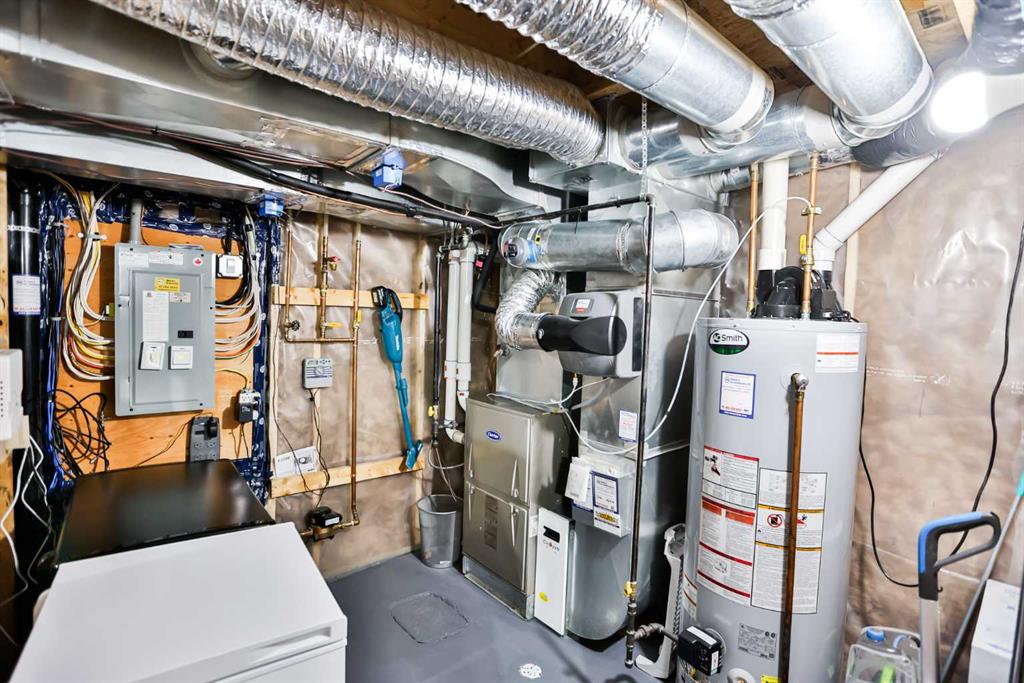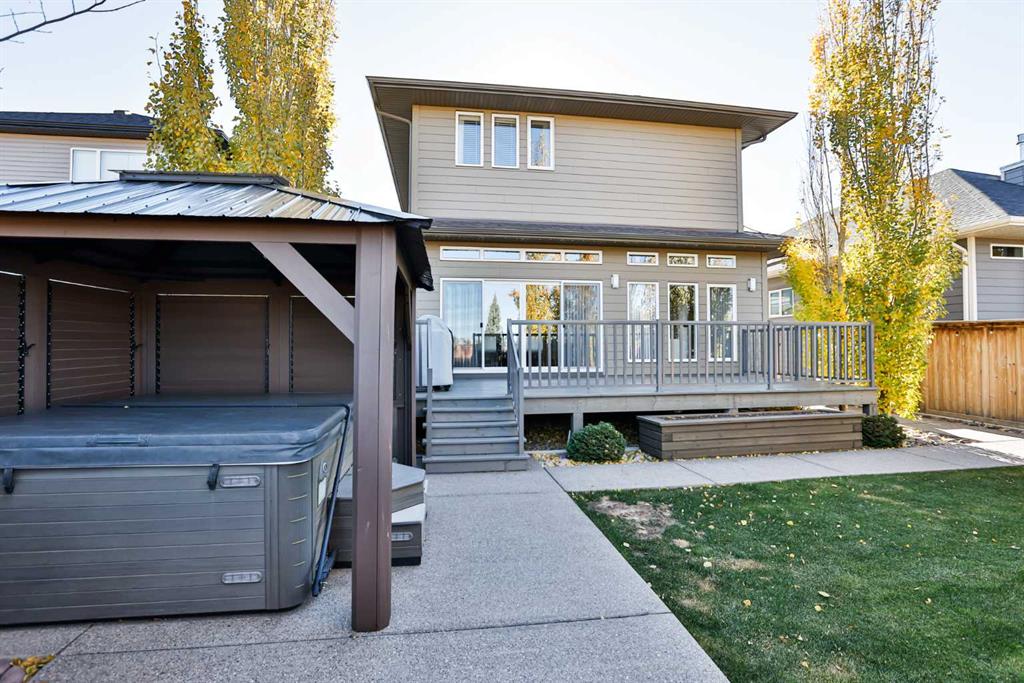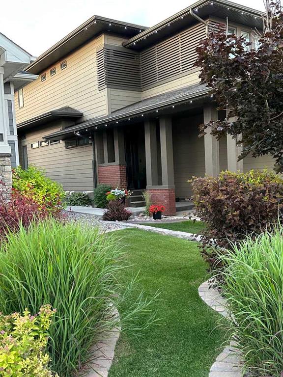 This modern masterpiece embodies luxury without compromise. From the moment you arrive, it’s clear that no detail has been overlooked and no expense spared. Clean architectural lines, expansive windows, and seamless indoor-outdoor living set the tone for a home that’s equal parts style and substance. The exterior features durable Hardy board siding and a beautifully detailed vestibule entryway that welcomes you inside. Coffered ceilings, a step-up to stunning engineered hardwood floors, and a sleek white quartz kitchen with two-tone modern cabinetry make an immediate impression. Gold-accented Whirlpool appliances in ice white complement the cabinetry, while a built-in modern china cabinet with interior lighting anchors the island and provides stylish separation. Off the kitchen, double sliding doors open to a versatile flex space—perfect for a home office, lounge, or playroom—complete with built-in cabinetry and a temperature-controlled wine fridge. The rear entry showcases a custom coffee bar, built-in cabinetry, and roll-out pantry drawers, making for an ideal prep and storage area. A tucked-away powder room features stunning wallpaper for a touch of drama, and the unfinished basement offers room for additional bedrooms, a bathroom, and a large family space. The living room impresses with 10-foot ceilings, bulkhead detailing with striking window coverings ($15,000) and floor-to-ceiling limestone rockwork surrounding a gas fireplace. Oversized windows and patio doors bring the outdoors in, leading to a large rear deck with aluminum railing, natural gas hookup, and beautifully landscaped yard. Features include underground sprinklers, decorative curbing, exposed aggregate, and a eight-person hot tub beneath a charming pergola—your private backyard oasis. An extra-wide staircase with photo-sensor lighting leads to the upper level, where 10-foot ceilings in the bonus room and a skylight flood the space with natural light. Two spacious front bedrooms, a large main bath, and second-floor laundry add everyday convenience. The primary suite is a true retreat, set apart by a custom glass-railed staircase and modern crown molding with pot-light detailing. A walk-in closet and two custom built-ins provide abundant storage. The spa-inspired ensuite features a double floating vanity, water closet, exquisite glass-tiled shower with dual heads, and heated floors for year-round comfort. Additional highlights include a dual-furnace system, gemstone exterior lighting (front and back), garburator, soft-close toilets, central vacuum, humidifier, and extensive lighting upgrades. The heated, oversized epoxy-floored garage offers ample storage and built-ins. Located in desirable Sixmile, this exceptional home offers easy access to Southside amenities and feels like a show home that’s just been built and READY FOR YOU TO MOVE INTO!