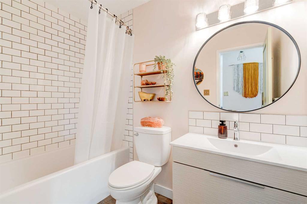 Welcome to this fully updated top floor unit that features 521 square feet and is situated in the central and amenity-rich community of Sunalta. This 1 bedroom, 1 bathroom condo is located in a quiet concrete building and features low condo fees, offering the perfect opportunity for first-time buyers or investors. A dedicated entryway greets you as you enter the home and resilient luxury vinyl plank flooring flows throughout the unit. The home offers an open-concept layout with South-facing exposure that floods the space with natural light throughout the day. The beautifully updated kitchen offers stainless steel appliances, including a brand new fridge, subway-tile backsplash, a large peninsula with a breakfast bar for additional seating, bamboo countertops, and a wall of cabinetry with ample storage. The kitchen overlooks the living and dining areas - making this the perfect space for entertaining friends and family. The spacious bedroom can accommodate a king-sized bed and offers a large open double closet. The updated 4-piece bathroom features a floating vanity, a deep bathtub, and subway tile backsplash throughout. The spacious and covered South-facing balcony offers the perfect space to enjoy the warmer summer months and has plenty of room for a barbeque and patio furniture. Additional features that round out this unit include updated lighting throughout, high speed fibre-optic internet (perfect for working from home), an in-unit storage room, a separate large storage locker, and secure underground parking to keep your vehicle safe and out of the elements. The building offers its own sauna and bike storage and has been well-managed and maintained, with extensive recent renovations throughout. This pet-friendly building only requires condo board approval. Centrally located in the heart of Sunalta, this property offers the perfect walkable location and is only a short walk to nearby public transit, breweries, restaurants, cafes, shopping, and entertainment. Daily commuting is easy with only a 2 minute walk to the Sunalta LRT station and quick driving access to 14th Street. Don’t miss out on this incredible value and opportunity in Sunalta!