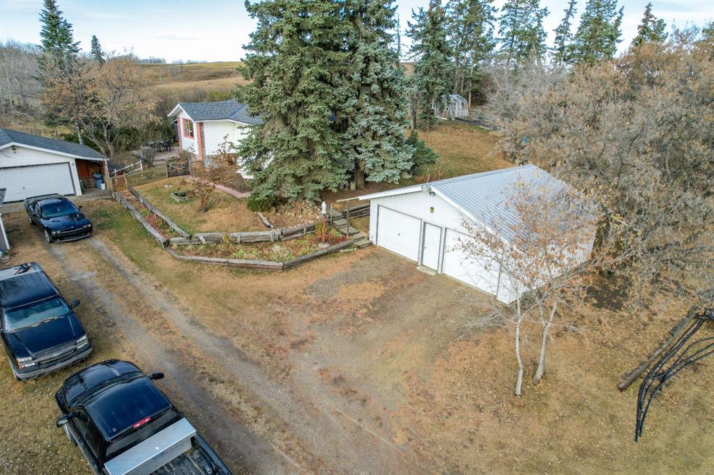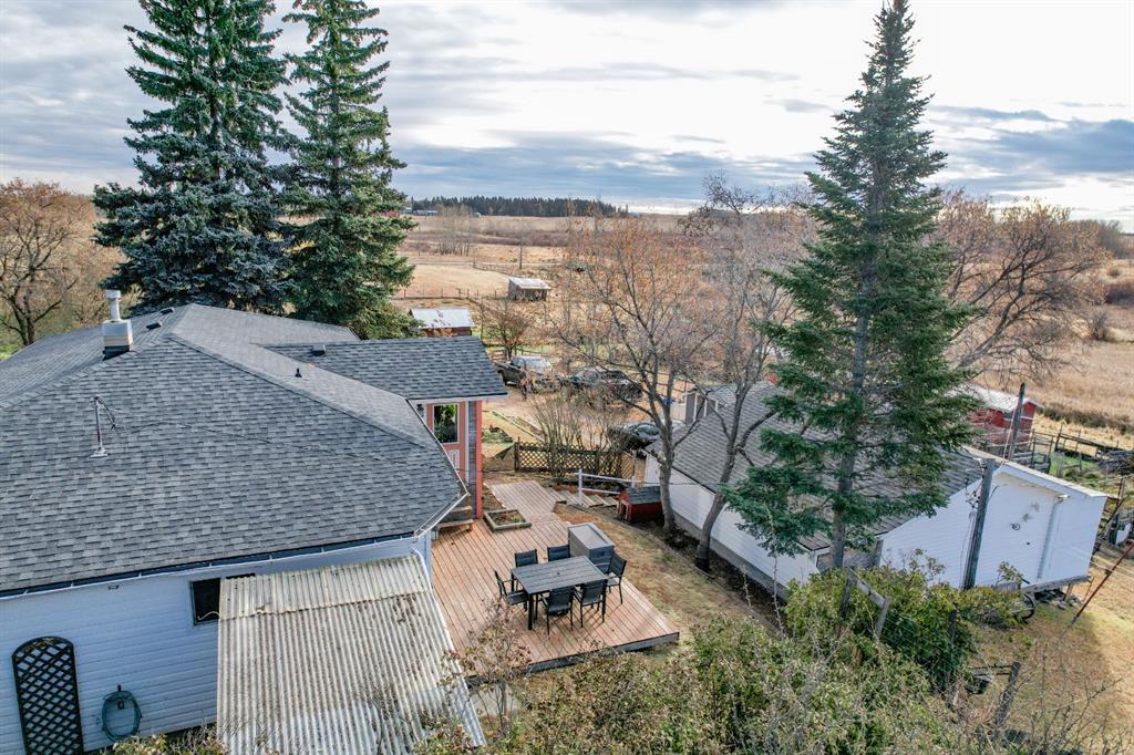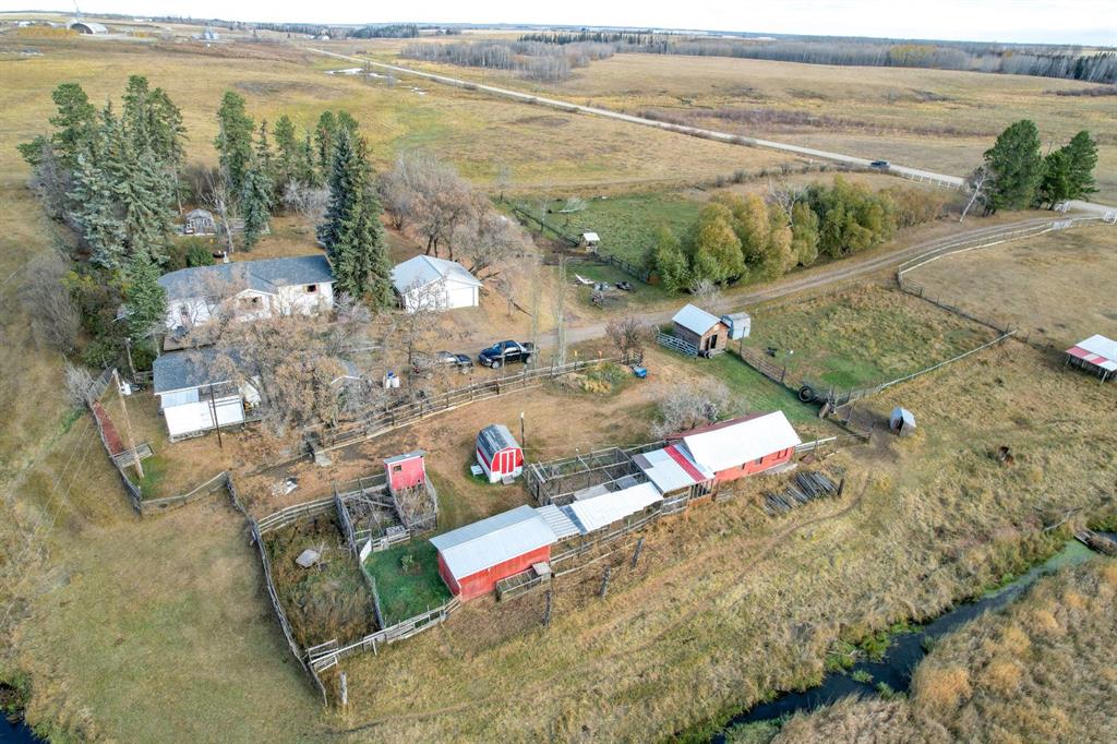 WELCOME TO THE HEART OF ALBERTA! 4 acres of hobby farm situated in the rolling hills of Ponoka County, come find a very nicely updated farmhouse with lots of custom features. Open concept kitchen/dining room with tons of cabinet space, a peninsula island and real wood cabinets. Opening onto the spacious living room and formal front entry, with big south facing windows to flood the space with daylight. A four piece bathroom with big jet tub completes the space. Down the hall two bedrooms greet you, both with custom porcelain Italian floor tiles. A third bedroom/office at the other end of the home off of the large working entry way, and a half bath conveniently situated to wash up right as you come in from chores. Downstairs, a dry, solid basement where the laundry resides, with water conditioning system servicing the well, which produces 10 bpm for you and the livestock. You’ll also find a big cellar and a flex space which was probably originally a bedroom. Out front of the home is an amazing patio with a great wood deck, shrubs enclosing you in from the northern elements, an excellent view across the valley to the south and a spectacular backyard with enough variety of fruit trees that I’m tempted to name it an orchard. Down below are a bunch of pens/corrals for horses, cows and even pigs. The barn has a caged breezeway all the way over to the coop for some very lucky chickens and ducks. Another garden area out in the barnyard, this one all fenced to keep our deer friends away. The original garage shares the same new shingles that the house has, and also has a cooler built onto one side, with an overhang and dog/cathouse off of the other. Lastly, a newer 26’X24’ double detached garage complete a whole lot of infrastructure. The pavement of QE2 is just a shy of a mile away, your vehicles will thank you, the airport is 35 minutes and Ponoka is less than ten minutes if you drive like me, probably more like ten minutes if you drive like you. Wonderful next door neighbours, but don’t be fooled by the back fence line, this property actually extends all the way down the hill to the creek that splits the two properties but that was a pain to fence so they fenced up on the hill instead. Ladies & Gentlemen, this is Alberta, Amen.