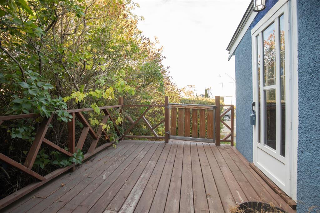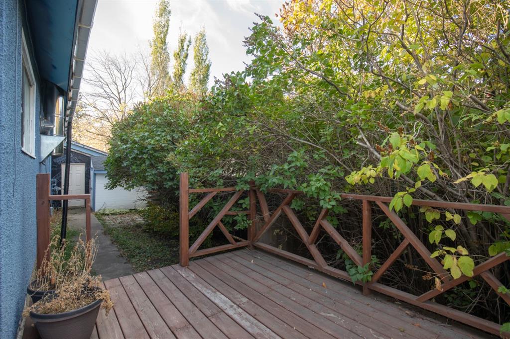This charming 1946 bungalow blends timeless character with thoughtful modern updates, set on a spacious 6,000 sq ft lot in the heart of Bowden. Framed by mature hedges for privacy, the home welcomes you with a west-facing front deck and a generous entry foyer. Inside, the open-concept dining area flows into both the updated kitchen and cozy living room. Rustic wood beams and a wood-burning stove with a striking stone mosaic surround create a warm, inviting atmosphere. The kitchen features dark cabinetry, a modern white pantry, butcher-block countertops, a farmhouse sink, tile backsplash, a centre island, and an almost-new dishwasher. Three bedrooms, including a spacious primary, and a fully updated 4-piece bathroom complete the main floor. Recent updates include a new washer and dryer, new central vacuum system, re-shingled front porch, furnace servicing, and a new hot water tank. An upgraded electrical panel and service are also planned. Out back, a fully enclosed breezeway connects to a single detached garage and a large storage room. The south-facing backyard is fully fenced—ideal for pets, gardening, or simply relaxing in the sun. A rear parking pad provides extra room for vehicles, a trailer, or RV. The durable metal roof on the main house adds long-term peace of mind, and the Bowden Golf Course is just a short walk away. A great opportunity for first-time buyers, investors, or anyone looking for a move-in-ready home with character, comfort, and lasting value.
