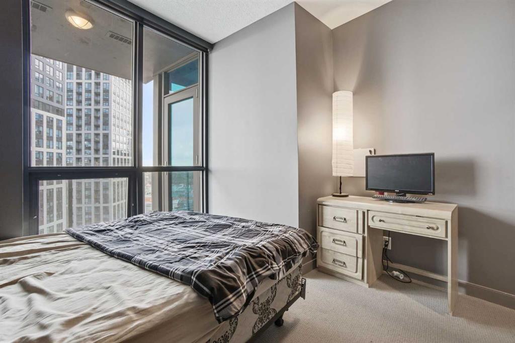 Elevate your lifestyle! Live on 22nd floor with breath-taking and timeless scenic views that will inspire and invigorate. This home has lovely natural light from every window in this stunning executive condo located at Keynote One, in the heart of Calgary's (Alberta) Beltline. Perfect for professionals who love being close to work, the new Library, Stampede Park, and the vibrant East Village with its entertainment, restaurants, and amenities. On the main floor of the complex you’ve got Sunterra Market, Starbucks, restaurants, and a craft beer store. This spacious two-bedroom, two-bathroom condo with large balcony (with a stunning view of Calgary), boasts 9-foot interior ceilings and floor-to-ceiling windows showcasing views of the Beltline, mountains, and downtown. The open-concept kitchen features granite countertops, and stainless steel appliances. The master bedroom offers a large walk-in closet, and full en-suite bathroom. You'll also enjoy in-suite laundry, and a titled parking spot with convenient underground parking. The building's amenities top-tier, including a fully equipped gym, and cardio room, an owner’s lounge with a kitchen, a rooftop terrace, and guest suites available for rent. This is the perfect place to call home.