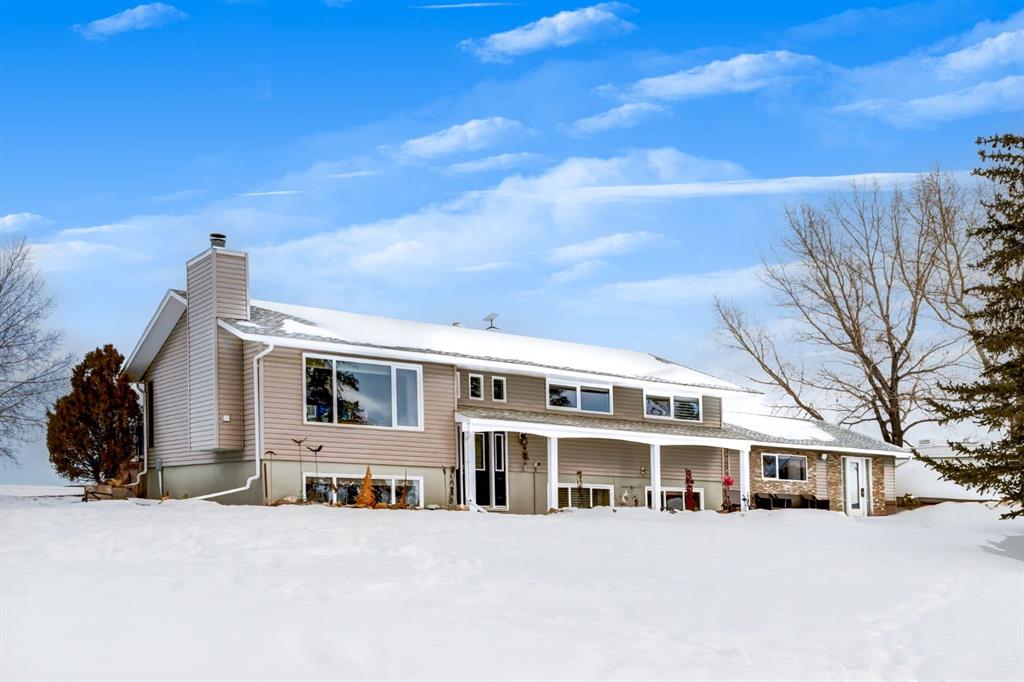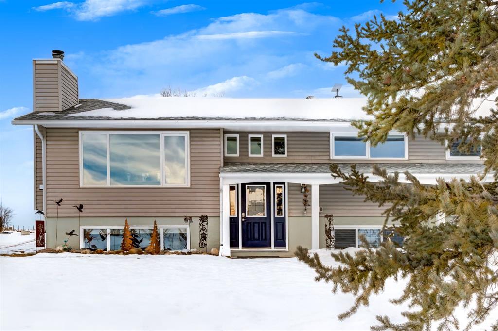 Need extra space for your business? A commercial shop, land and beautifully renovated home? Set on 4.5 gently rolling acres with sweeping Foothills and mountain views, this exceptional property offers the rare luxury of peaceful acreage living—while remaining just 15 minutes from Calgary and Okotoks. Here, privacy, possibility, and proximity exist in perfect balance. The fully renovated home welcomes you with an open-concept main floor bathed in natural light, where oversized windows frame endless rural vistas in every season. At the heart of the home, is the renovated (2018) designer kitchen that is both beautiful and functional, featuring custom cabinetry, granite countertops, premium stainless-steel appliances, and a generous sit-up island—ideal for entertaining, family gatherings, or quiet mornings overlooking the land. Two spacious bedrooms anchor the main level, including a serene primary retreat with a spa-inspired five-piece ensuite complete with a freestanding tub, double sinks, and walk in shower. A former third bedroom has been thoughtfully transformed into a stunning walk-in closet with a window, creating an elegant dressing sanctuary. Downstairs, two additional bedrooms provide flexibility for families, guests, or multigenerational living. Extensive upgrades ensure peace of mind and modern comfort, including high-end vinyl plank flooring throughout, fresh designer paint, motorized blinds, updated windows, a new roof(2025) new septic system (2018), and a new well (2025). Energy-efficient in-floor heating on both levels, powered by a boiler system, delivers year-round comfort with impressively low utility costs. The former detached double garage has been professionally converted into a heated workshop and office, offering an ideal space for a home-based business, studio, or creative retreat The true show stopper, however, is the oversized, multi-level Commercial shop—a rare and versatile asset designed with both present use and future potential in mind. Built with steel post construction, it features 200-amp electrical service, along with rough-in plumbing and heating. Rear of the shop measures 33'x24' and features 14'x14' overhead drive-through door easily accommodating RVs, boats, or commercial vehicles. 2 main heated bays and a triple car garage in the front. Second level is ready for a potential suite (subject to approval), complete with a private balcony and breathtaking mountain views. The third level, currently used as a gym, could effortlessly become a theatre room, recreation or office space, or additional storage. Perfect for large multi-generational families, entrepreneurs, contractors, mechanics, collectors, or anyone dreaming of a true live/work lifestyle, this remarkable property offers acreage privacy without sacrificing city convenience. This gorgeous property is on a school bus route and conveniently located near two county schools K-9 and Scott Seaman Sports Rink. Perfect opportunity is waiting. Do not wait! Call today!