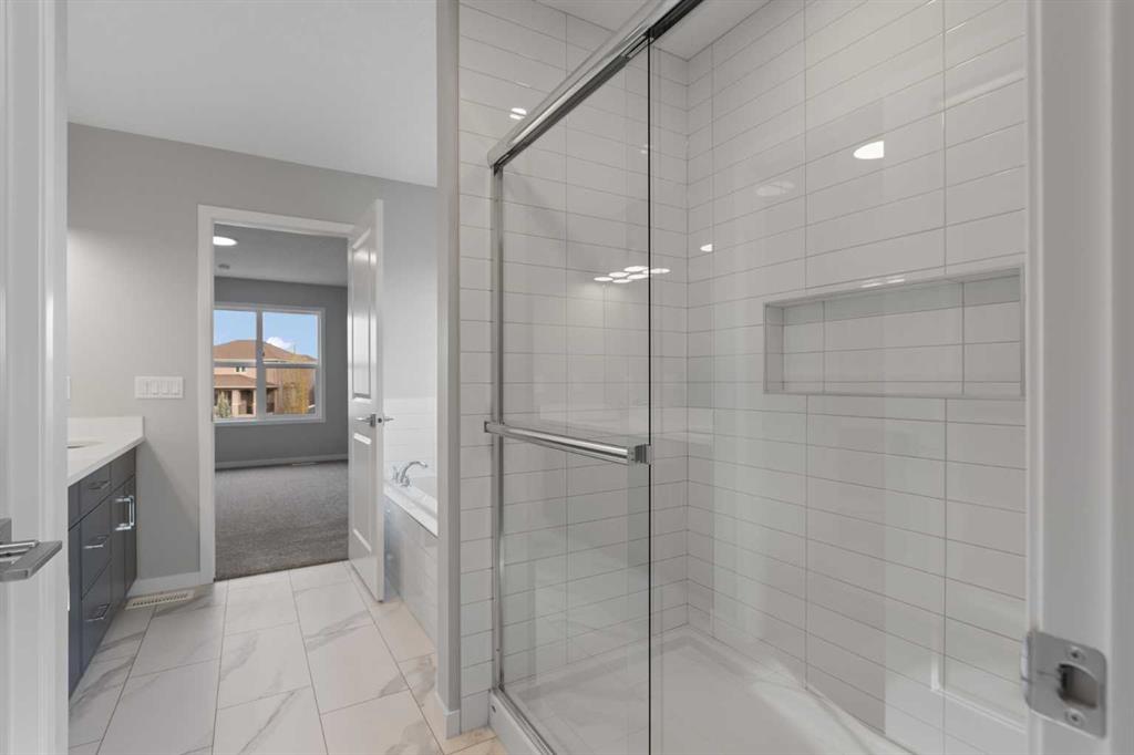 This brand new 2135 sq ft walk-out home with excellent curb appeal is located on a large-pie shaped lot that backs onto the Montrose Canal. The stunning upgraded kitchen includes quartz counters, two-tone cabinetry, built-in microwave, chimney hood-fan, stainless steel appliances and an extra set of drawers. The main level also has a cozy living room with gas fireplace and large windows, walk-through mudroom and pantry, flex space, dining room with access to the 10 x 12’ deck, and 2-piece washroom. On the upper level you will find a bonus room, laundry room, and 3 bedrooms. The primary bedroom has a large walk-in closet and a deluxe 5-piece ensuite that includes a custom full height tile shower, large soaker tub and a stylish vanity with two sinks. With a 9’ foundation height, the walk-out basement is bright and airy ready for development. The many extras in this home include an exterior gas line, 2’ garage extension, spindle railing on the main and upper levels, triple pane windows, quartz countertops throughout, knockdown ceiling texture, and luxury flooring on main level, main level and bathrooms. Located close to walking paths, Montrose Pond, the recreation centre, parks, tennis courts and schools, this family home is in an ideal location. Please click the multimedia tab for an interactive virtual 3D tour.