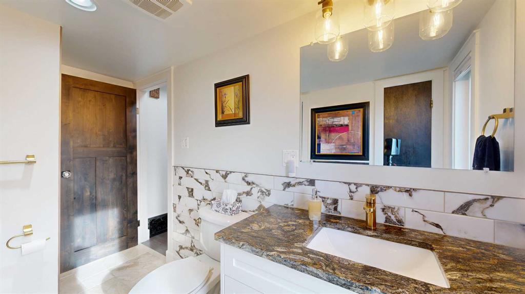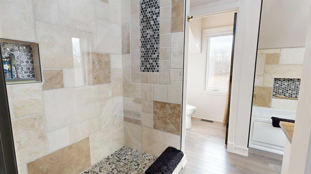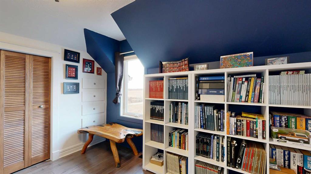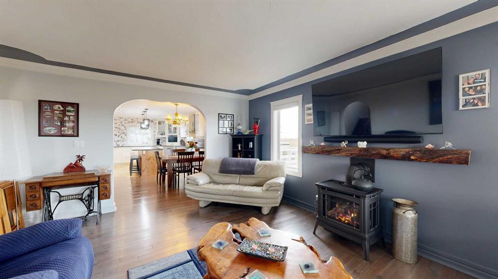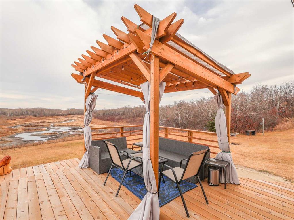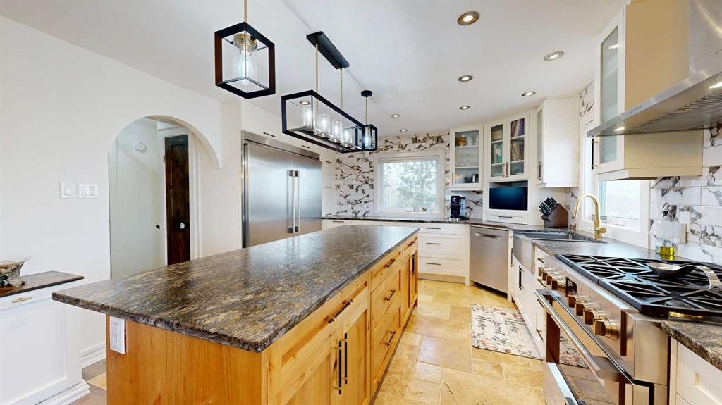 This iconic home is well known for its classic character, hilltop setting, and prime location along Highway 11. Ideally positioned between Stettler and Red Deer, this acreage offers the perfect blend of peaceful country living with an easy commute—pavement right to your driveway making travel easy year-round. Beautifully transformed through an extensive renovation in 2024, this home blends modern luxury with original architectural charm. Nearly everything has been upgraded to create a truly exceptional living space that is perfect for families, acreage owners, and anyone seeking a standout country home. A charming enclosed porch welcomes you at the main entrance, offering the perfect space to greet guests and enjoy morning coffee. The chef-inspired kitchen is sure to impress, featuring leather granite on the counters and an 8’7” island, high-end appliances including a full-height fridge and freezer and dual fuel range, soft-close drawers, and appliance garages to keep everything neatly tucked away. The kitchen opens to the dining room, where patio doors lead to the deck for seamless indoor-outdoor living and entertaining. The spacious living room exudes warmth and comfort with a new gas fireplace/stove and a live-edge mantle. A convenient main floor office also offers patio doors to the veranda, making it ideal for working from home. The spa-like three-piece bathroom includes leather granite and a walk-in shower, while the large laundry room features high-end steam washer and dryer and a laundry chute. Upstairs, the home’s original character shines through with the classic octagonal window, decorative panels on the bedroom doors, and a cozy reading nook at the top of the stairs. The primary bedroom includes a walk-in closet and a luxurious five-piece ensuite with a solid wood vanity counter, jet tub, walk-in shower, and a private water closet. Three additional bedrooms offer beautiful views overlooking the property and surrounding landscape. The four-piece bathroom features travertine flooring, a leather granite countertop, and a custom tub and shower. The basement is a blank slate awaiting the vision of the new owner, offering plenty of potential for development. The property offers expansive views, including scenic wetlands to the east, which can be enjoyed from the veranda or deck. Upgrades have been done in the last two years and include travertine and maple hardwood flooring, windows on the main and upper level, blinds, central vacuum system, updated electrical panels in both the house and garage, R50 blown-in and R40 batt insulation in the attic, hot water tank, and central air. The home was moved onto a new basement in 1984. The garage features updated doors, central vacuum, and a full wall of cabinetry to help keep everything organized. Whether you are raising a family, working from home, commuting for work, or simply seeking a peaceful country lifestyle with modern luxuries, this exceptional property provides a setting that is easy to fall in love with.
