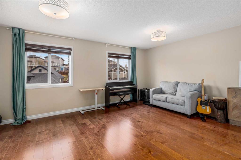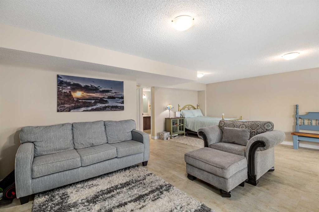 PANORAMIC MOUNTAIN VIEWS/A/C/FULLY DEVELOPED/WALKOUT BASEMENT/NO REAR NEIGHBOURS/BACKING ONTO TRAIL/NEW KITCHEN IN 2022 - Wake up every morning to breathtaking, unobstructed mountain views in this beautifully designed fully developed walkout home offering nearly 2,500 sq.ft. of well-designed living space that’s perfect for families and entertaining. Positioned with no neighbours behind and backing directly onto a peaceful walking trail, this home offers both privacy and incredible scenery. With mature trees, shrubs, and a bright south-facing backyard, it’s the perfect setting to enjoy sunshine and views all year long. Inside, you’re greeted by a bright open-concept main floor thoughtfully designed to maximize natural light and capture those stunning mountain views from every angle. The spacious living area features a cozy stone gas fireplace that creates the perfect focal point for family gatherings or quiet evenings at home. The renovated 2022 kitchen is both stylish and functional, featuring white quartz countertops, new cabinetry, and a seamless flow into the dining area, ideal for entertaining. Step through the patio doors to your large elevated deck with glass railings and a gas BBQ line, where you can unwind and take in sunsets over the Rockies. Upstairs, you’ll find a versatile bonus room with a built-in Murphy bed, perfect as a guest space, theatre, home office, or play area. The primary retreat is a true highlight, offering panoramic mountain views, a 5-piece ensuite with a jetted tub, and a spacious walk-in closet. Two additional bedrooms and a full bathroom complete the upper level, providing plenty of space for family or guests. The fully developed walkout basement expands your living space with a large open rec room, an electric fireplace, and a full bathroom, providing flexibility for movie nights, workouts, or a guest suite setup. Walk directly out to your private landscaped backyard with gate access to the trail, making it easy to enjoy evening walks or morning runs right from your door. The double attached garage is a showstopper in itself, beautifully finished with epoxy flooring and built-in cabinetry, creating the ultimate workshop, hobby space, or “man cave.” This home’s location is second to none, within walking distance to parks, green spaces and close to restaurants, gas stations, and everyday conveniences. With quick access to Highway 1A, weekend getaways to the mountains or Ghost Lake are just minutes away. Bright, inviting, and move-in ready, this home truly checks every box with incredible mountain views, a functional floor plan, a fully developed walkout basement, and a sun-drenched south backyard. Don’t miss your chance to experience it in person. Schedule your private showing today because this one won’t last long!