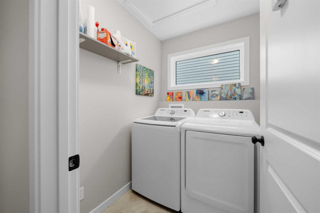 Introducing this BEAUTIFUL, MOVE-IN-READY, 1,557 SQ FT, TWO-STOREY FAMILY HOME. Having cherished their time here in the community, the original owners are now ready to pass this functional and stylish home on to a new family. Driving up, the property’s great curb appeal invites you in. Once inside, you will find a well-designed home and enjoy the open layout that is perfect for both everyday living and entertaining. The modern kitchen features an island, stainless-steel appliances, and granite countertops — the home chef will love. The dining area is flooded with natural light and the comfortable living room is a great place for visiting or family tv time. A half bathroom and backdoor entry complete the main level. The laminate flooring throughout the main level is both beautiful and easy to maintain. Upstairs, the primary suite offers a peaceful retreat with a 4-piece ensuite that includes a double vanity and a walk-in shower. Two additional bedrooms, a full bathroom, and an upstairs laundry room provide all the space and convenience a growing family needs. Along with the attached double garage, there is a paved, back lane that provides access to the additional parking in the back yard. Current owners utilize the parking for their RV beside the firepit and grass area for guests and family evening camp outs. Located in the highly coveted, friendly, amenity-rich community of Vista Crossing in Crossfield which features parks and playgrounds, fire pits, a seasonal skating rink, basketball court, green space, and community garden plots. Crossfield offers small town charm with a local farmers market, schools, shopping, recreation, and has easy access to big city amenities. 15 min north of Airdrie and 20 min to Calgary city limits. Don’t miss your chance to make this home your own—book your viewing today!