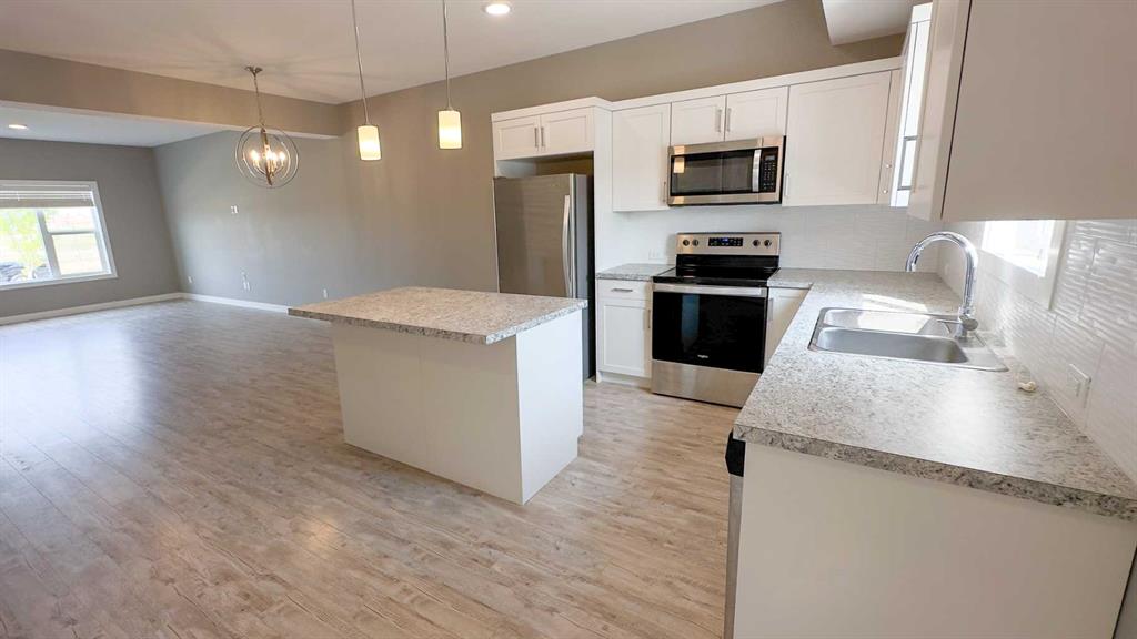 Immediate possession available! Live at the lake....Don't miss this "Turn Key" 1392 sq. ft. 3 bedroom, 3 bathroom townhome with NO CONDO fees. An exceptional location with great proximity to all of the shopping and amenities of south east Sylvan Lake including Wal-Mart, Boston Pizza, Canadian Tire, Nor Frills and Sobeys, with quick highway access for your daily commute. Modern exterior, this home is bright with an open floor plan. Laminate flooring throughout living room, dining room and kitchen. Upstairs is 3 bedrooms and laundry. Master bedroom has large walk in closet, and a 5 pce ensuite. Basement is undeveloped with potential for family room another bedroom and 4pce bathroom. Nice big yard is landscaped with 10x10 deck, 2 stall gravel parking pad and low maintenance vinyl fencing. Balance of 10 year new home warranty. You don't have worry about a fence, landscaping, appliances, blinds, deck, it's all included here, just move in!