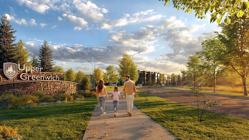 Welcome to the Mackenzie 22' by Partners Homes. This 1,985 sq. ft. paired home with a front-attached garage is located in the desirable northwest community of Upper Greenwich and offers a smart layout, modern finishes, and full new home warranty coverage. Designed with functionality and long-term comfort in mind, this home is well suited for families and professionals looking for low-maintenance living in a growing community. The main floor features a bright, open-concept layout with 9 ft. ceilings and quality finishes throughout. The kitchen includes upgraded cabinetry, quartz countertops, a full-height backsplash, stainless steel appliances, a gas cooktop, and a chimney-style hood fan. The living and dining areas flow seamlessly for everyday living and entertaining and are anchored by an electric fireplace. The rear deck extends the living space outdoors. Upstairs, a central bonus room offers flexible space for a home office, media room, or play area. The primary suite features a walk-in closet and a well-appointed ensuite with tiled shower walls, dual sinks, quartz countertops, and thoughtfully selected finishes. Two additional bedrooms, an upgraded main bathroom, and a convenient upper-floor laundry room complete this level. Additional features include air conditioning rough-in, a black plumbing and lighting package, and an undeveloped sunshine basement that brings in natural light and provides future development potential. Interior and exterior details include fiber-cement siding with stone accents, exposed aggregate entry, front yard landscaping, soft-close cabinetry, quartz throughout, knockdown ceilings, pot lighting, a humidifier, tankless hot water heater, and an enhanced sound-dampening party wall system for added privacy. Upper Greenwich offers an exceptional northwest location surrounded by walking paths, green spaces, playgrounds, and sports courts. Residents enjoy quick access to the Bow River pathway system, Calgary Farmers’ Market West, WinSport, nearby retail and services, and future community amenities. The Mackenzie 22' delivers a well-balanced combination of design, practicality, and location in one of Calgary’s most appealing new northwest communities.